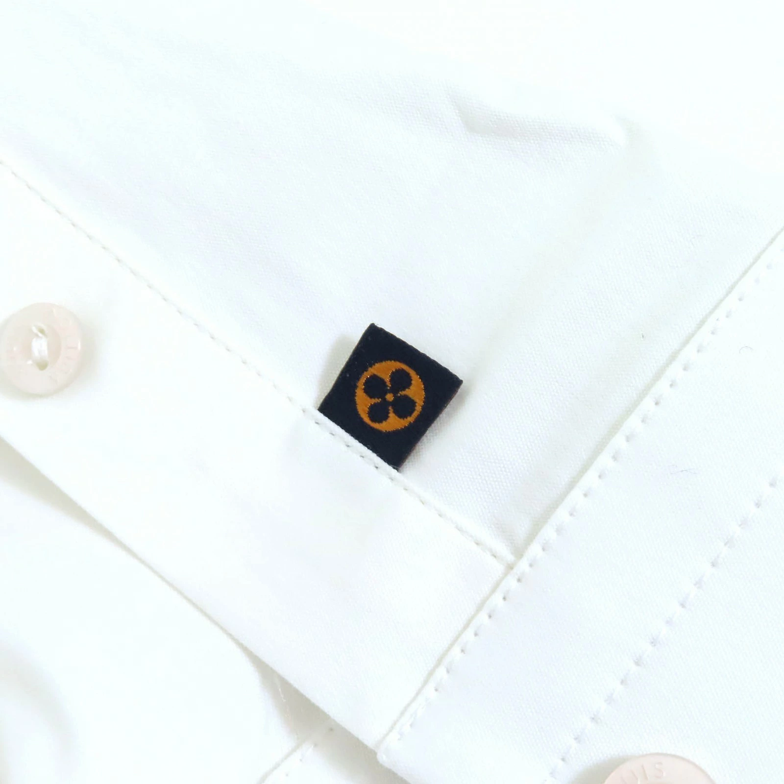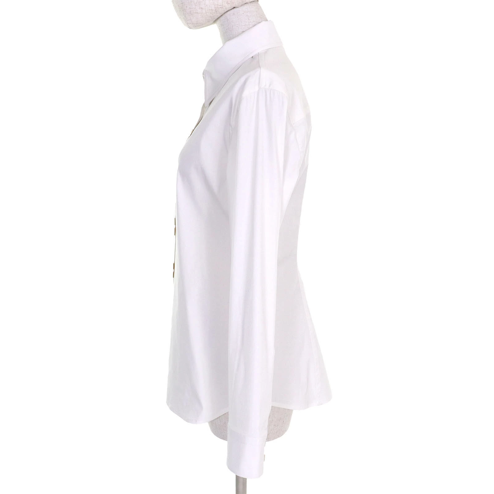 Excellent condition: Louis Vuitton 2025 Autumn/Winter cotton monogram long-sleeved shirt in white with gold hardware, size 38. Includes hanger and garment bag. Authentic, made in Italy. Pre-owned.