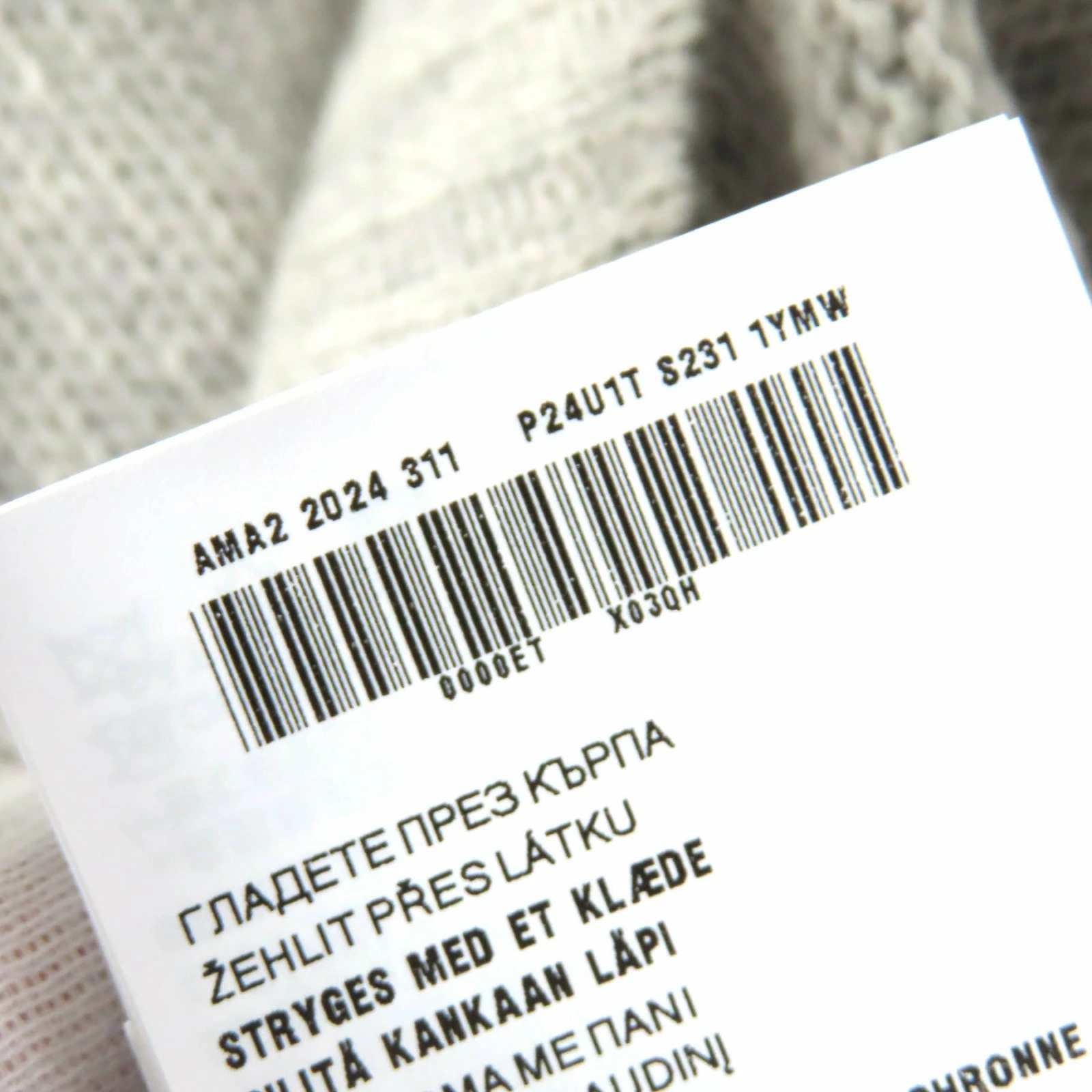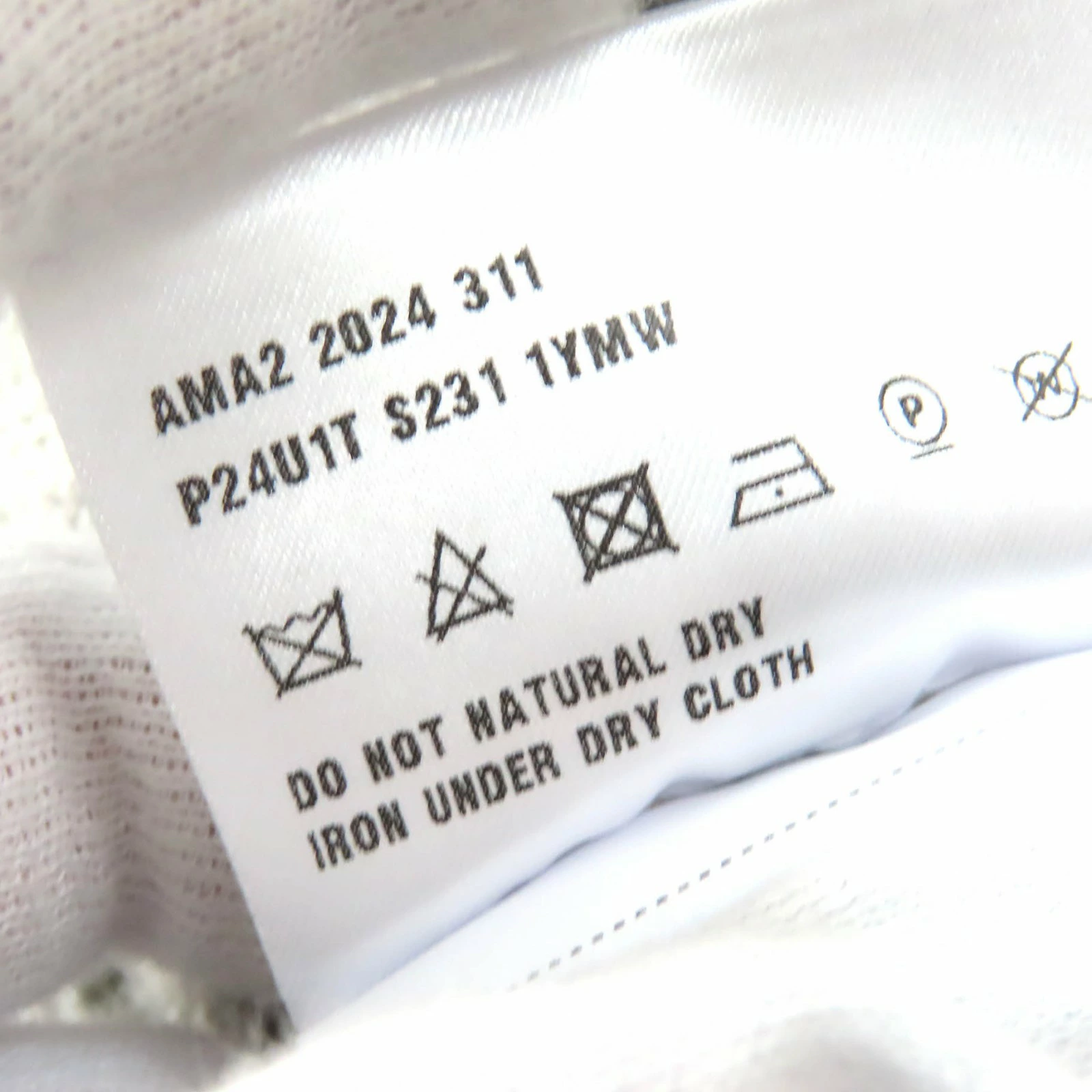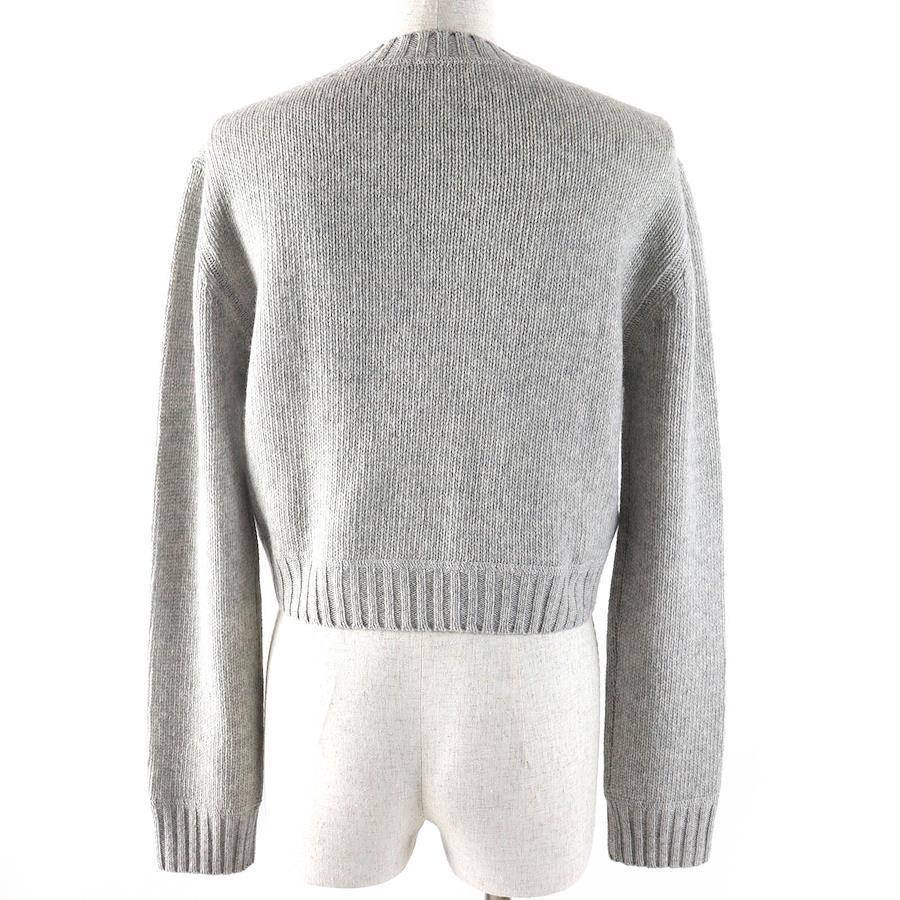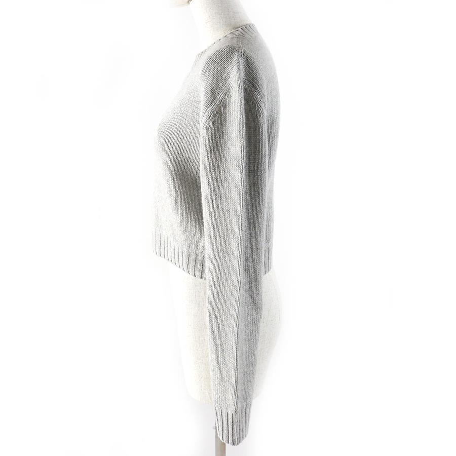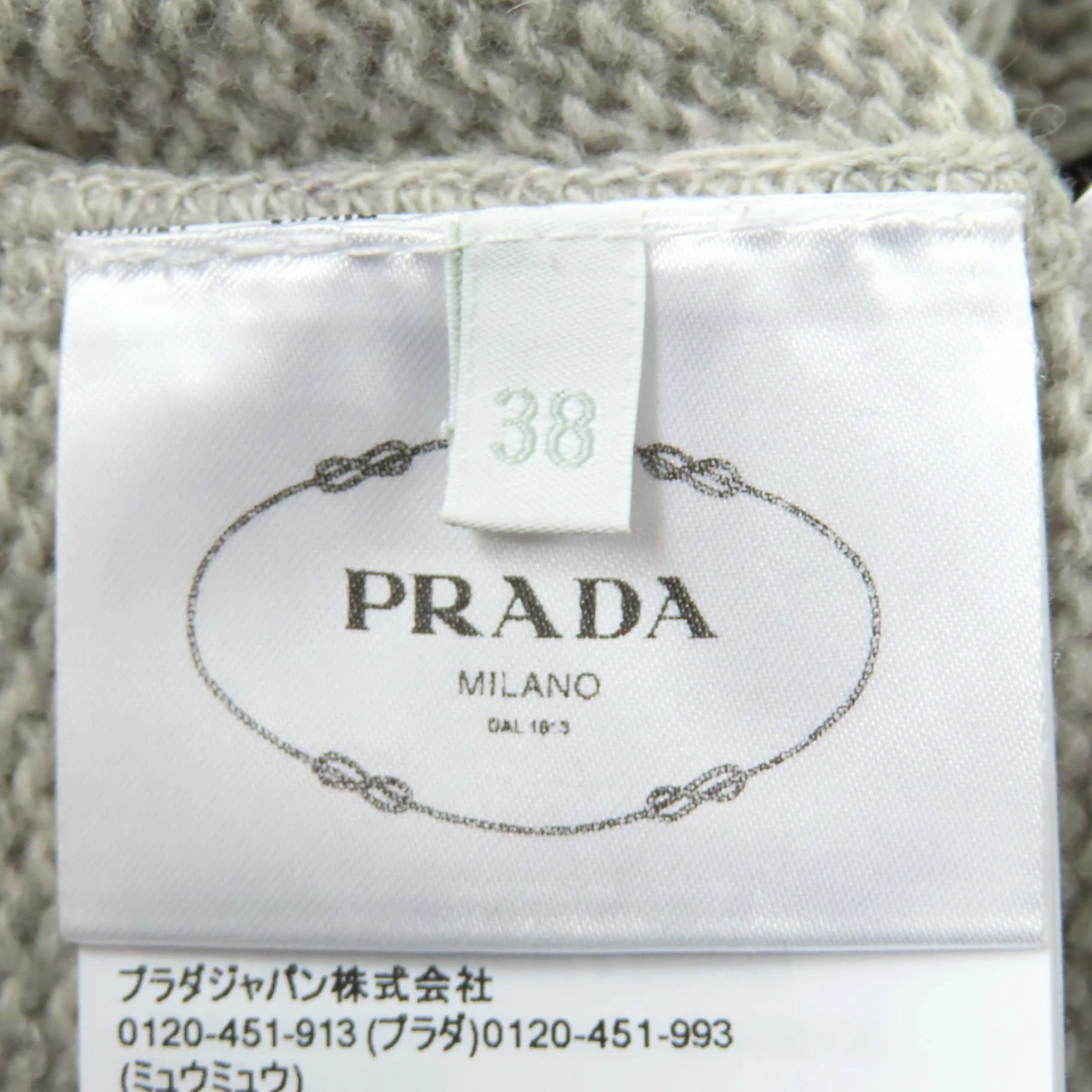 Excellent condition PRADA Prada 2024 P24U1T virgin wool cashmere logo box silhouette crew neck cropped knit sweater in light gray and white, size 38, made in Italy. Authentic. Recommended for women. [Pre-owned]