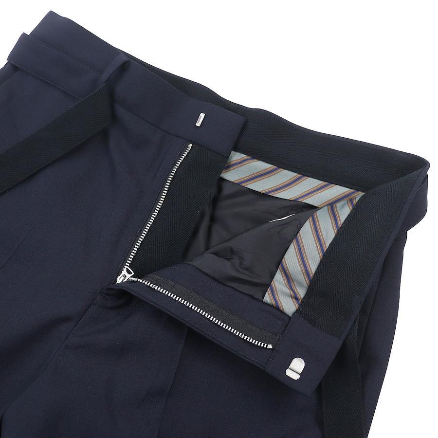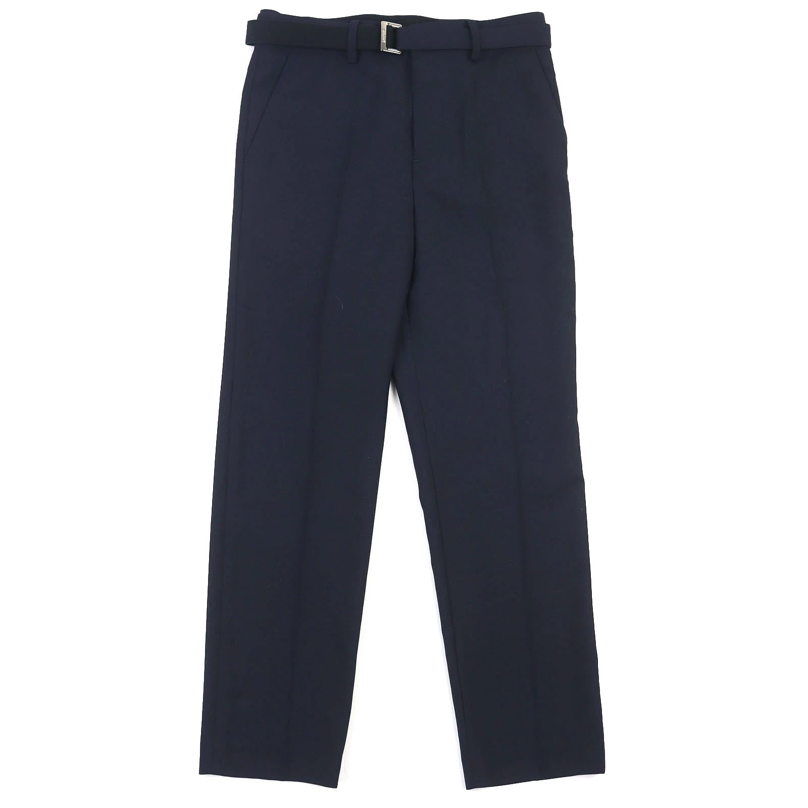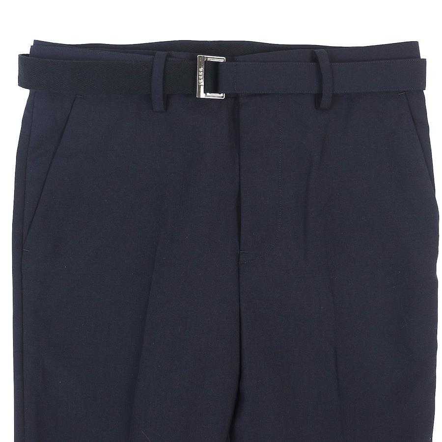 Excellent condition: Sacai 24-03274M Suiting Pants, wool blend, center pleats, belted pants, navy, size 1, made in Japan, authentic, recommended for men. Pre-owned.