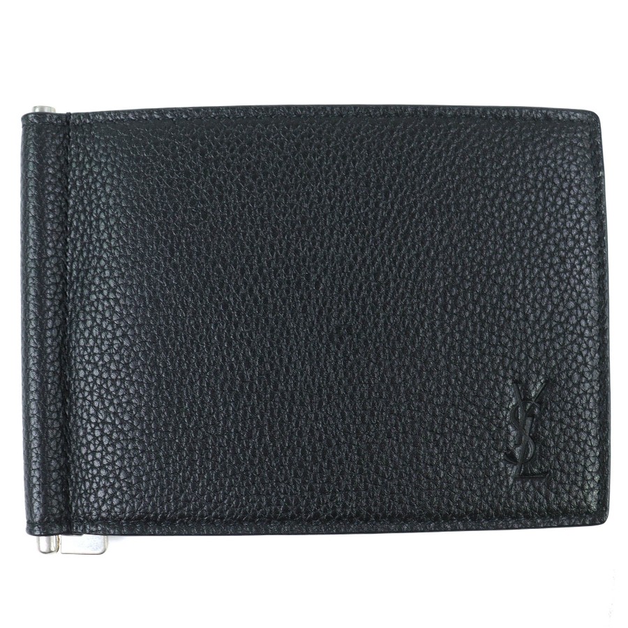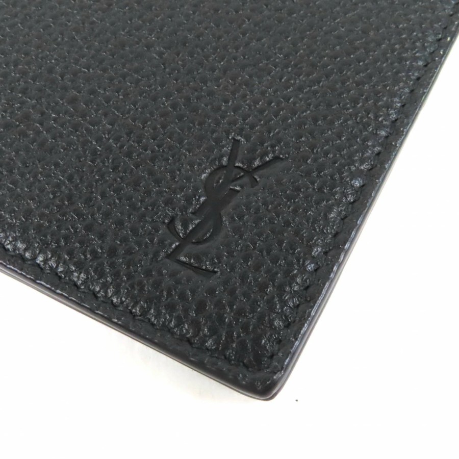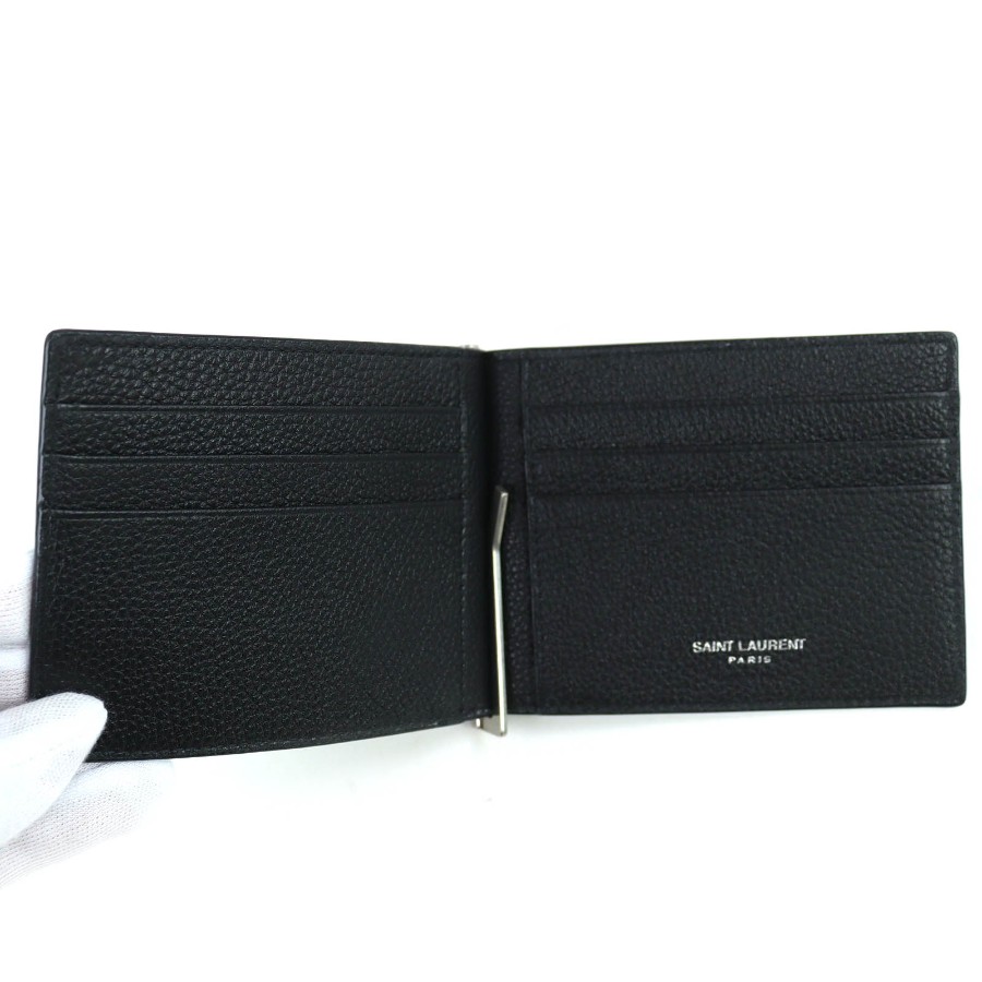 Excellent condition △SAINT LAURENT PARIS 691633 Logo Leather Bi-fold Card Case Bill Clip Wallet Current Model Black Made in Italy Men's Recommended ◎【Used】