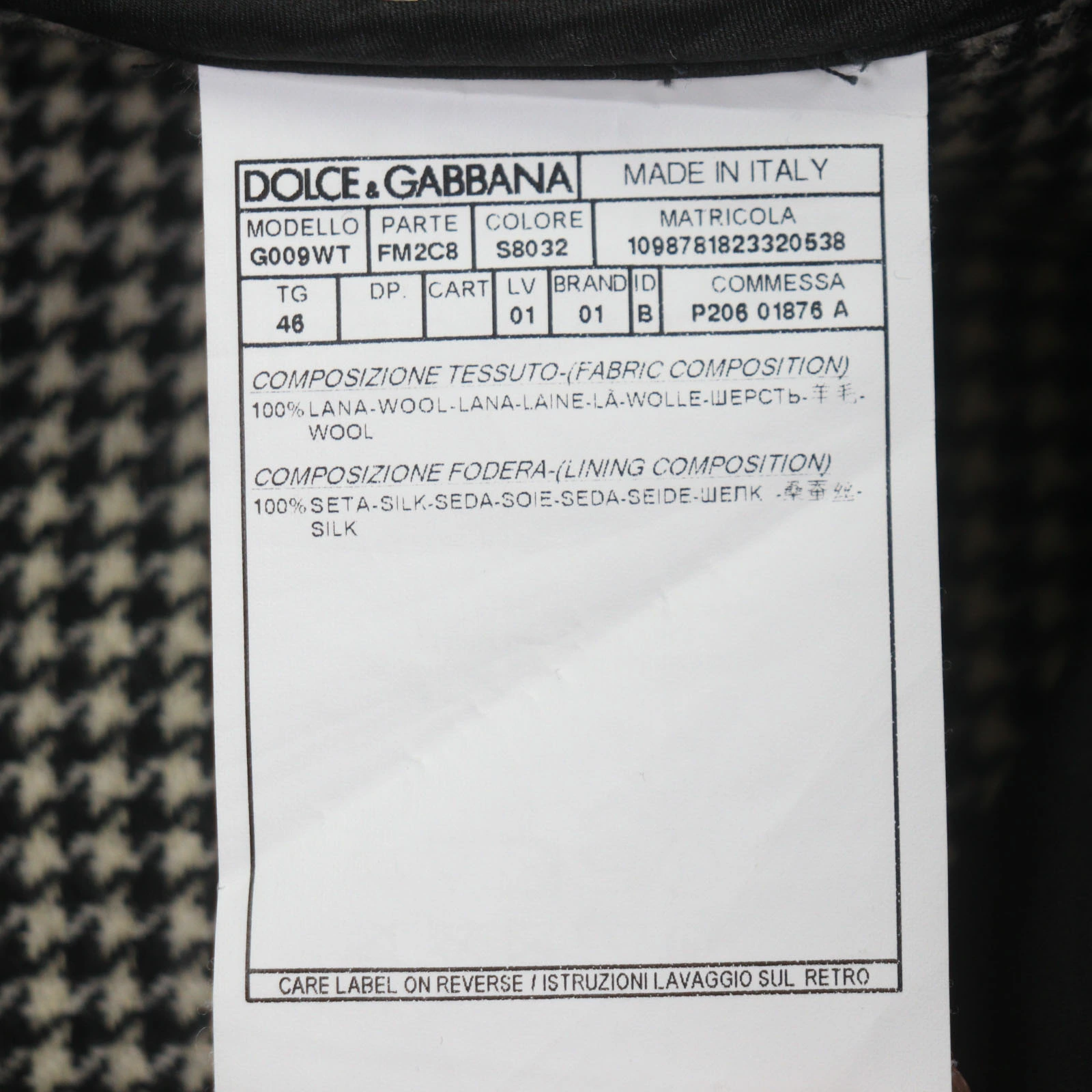 | 素材 (material) | 表地:ウール100% 裏地:シルク100% | ||||||||||||||||