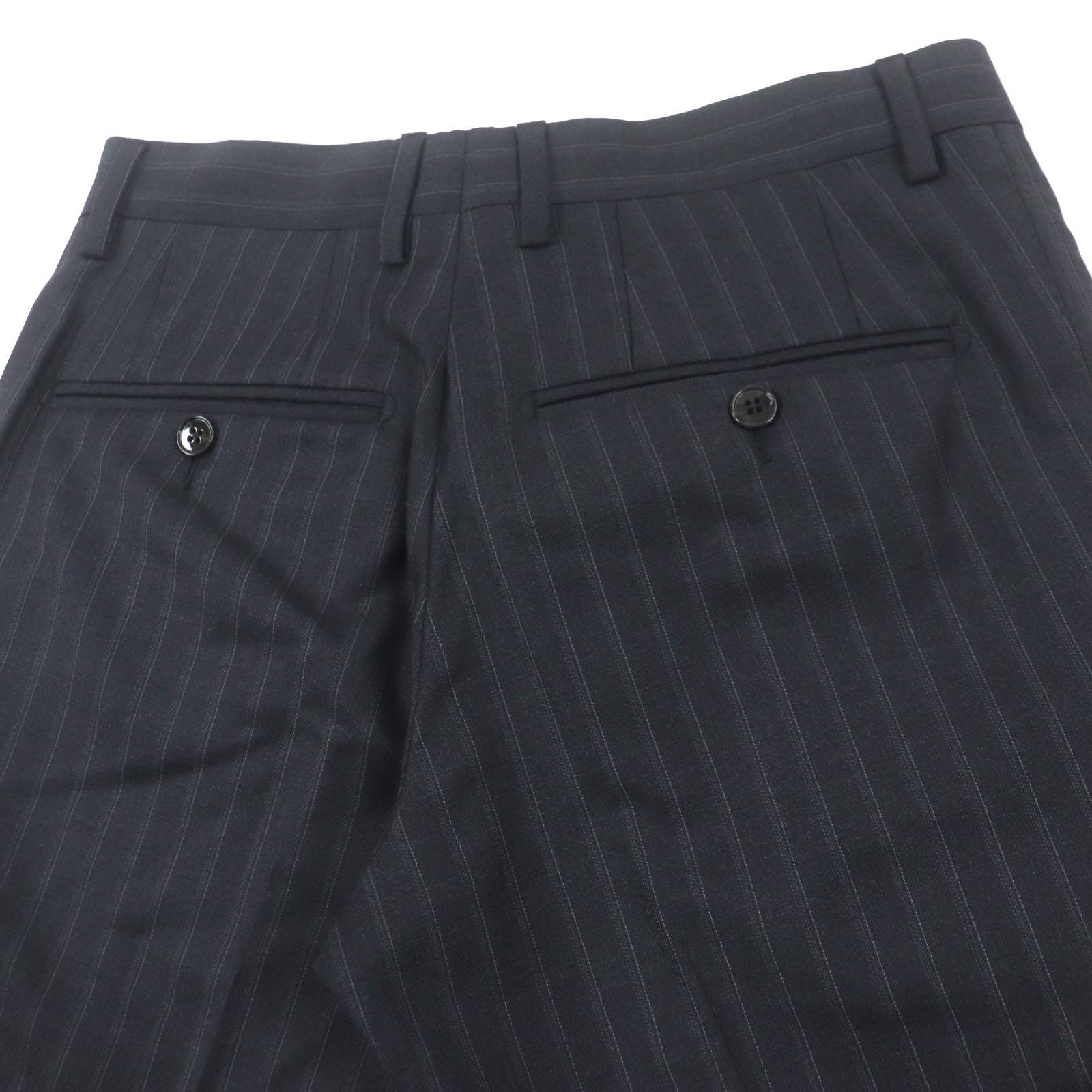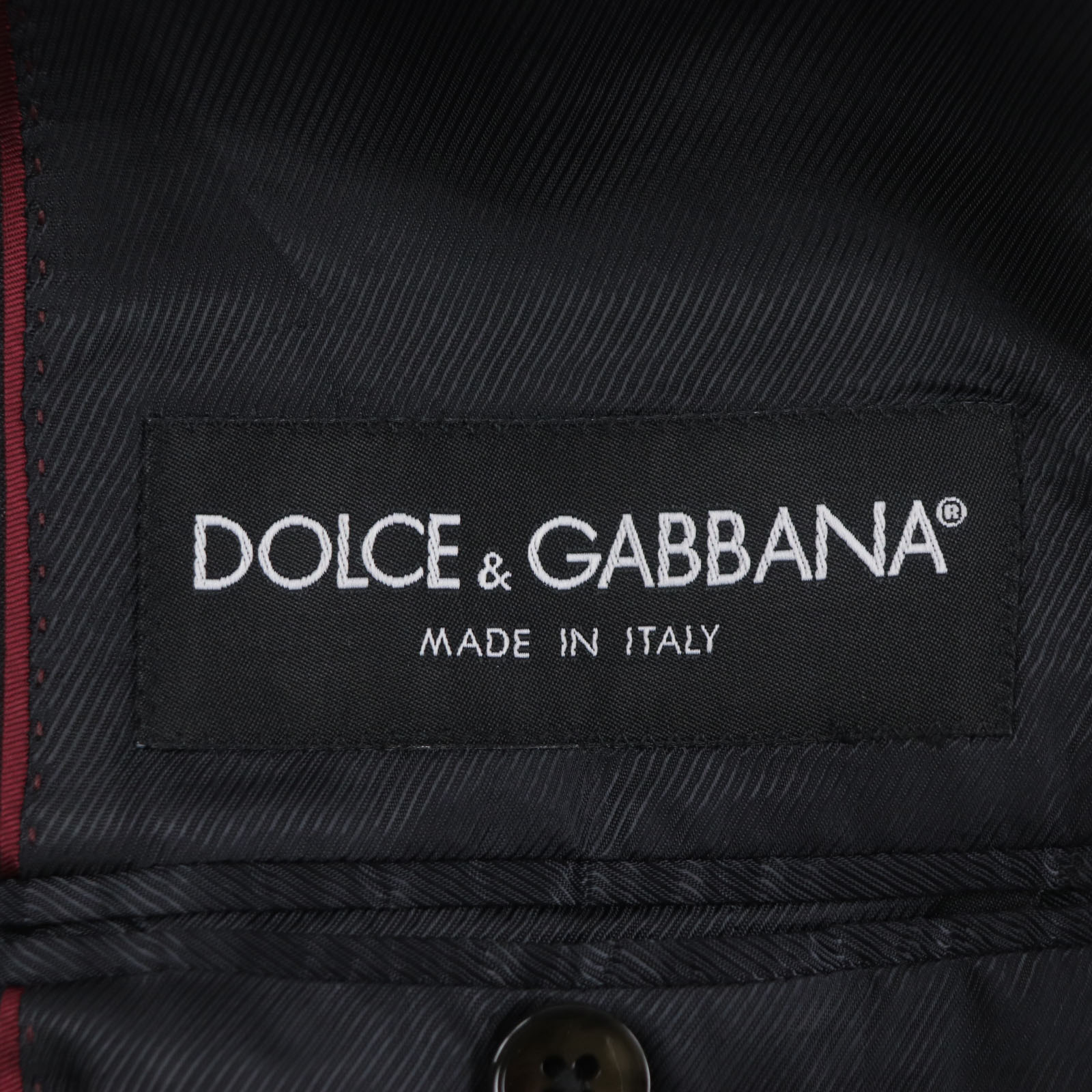 Excellent condition: DOLCE & GABBANA SICILIA 100% wool single-breasted suit with black tag, striped pattern, dark gray, size 44, made in Italy, includes hanger and garment bag. Authentic. Pre-owned.