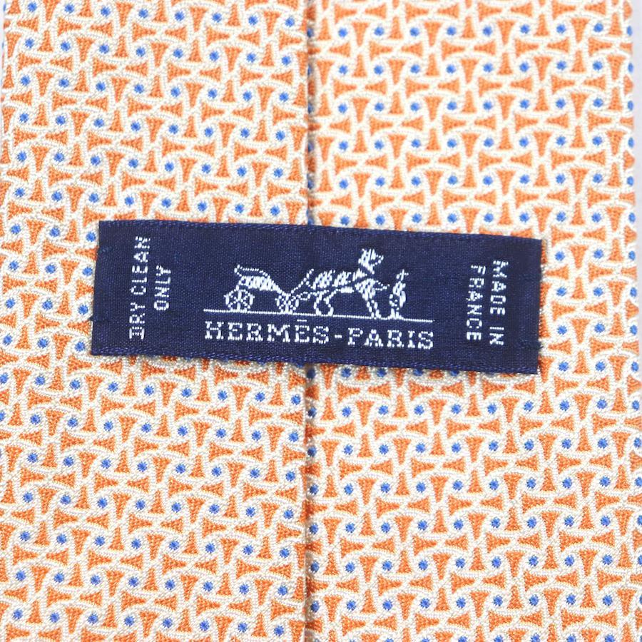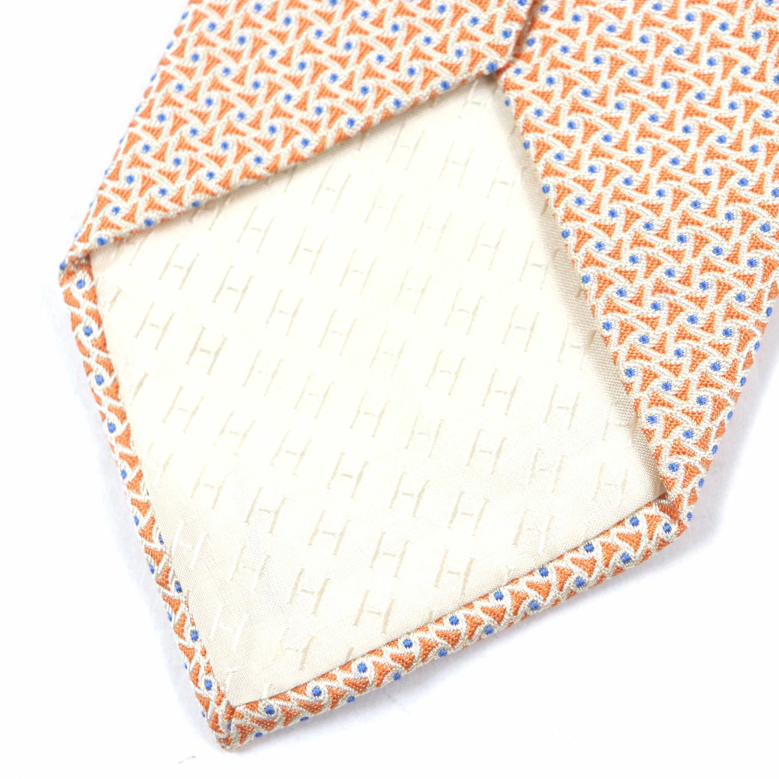 Excellent condition: HERMES 659082T 100% silk all-over print tie in orange and blue. Box included. Made in France. Recommended for men's business. [Pre-owned]