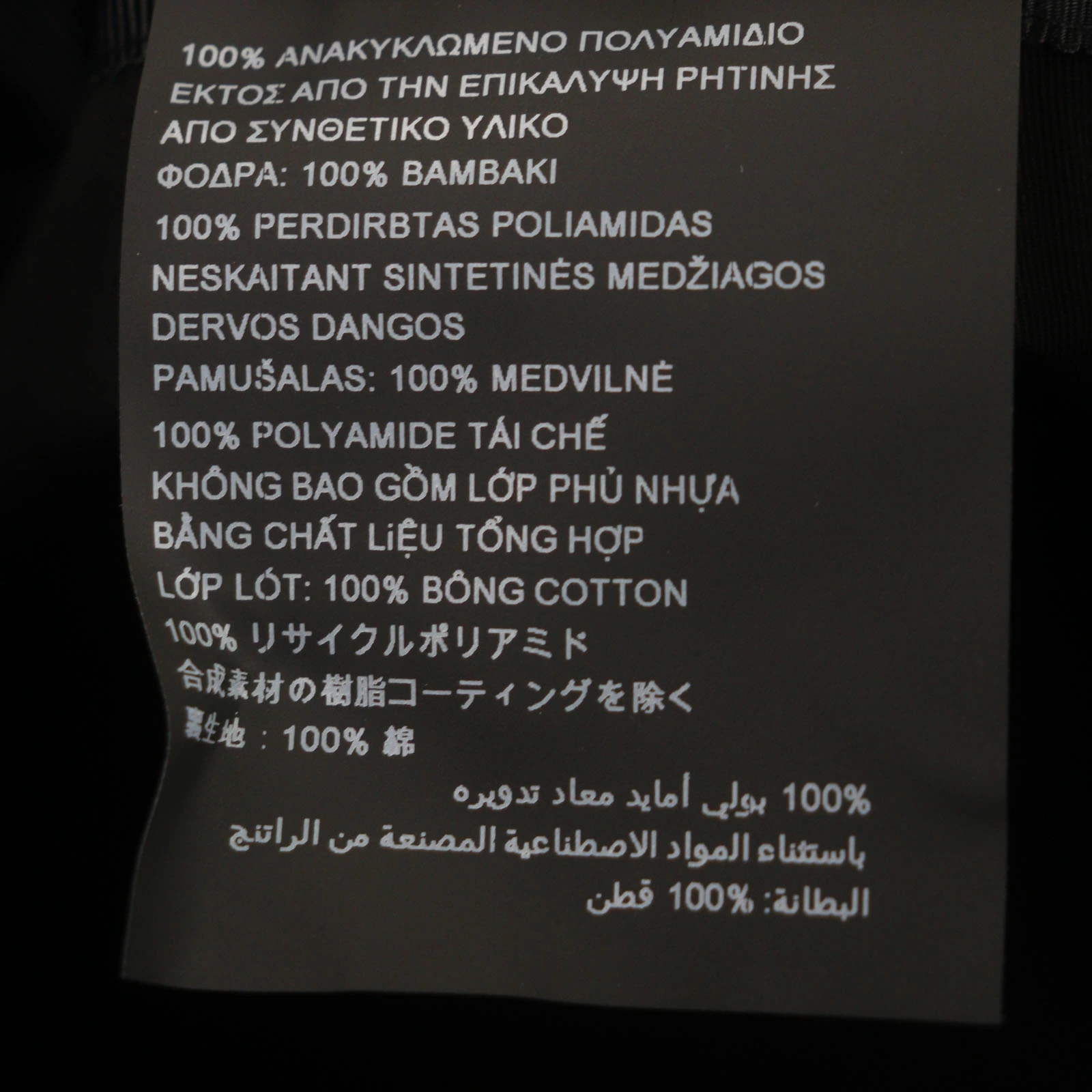 | 素材 (material) | 表地:リサイクルポリアミド100% 裏地:コットン100% | ||||||||||||||||