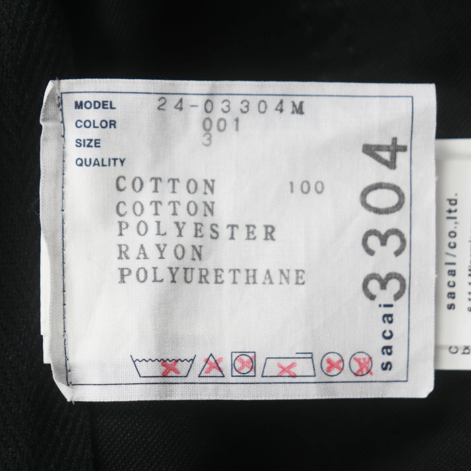 Excellent condition: Sacai 24SS 24-03304M Moleskin Embroidered Patch Jacket, black, size 3, made in Japan, authentic, men's.