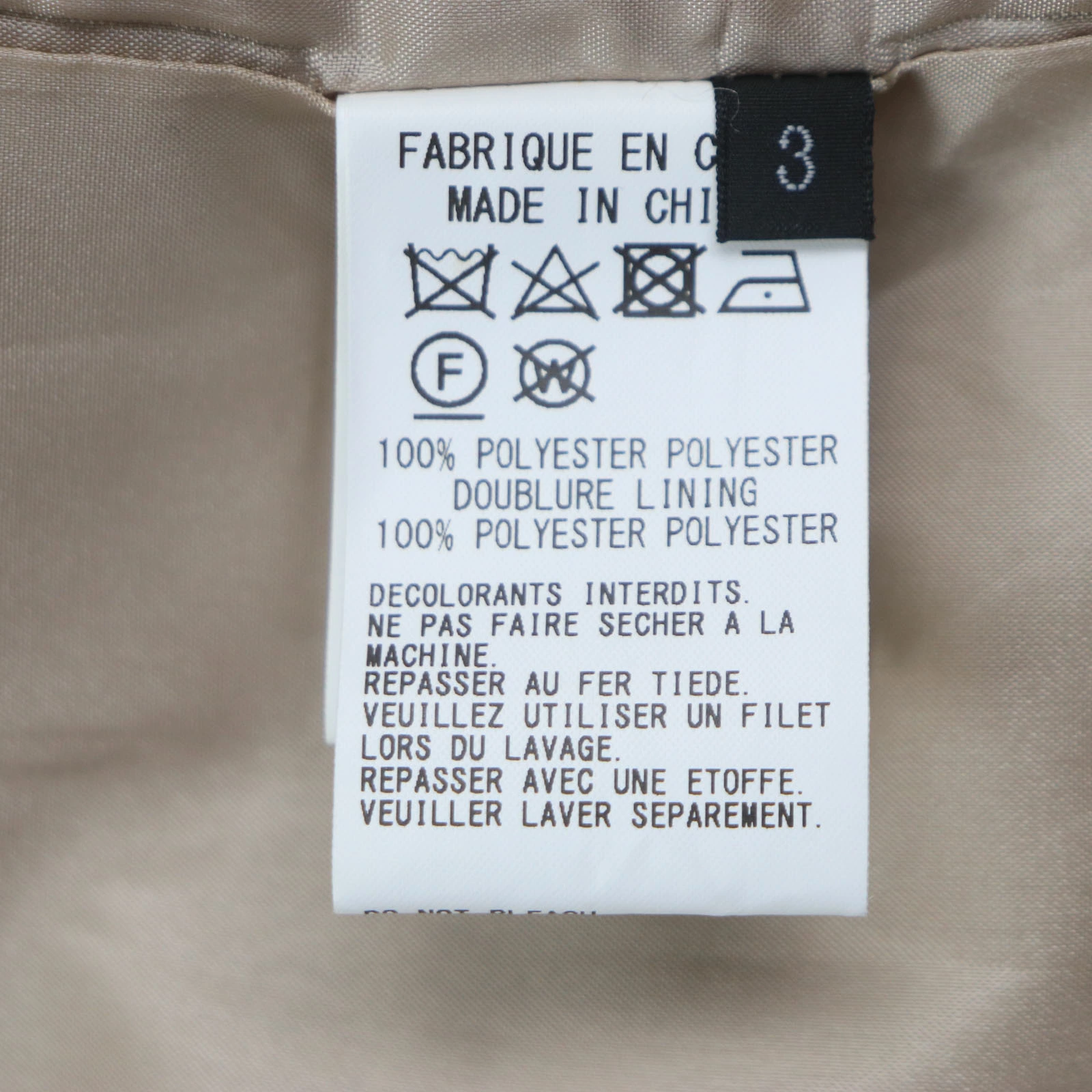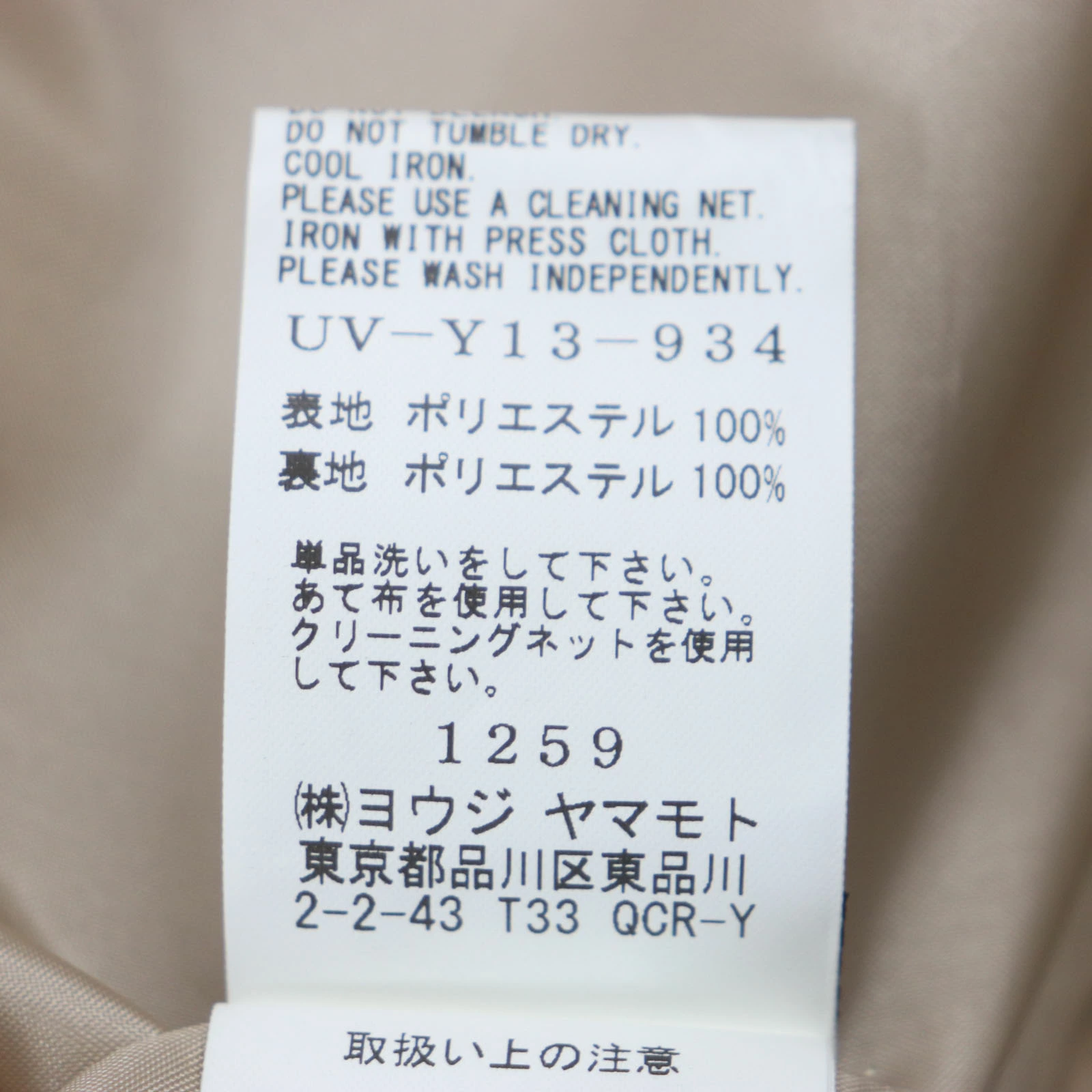 | 素材 (material) | 表地:ポリエステル100% 裏地:ポリエステル100% | ||||||||||||||||