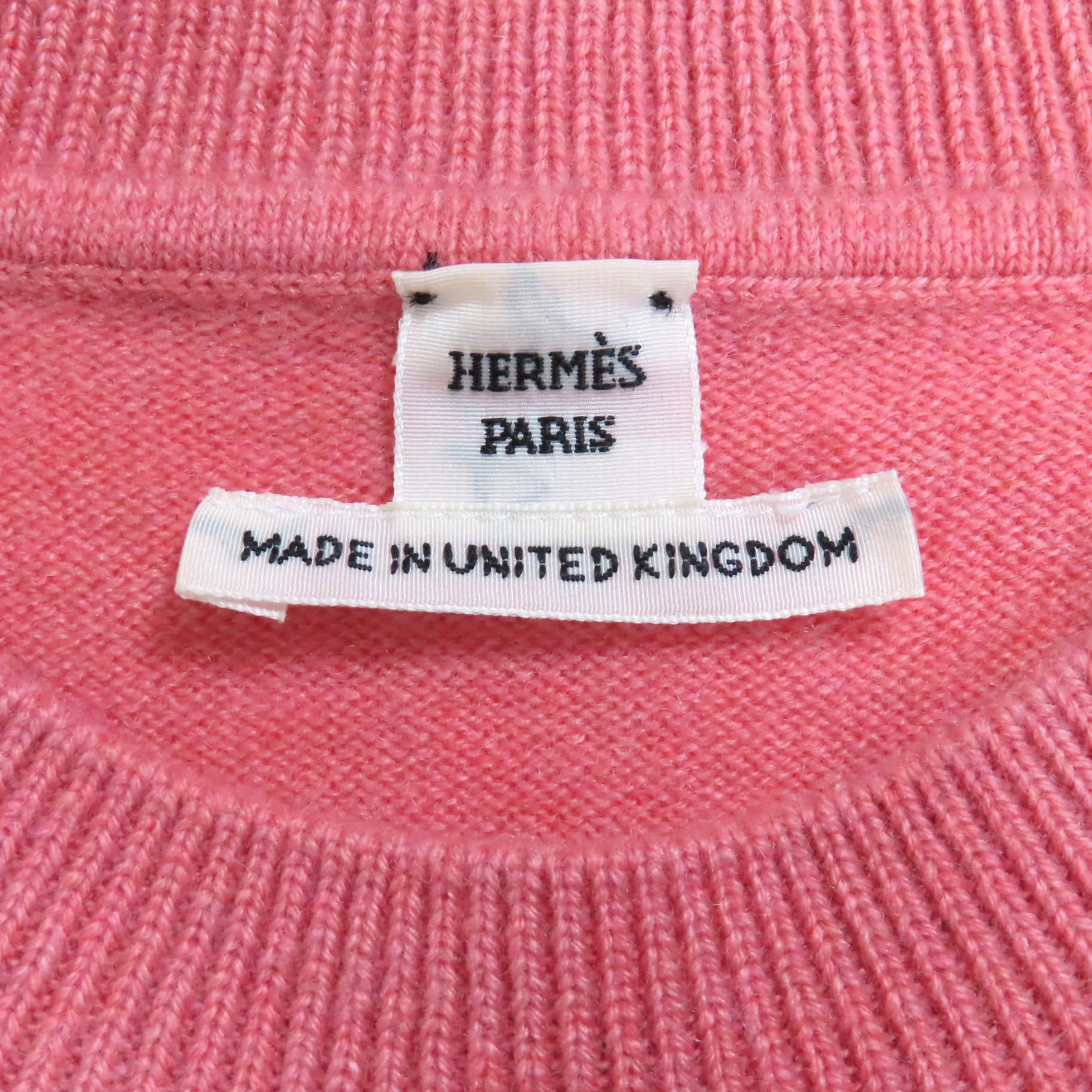 Excellent condition: HERMES 2024AW 2604D1 100% Cashmere H-Lift Pullover Long Sleeve Knit Sweater, Pink, Size 36, Made in England, Authentic, Women's [Pre-owned]