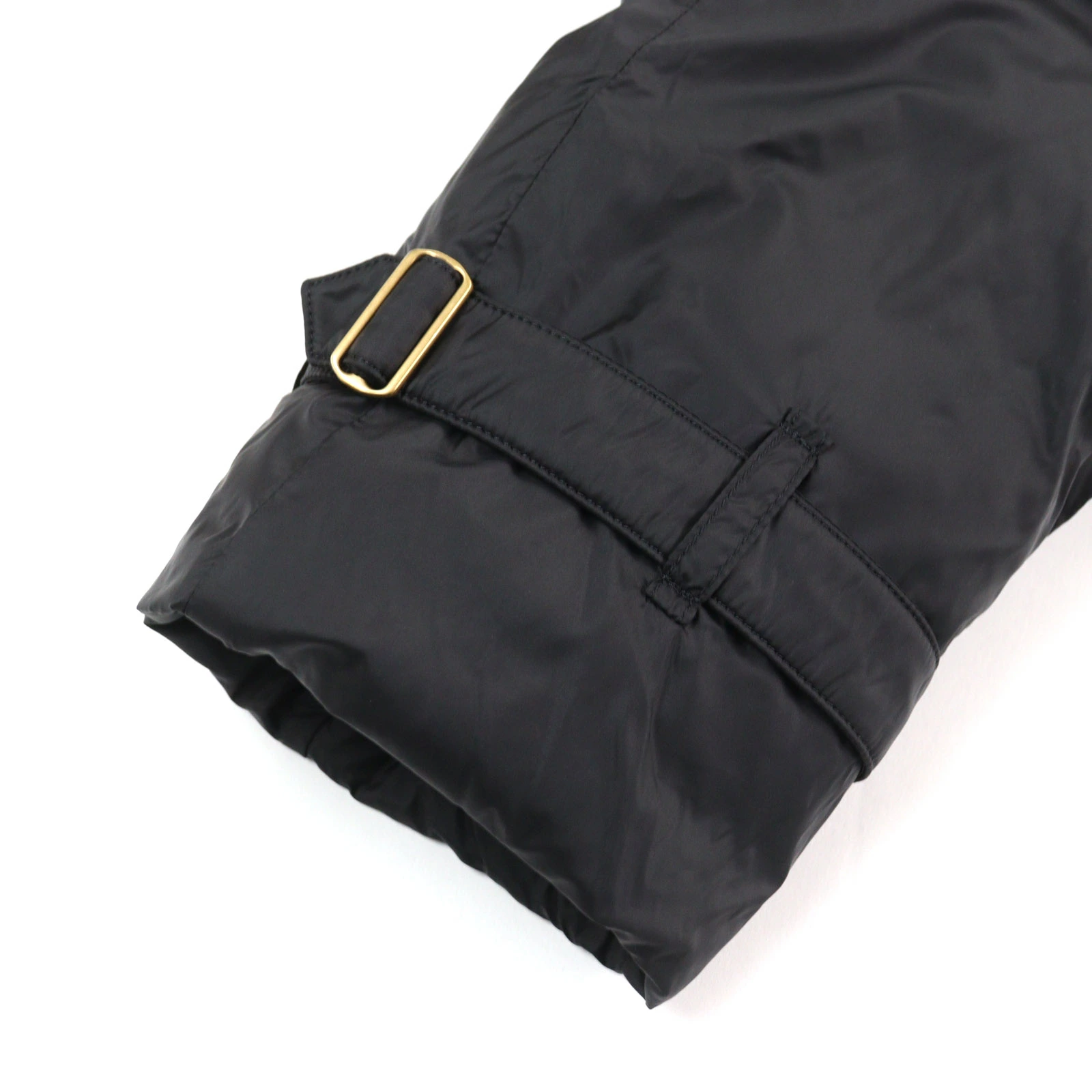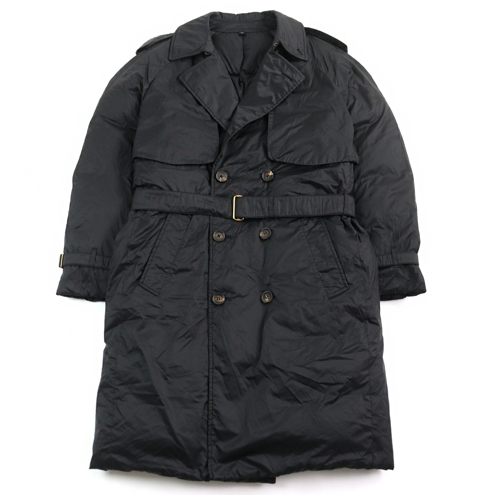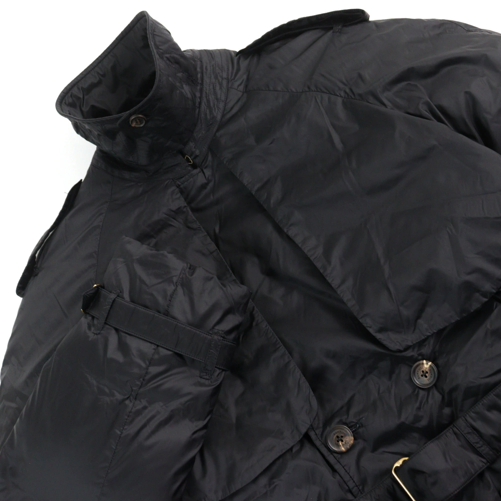 Excellent condition Dunhill down trench coat with logo buttons, belt, chin strap, and epaulettes. Black, size S. Made in Italy. Authentic. Men's. [Pre-owned]