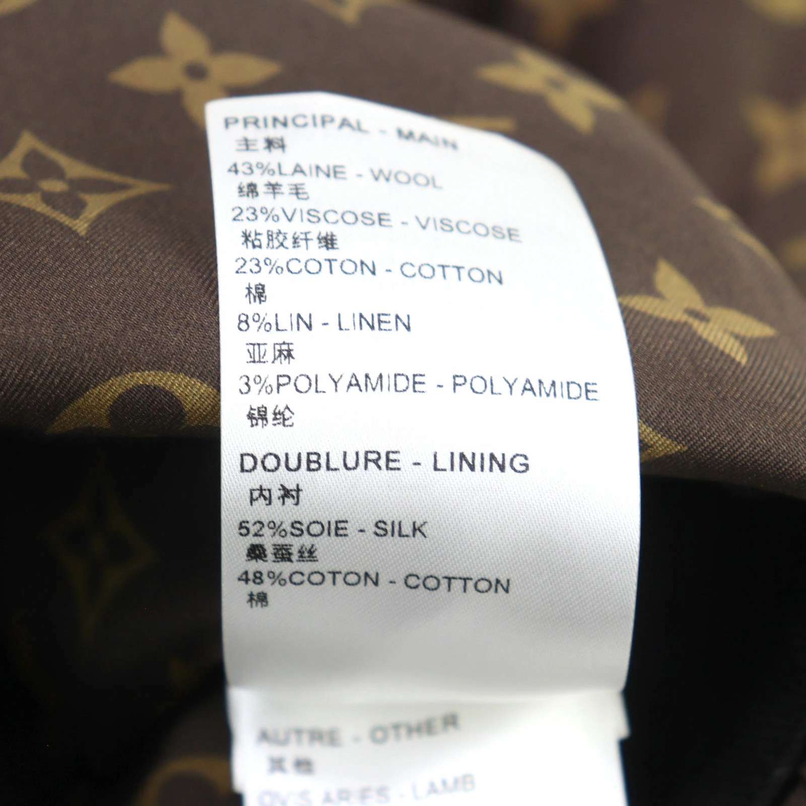 | 素材 (material) | 表地:ウール43% :ビスコース23% :コットン23% :リネン8% :ポリアミド3% 裏地:シルク52% :コットン48% 一部:牛革 :羊革 | ||||||||||||||||
