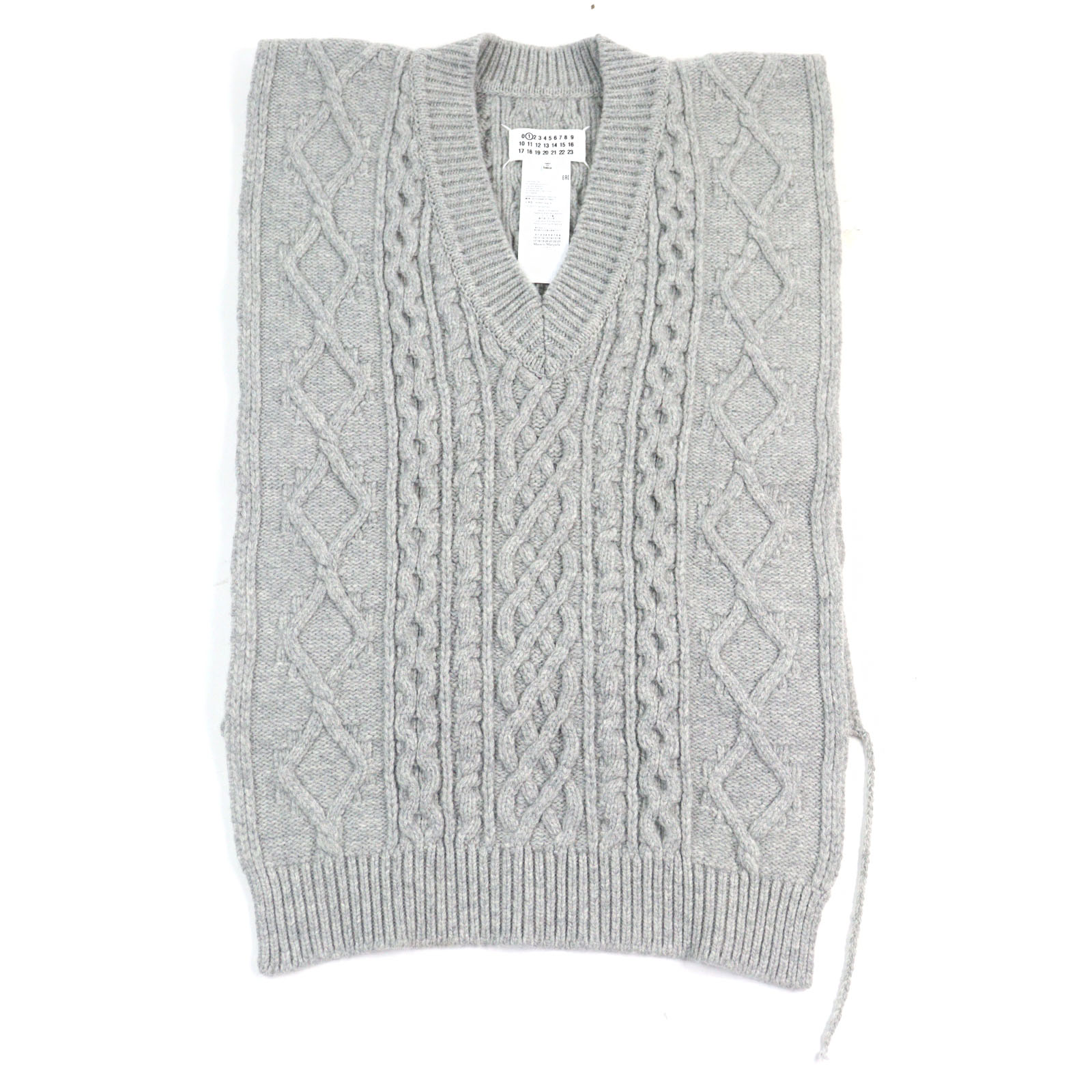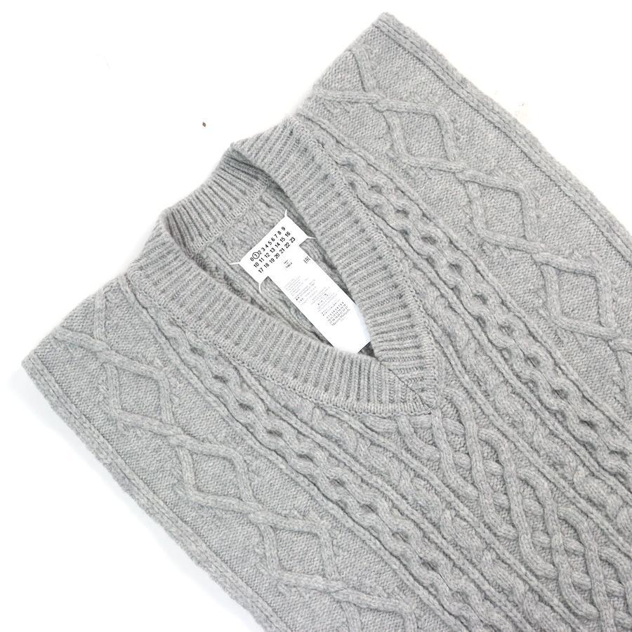 Excellent condition Maison Margiela 1 21AW S51TH0085 100% wool Icon Stitch V-neck poncho-style cable knit vest, gray, size M, authentic, men's [pre-owned]