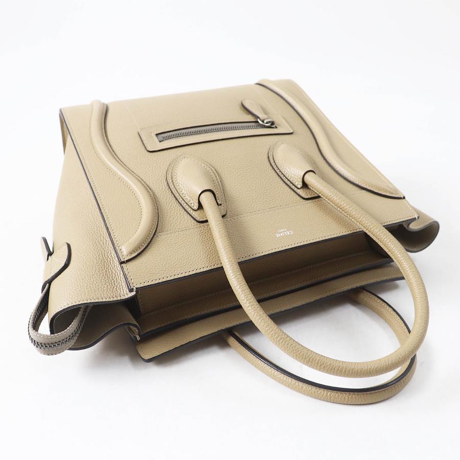 Excellent condition: Celine 18979 Luggage Micro Shopper Dune Drummed Calfskin Handbag with dust bag, Made in Italy, Women's [Pre-owned]