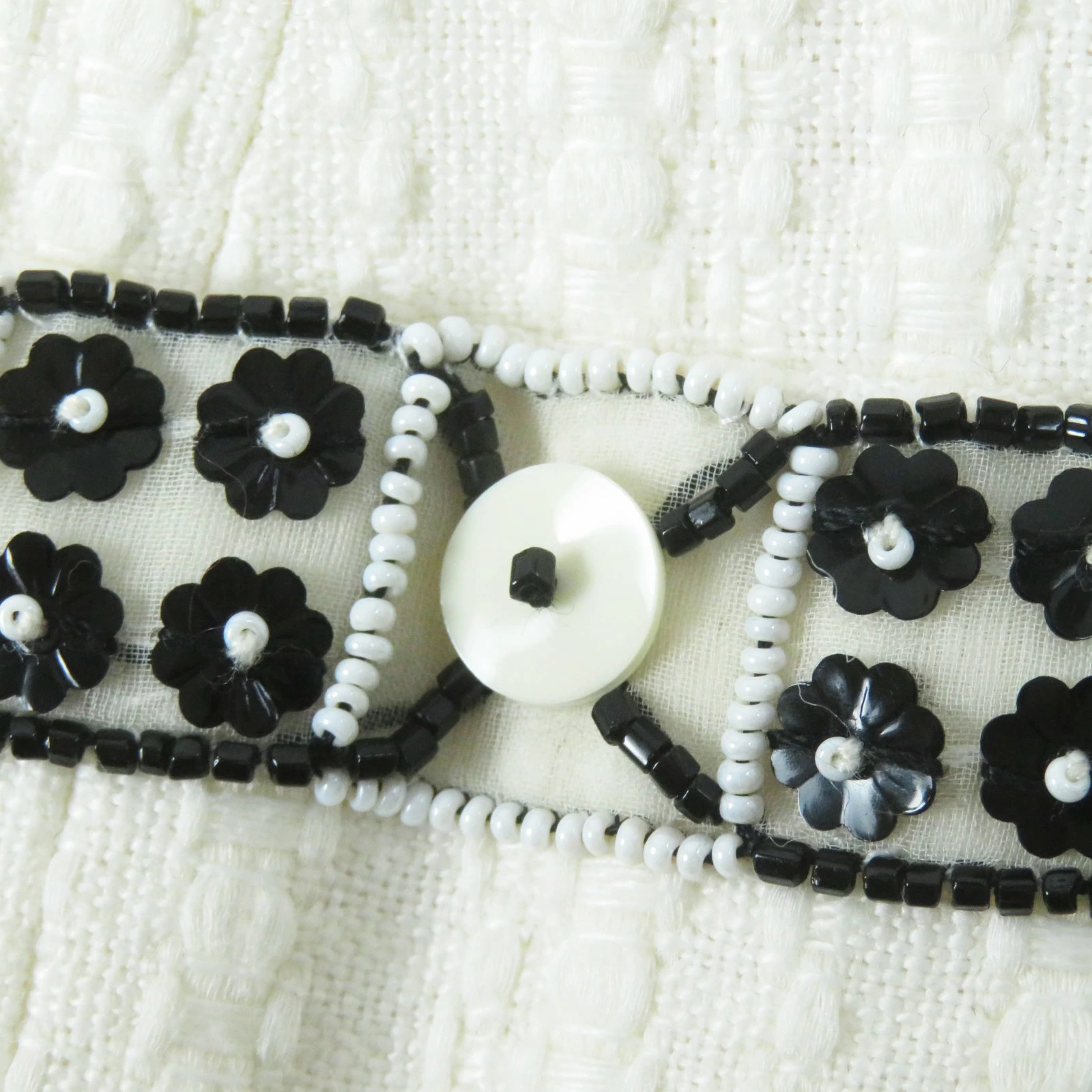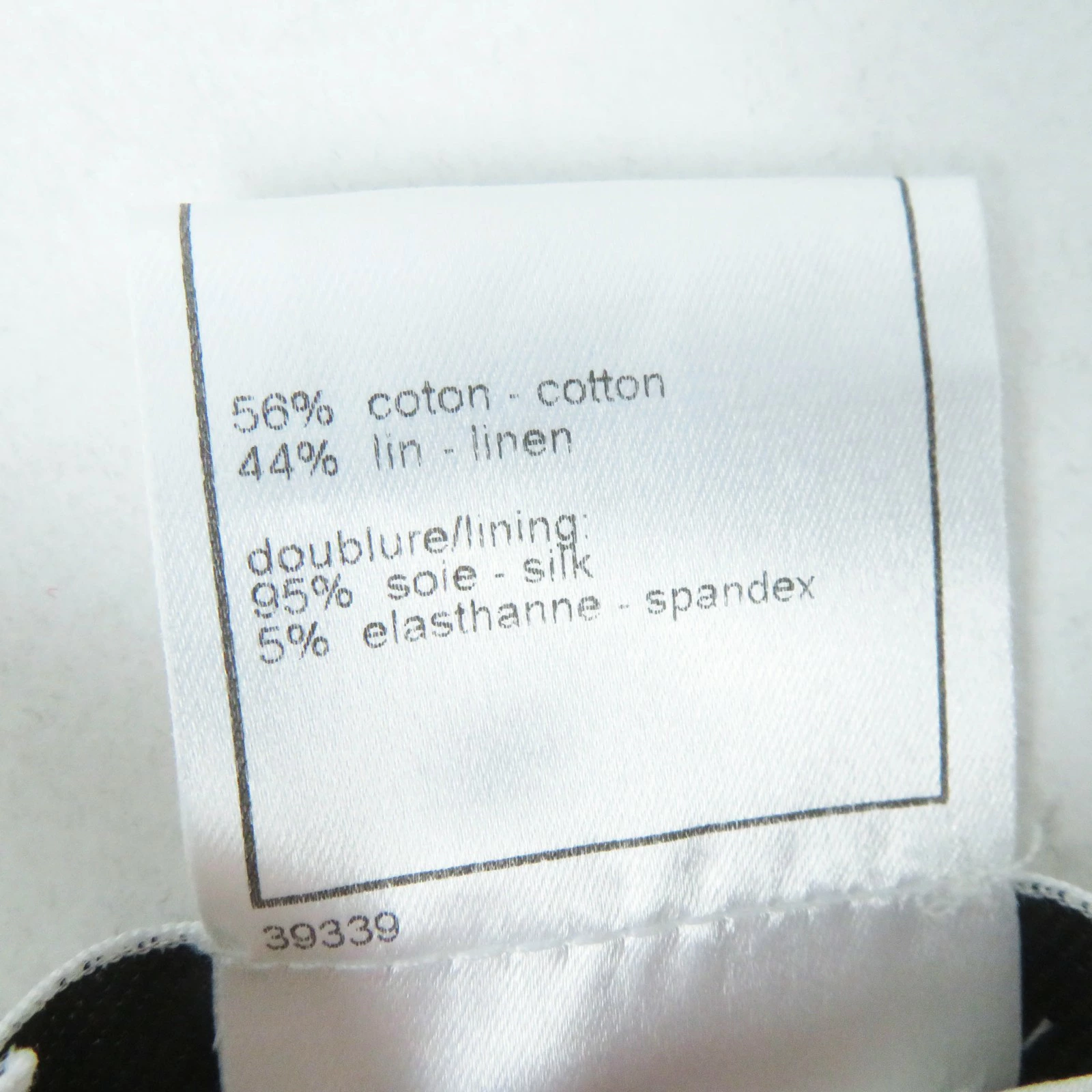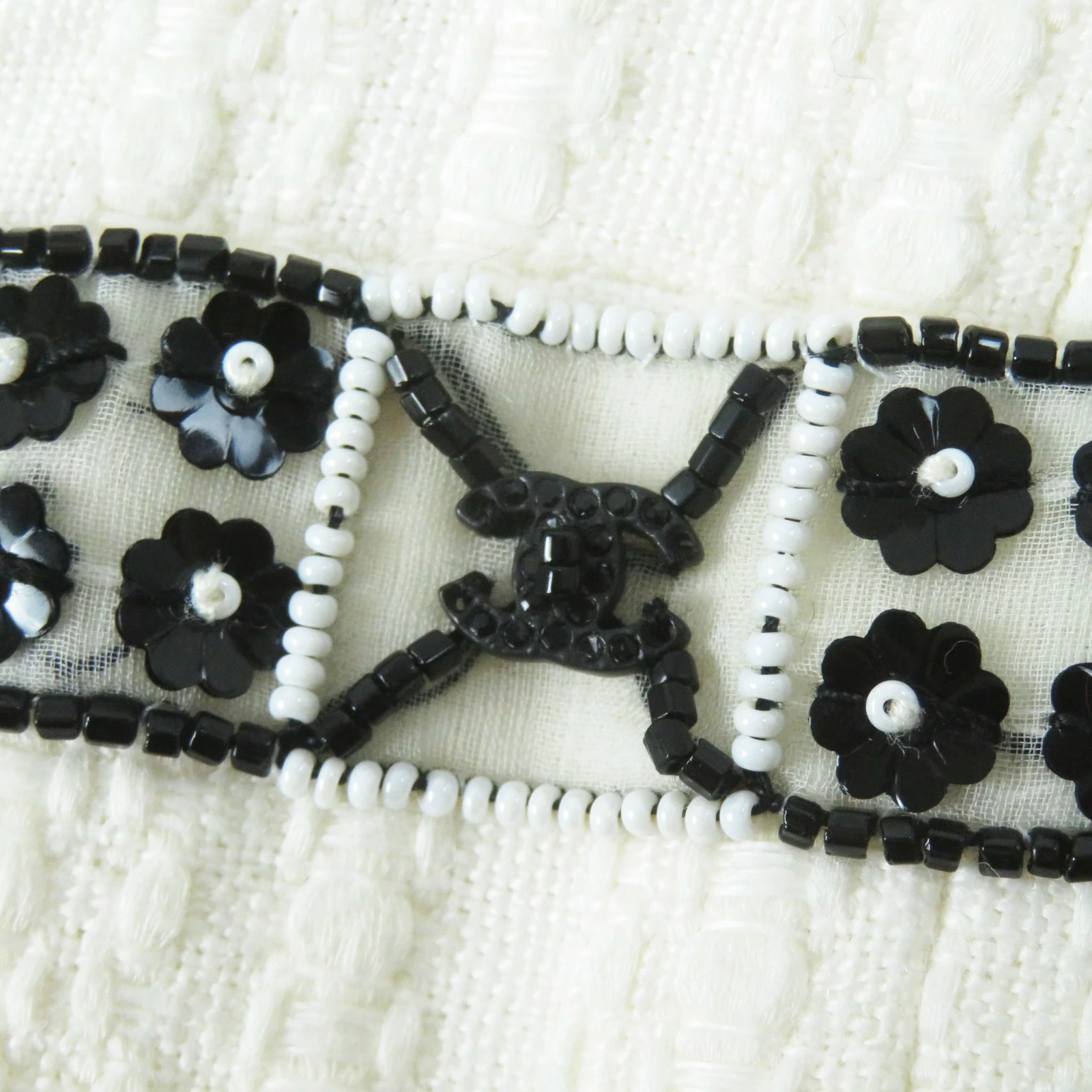 Excellent condition CHANEL 03P P21247 Cotton/Linen Blend Tweed Jacket with Coco Mark and Beads, Collarless, Ivory/Black, Size 38, Made in France, Women's [Pre-owned]