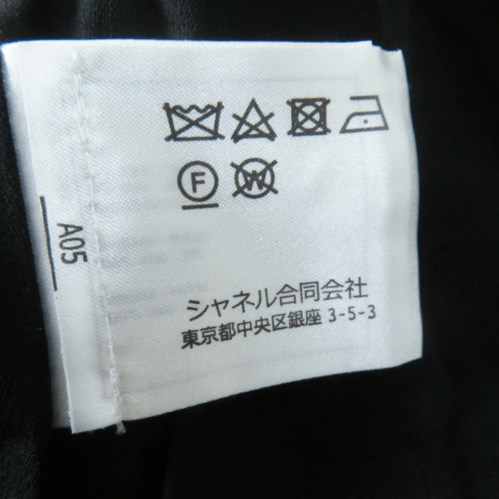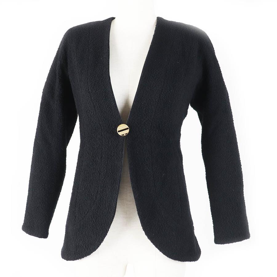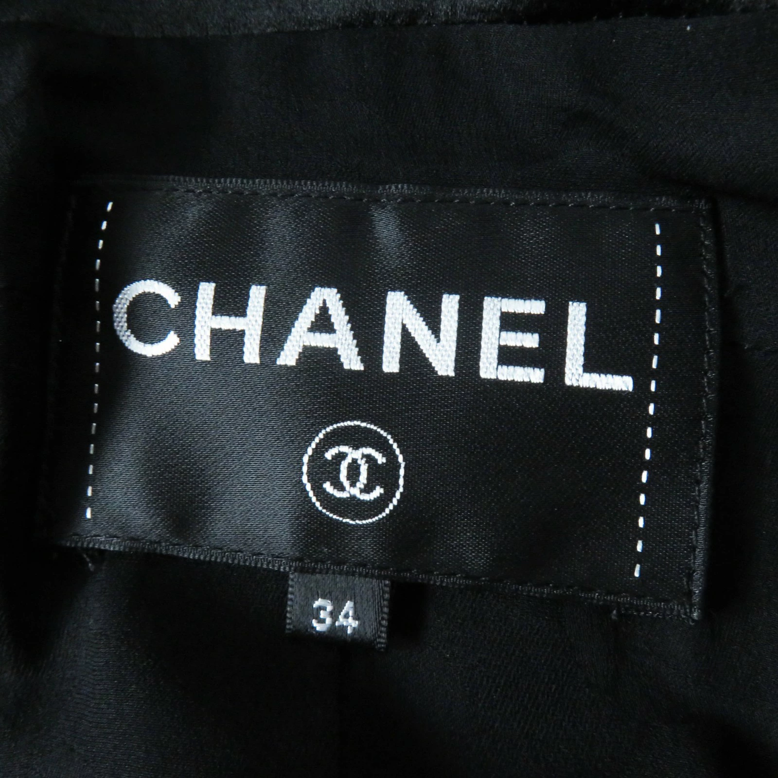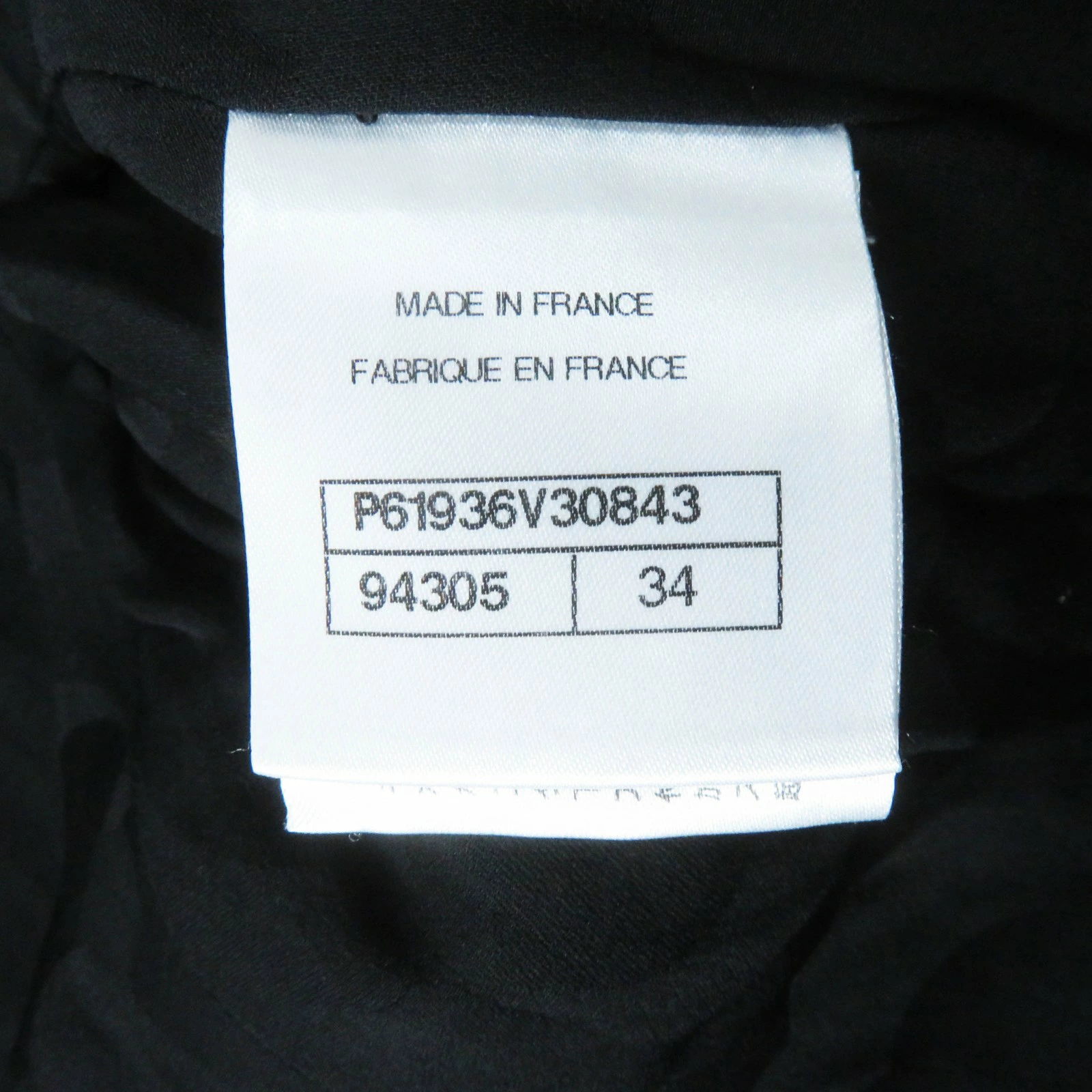 Excellent condition: CHANEL 19A P61936 wool and silk tweed collarless jacket with Coco Mark buttons, black, size 34, made in France, authentic, women's. Pre-owned.