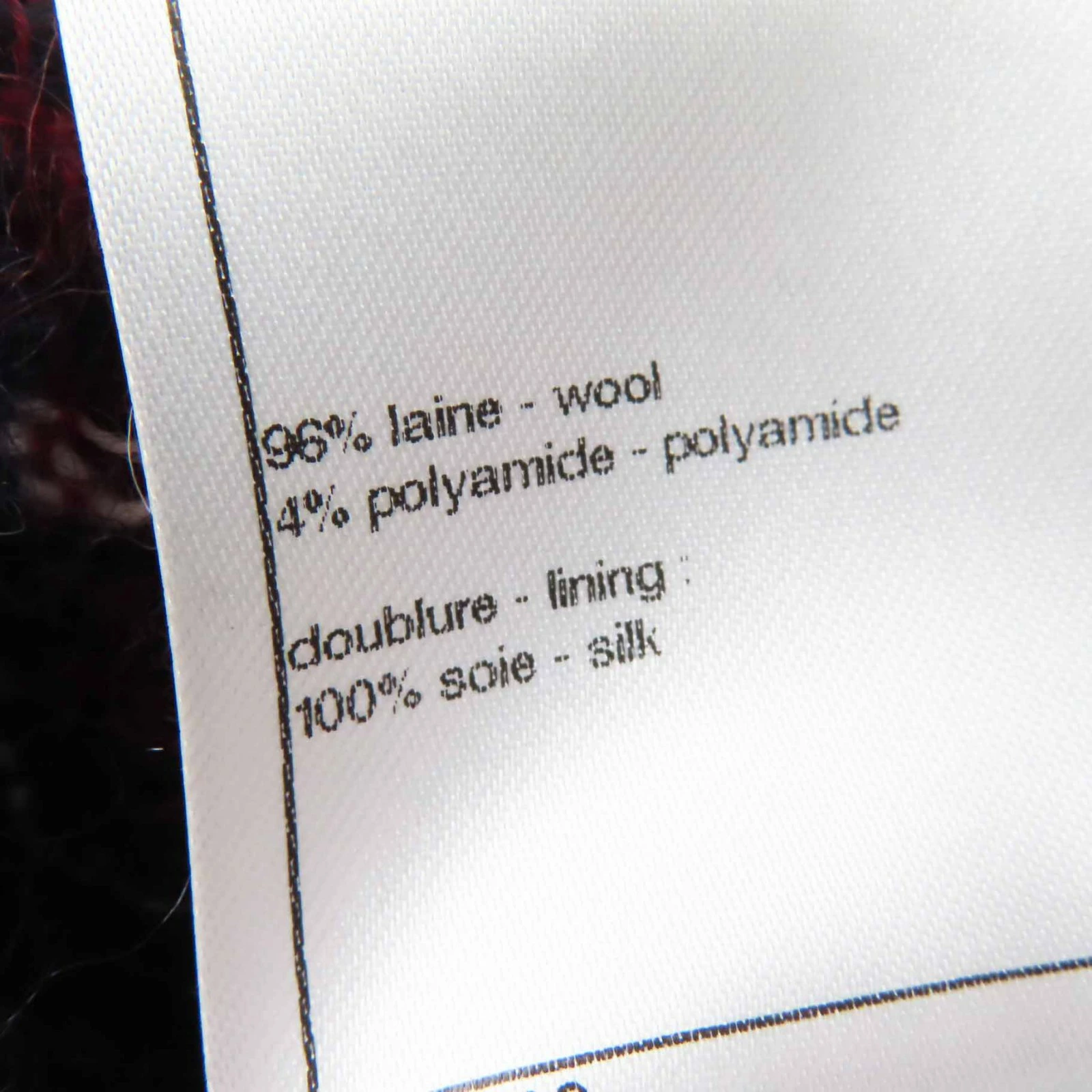 | 素材 (material) | 本体:ウール96% :ポリアミド4% 裏地:シルク100% | ||||||||||||||||