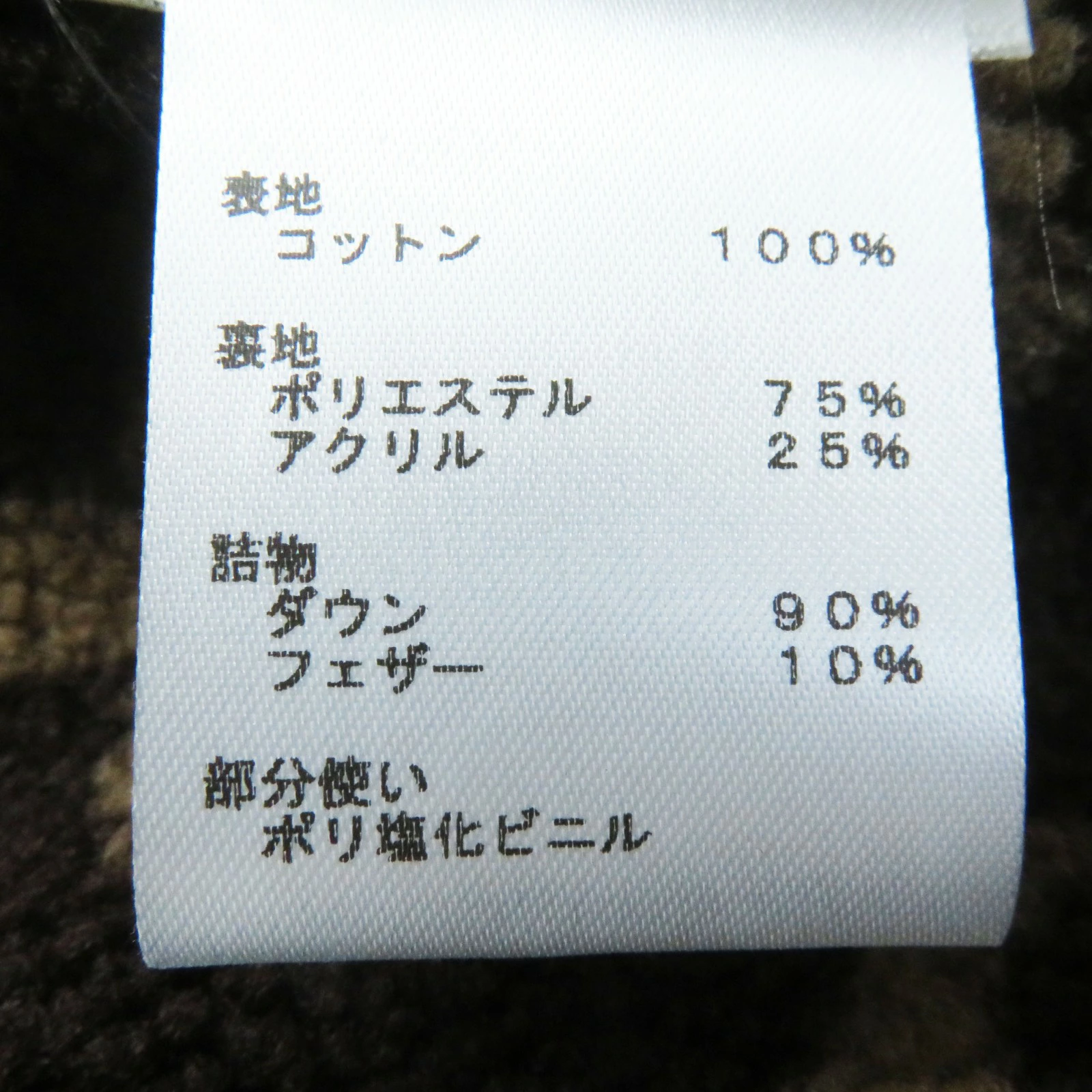 | 素材 (material) | 表地:コットン100% 裏地:ポリエステル75% :アクリル25% 中綿:ダウン90% :フェザー10% 表地:コットン100% 裏地:ポリエステル75% :アクリル25% 中綿:ダウン90% :フェザー10% 部分:ポリ塩化ビニル | ||||||||||||||||