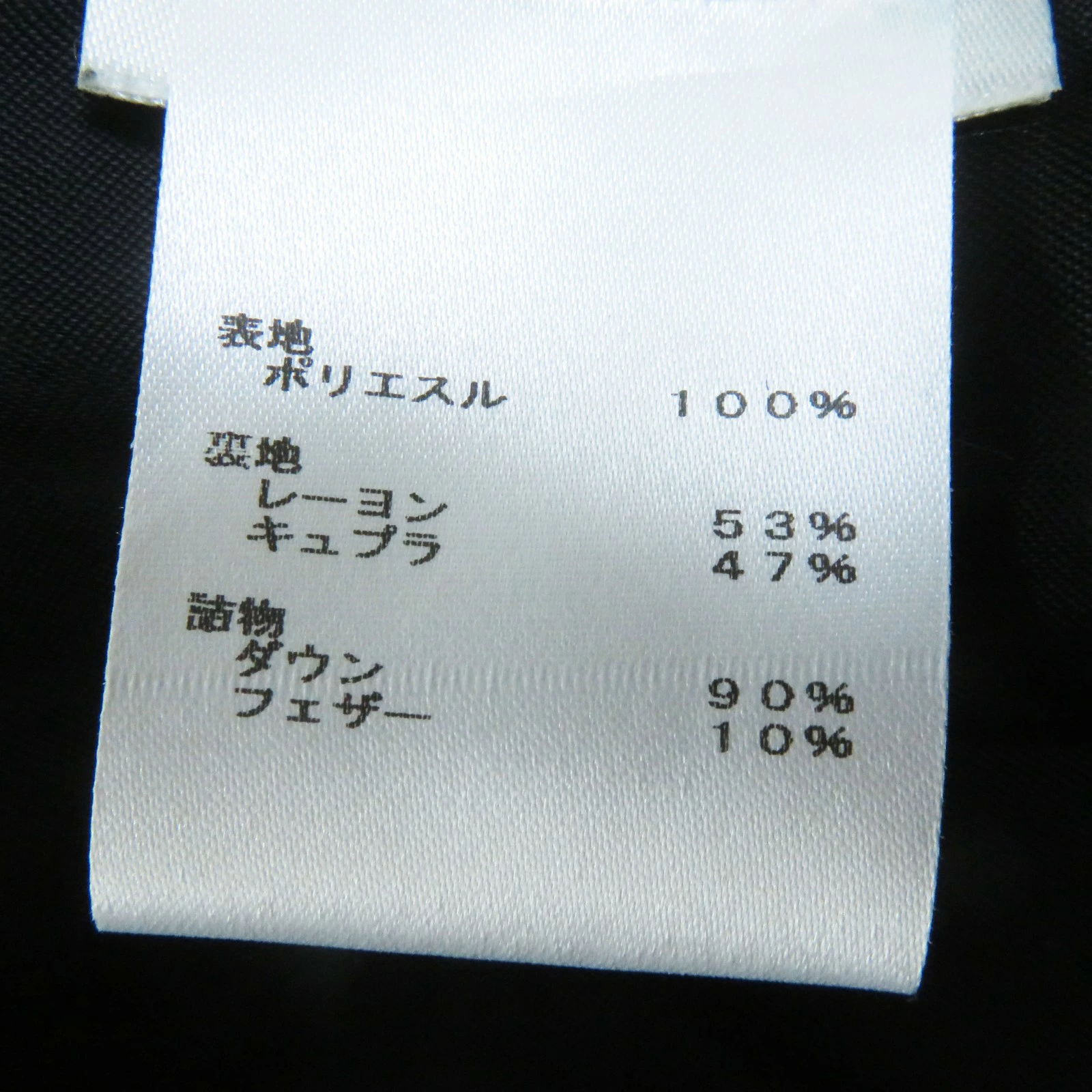 | 素材 (material) | 表地:ポリエステル100% 裏地:レーヨン53% :キュプラ47% 中綿:ダウン90% :フェザー10% | ||||||||||||||||