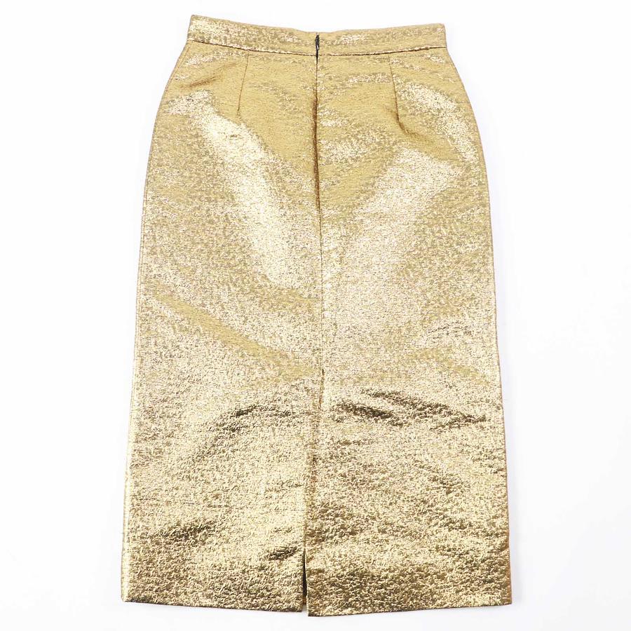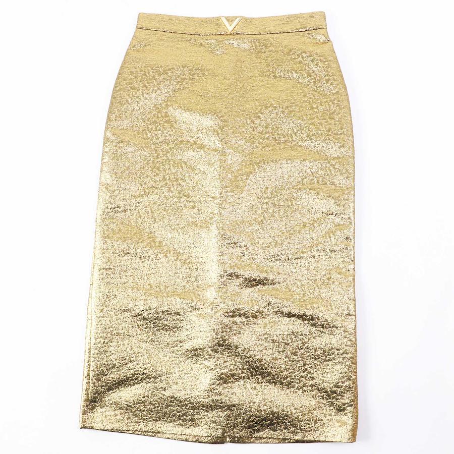 Excellent condition: VALENTINO VB3RA7B5663 long, tight skirt with V-plate, gold, size 42, made in Italy, authentic, women's [pre-owned]