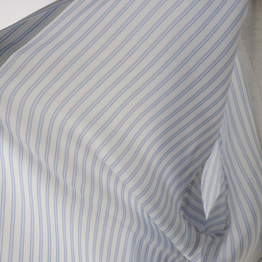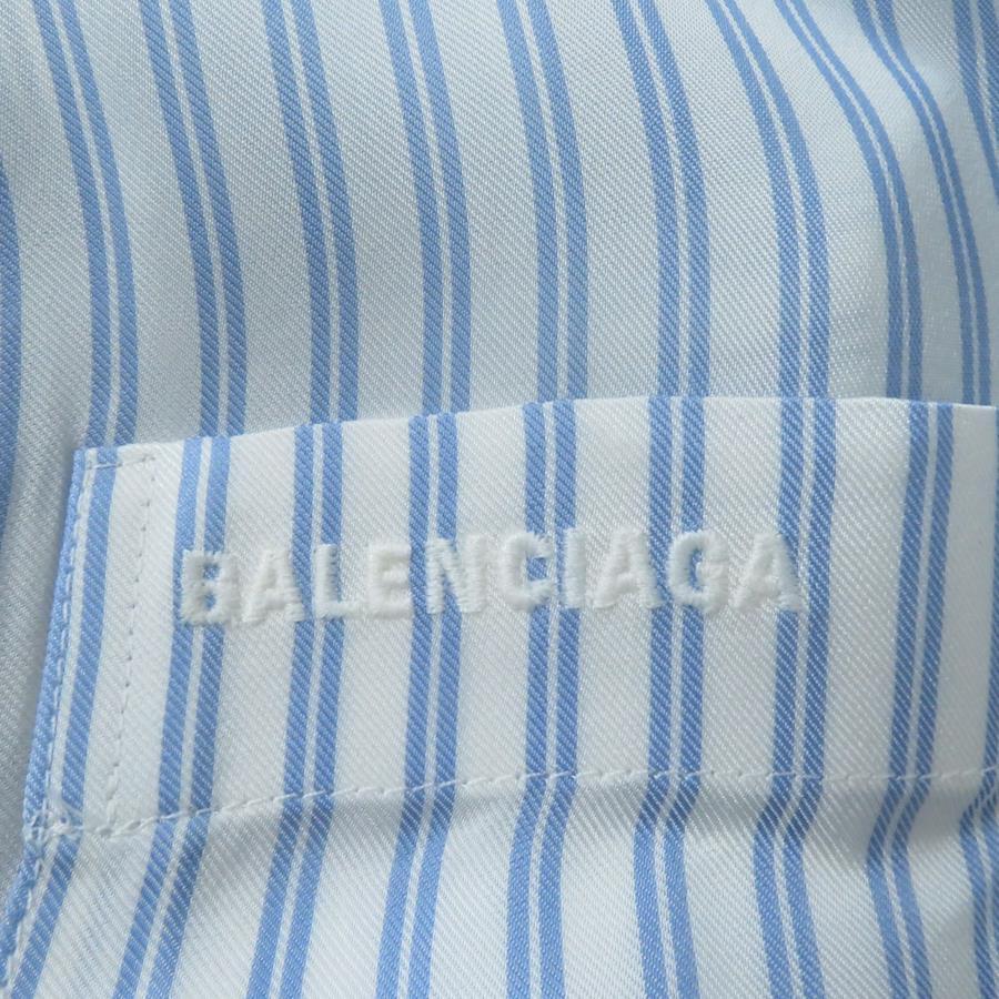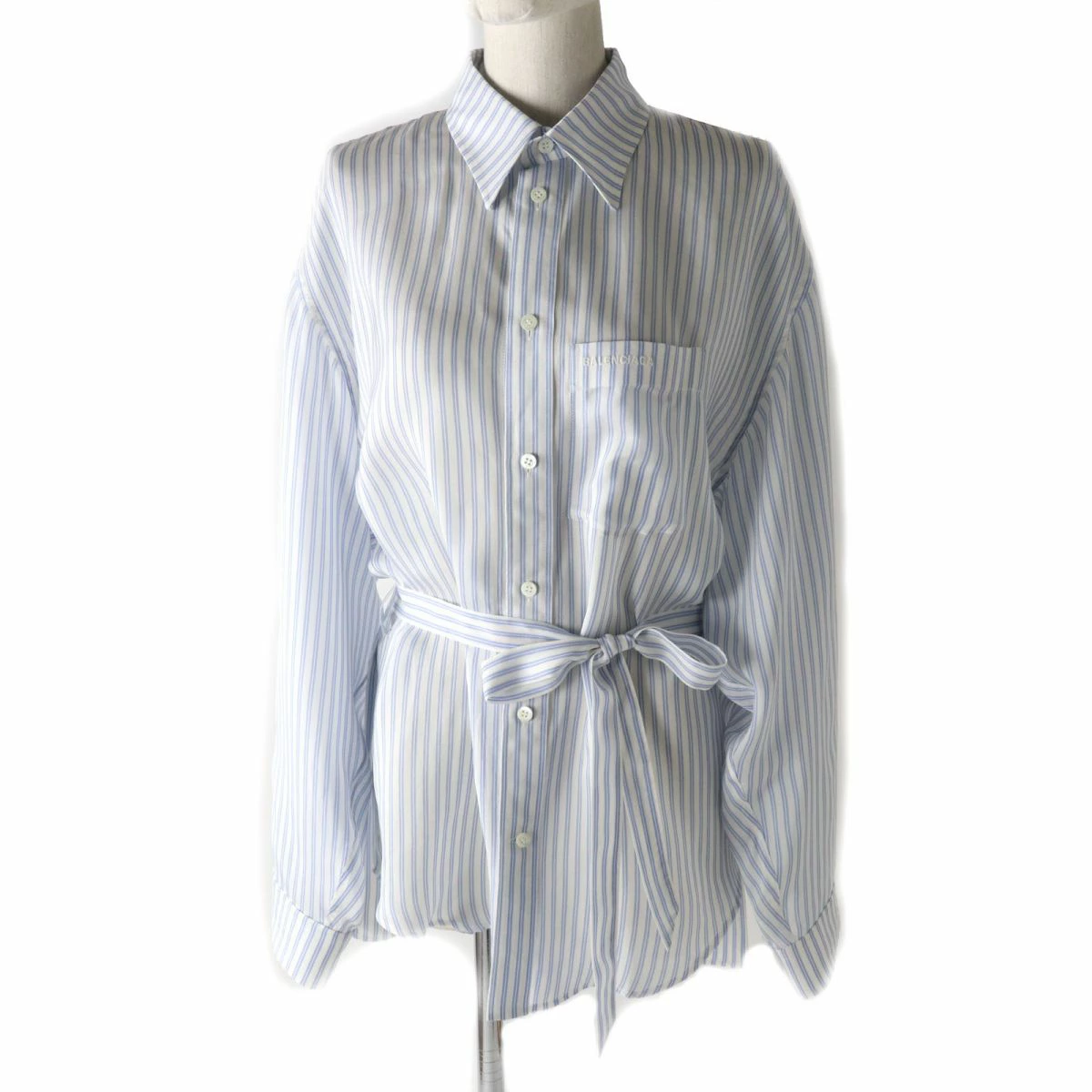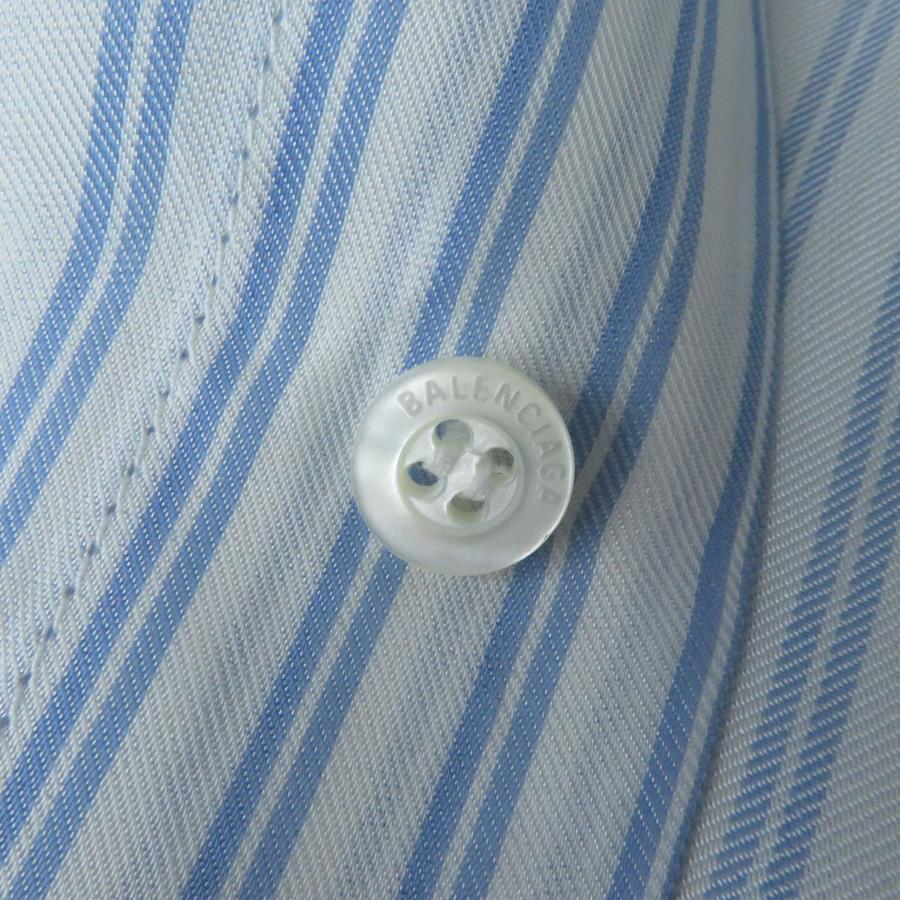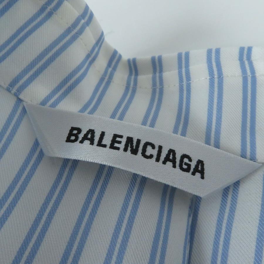 Excellent condition ★ 2020 Authentic BALENCIAGA 659507 Striped Cupro Shirt with Embroidered Logo, Logo Buttons and Ribbon, White and Light Blue, Size 34 [Pre-owned]