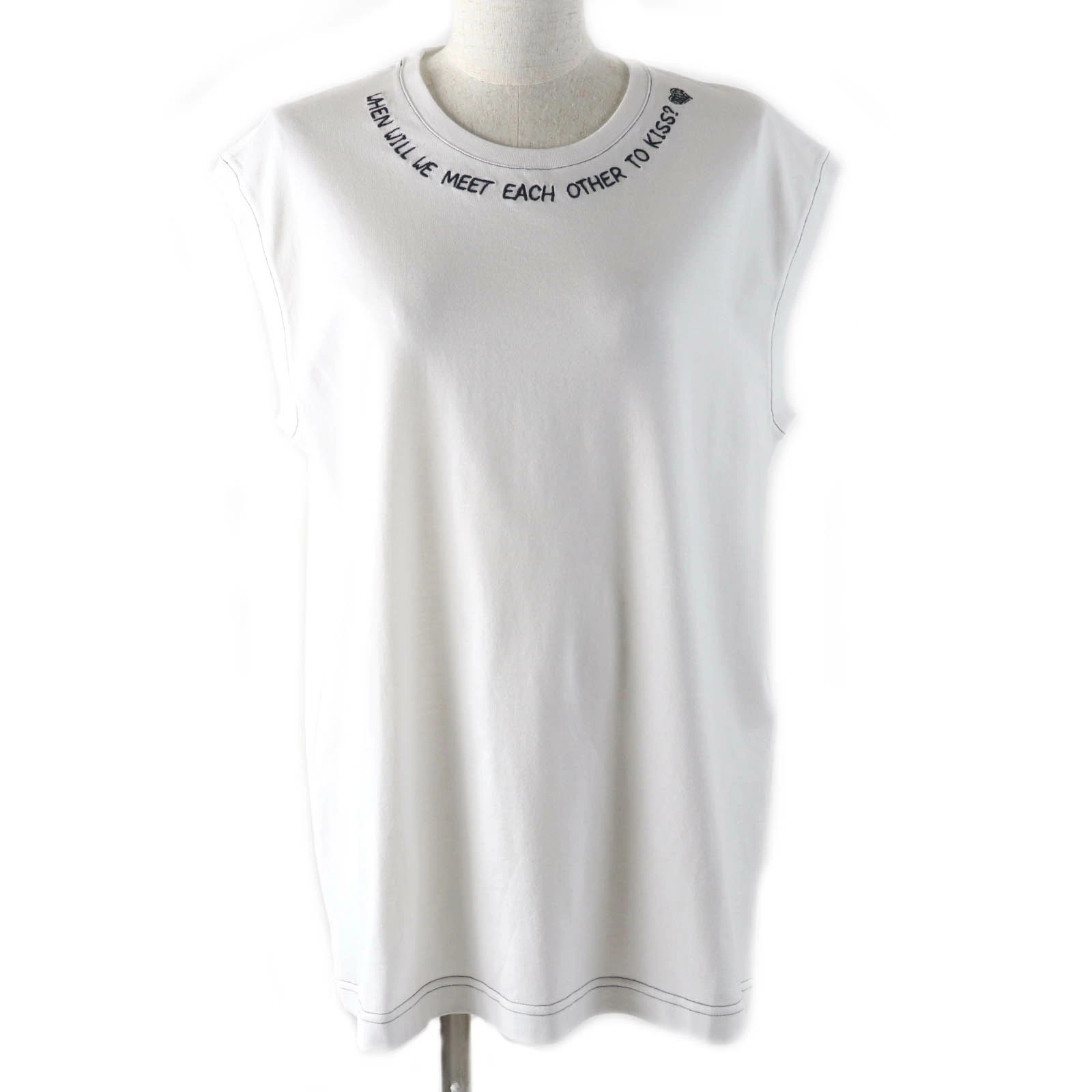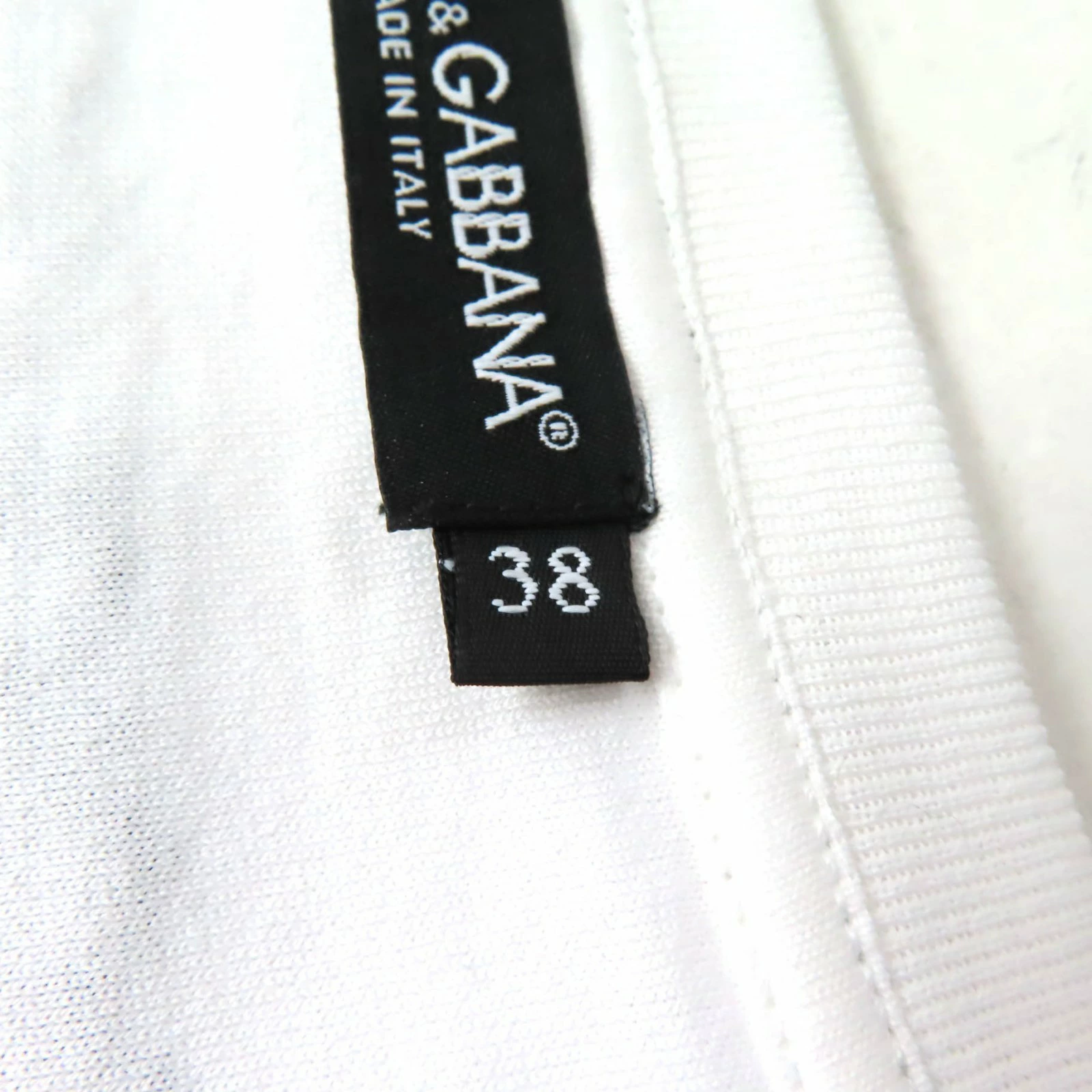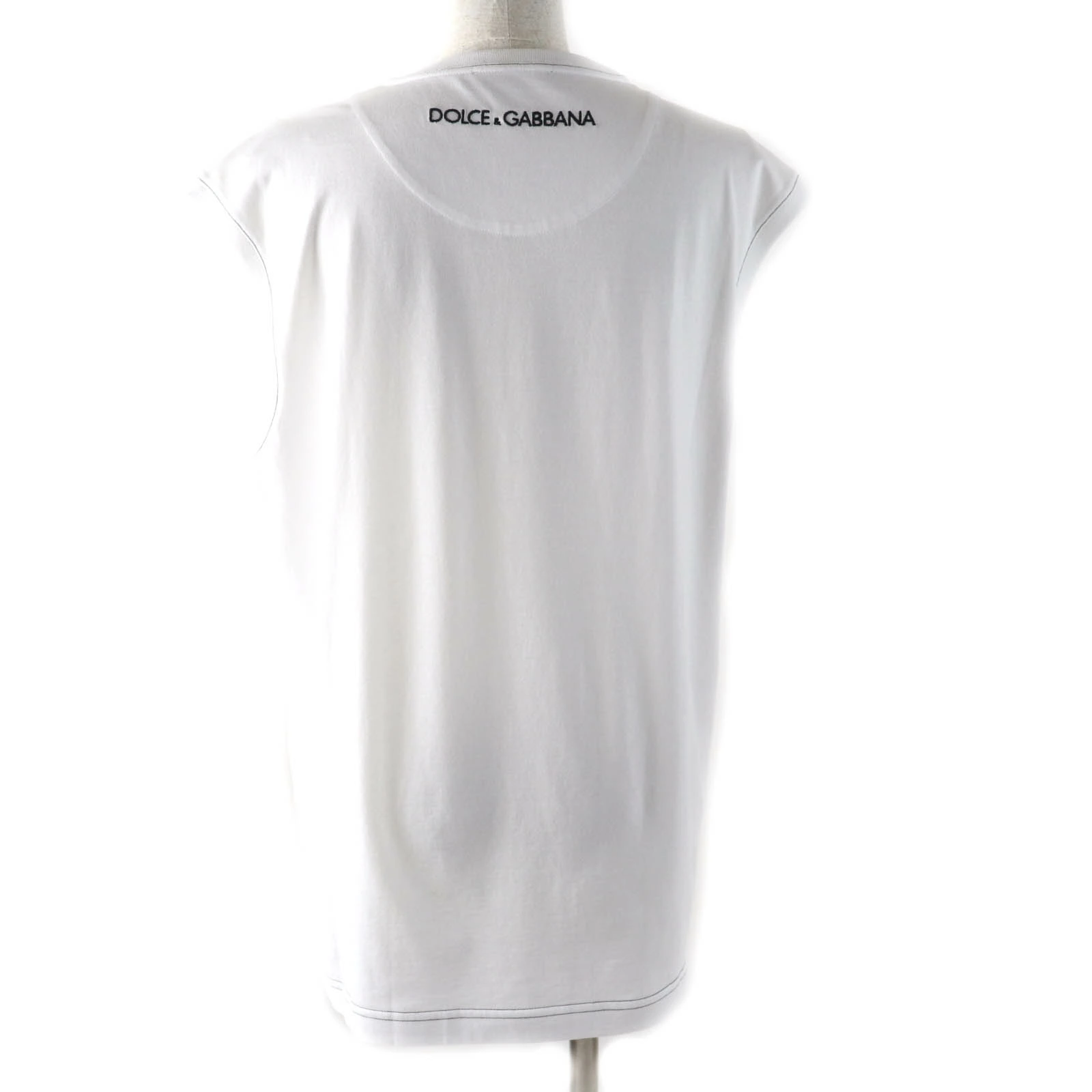 Excellent condition DOLCE & GABBANA 100% cotton crew neck sleeveless top with embroidered logo, white, size 38, made in Italy, authentic, women's [pre-owned]