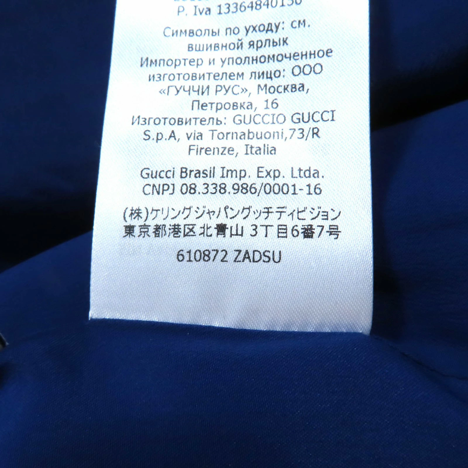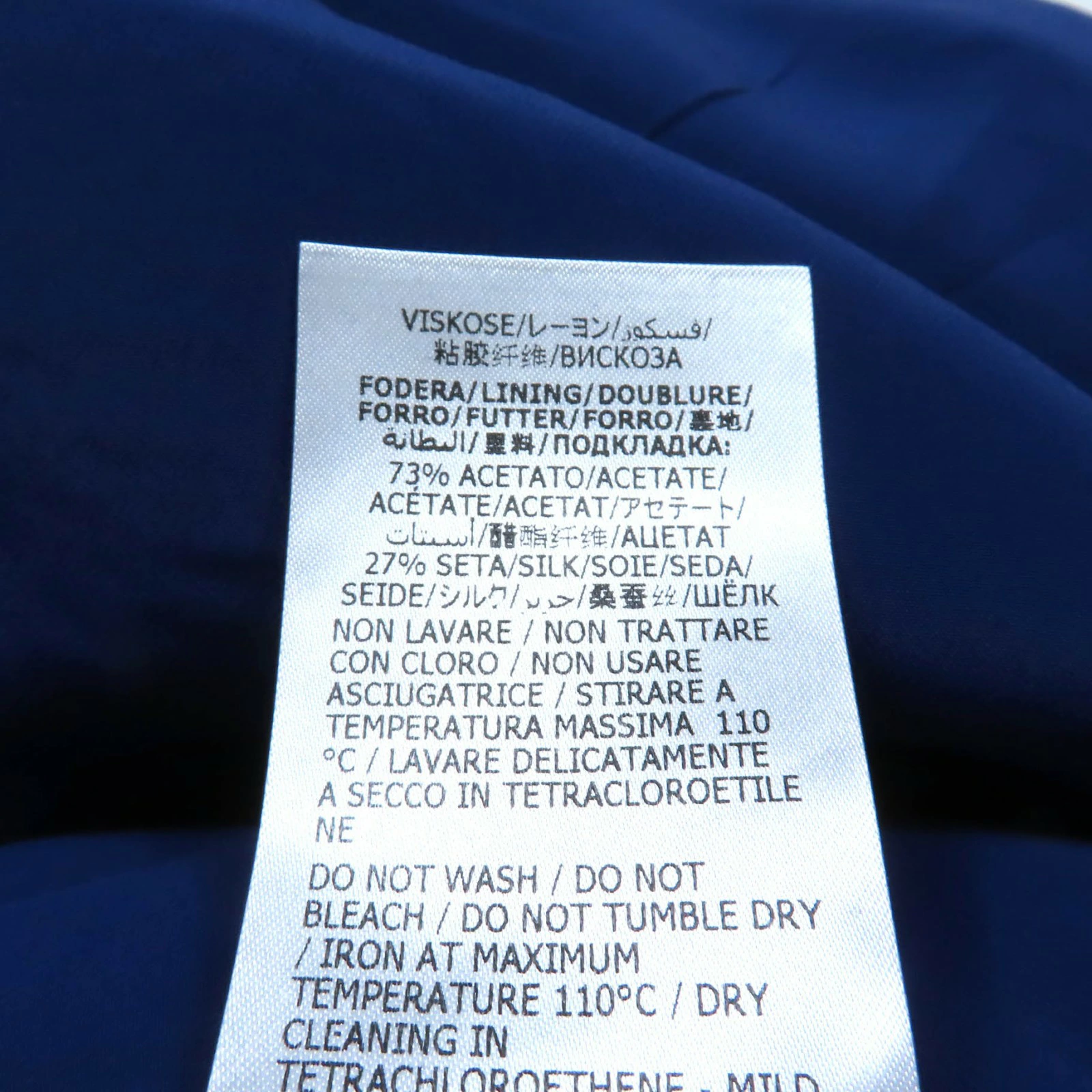 | 素材 (material) | 表地:ウール68% :シルク32% 一部:アクリル50% :ビスコース50% 裏地:アセテート73% :シルク27% | ||||||||||||||||