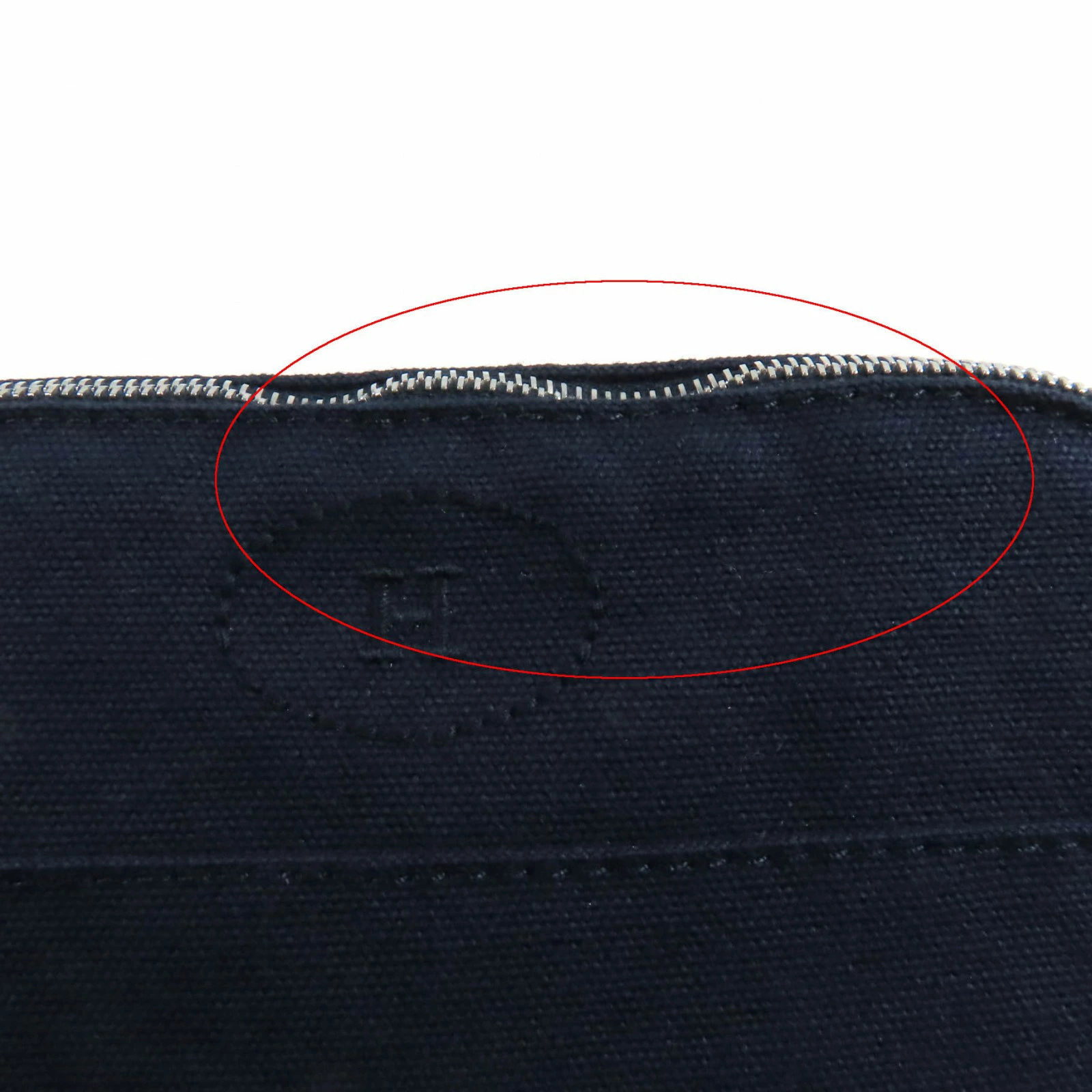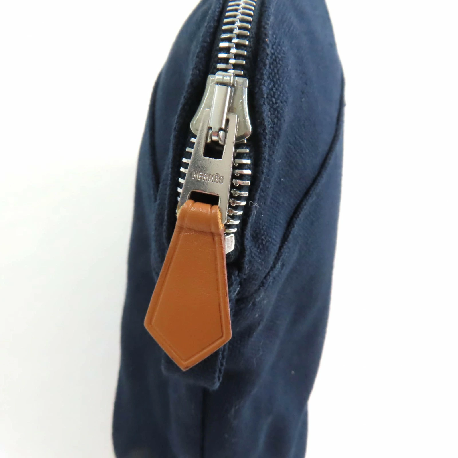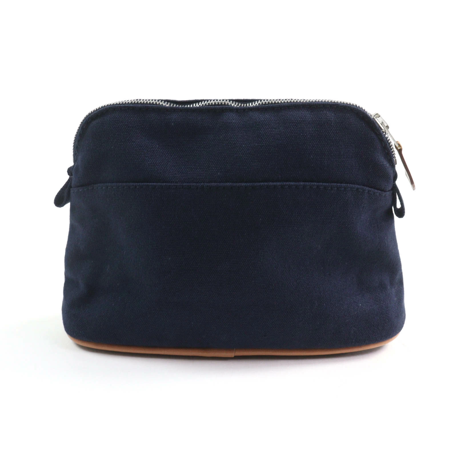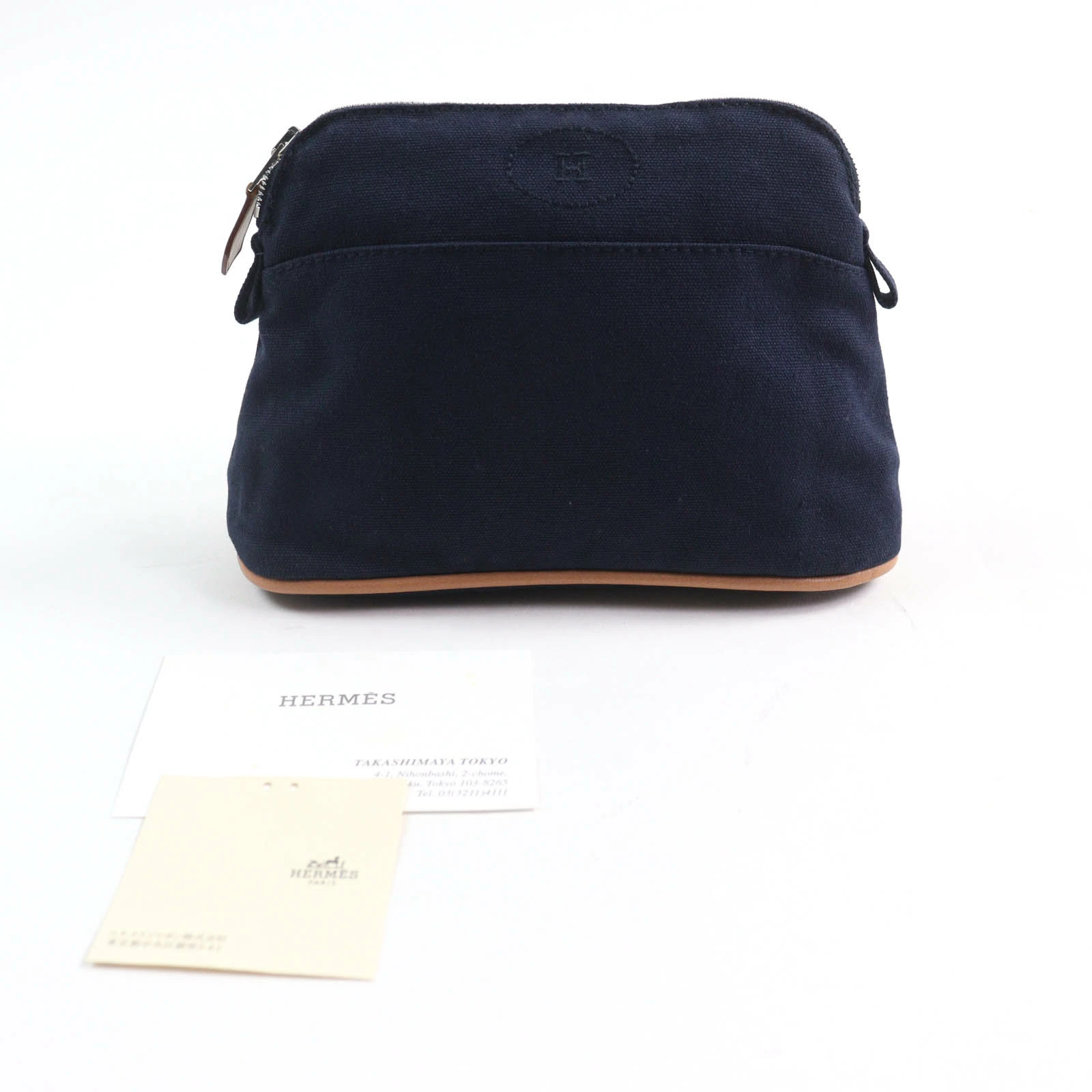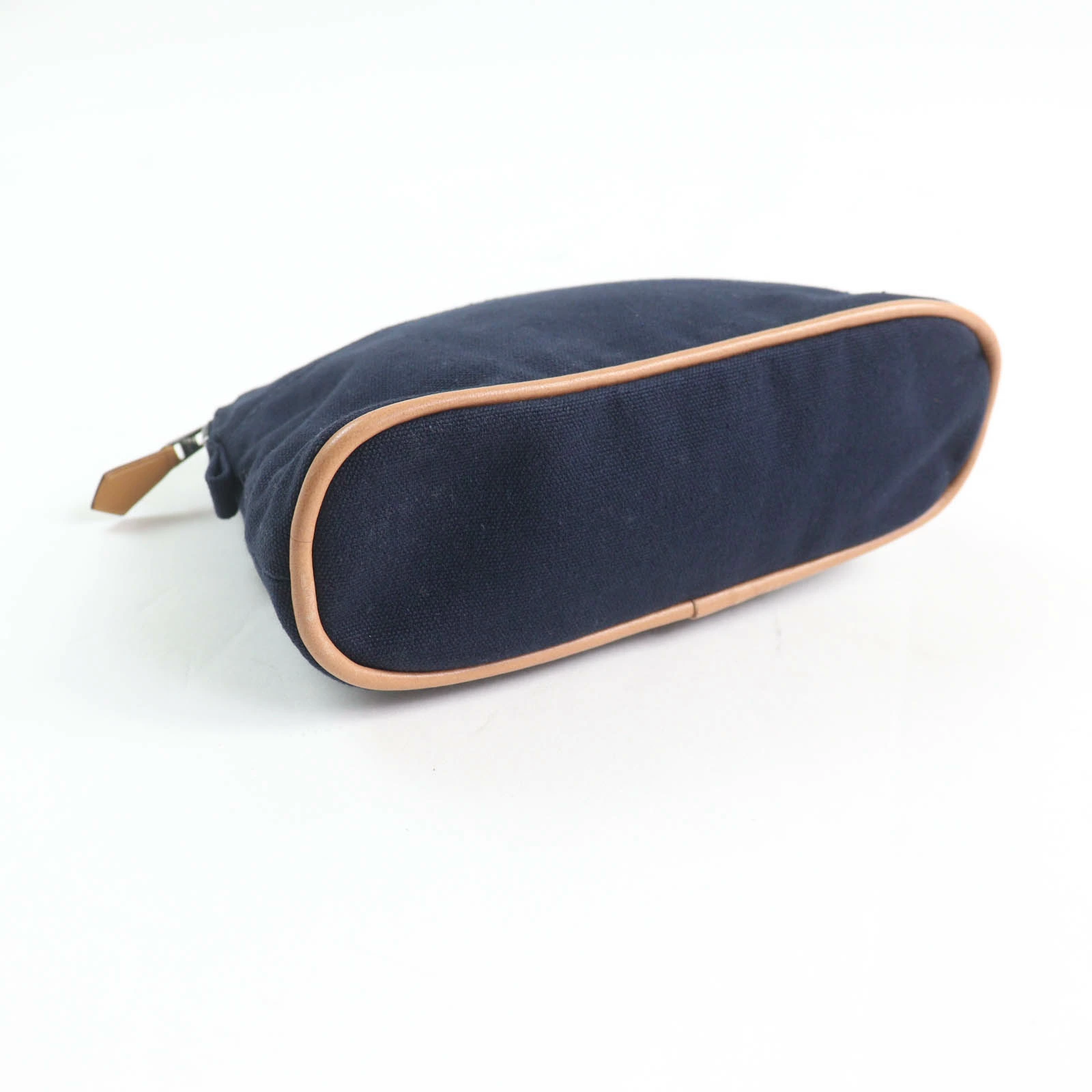 Excellent condition ★ HERMES Bolide Pouch PM with H logo embroidery, navy, made in France, women's [pre-owned]