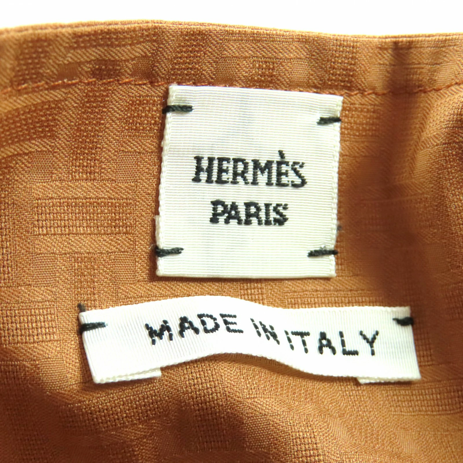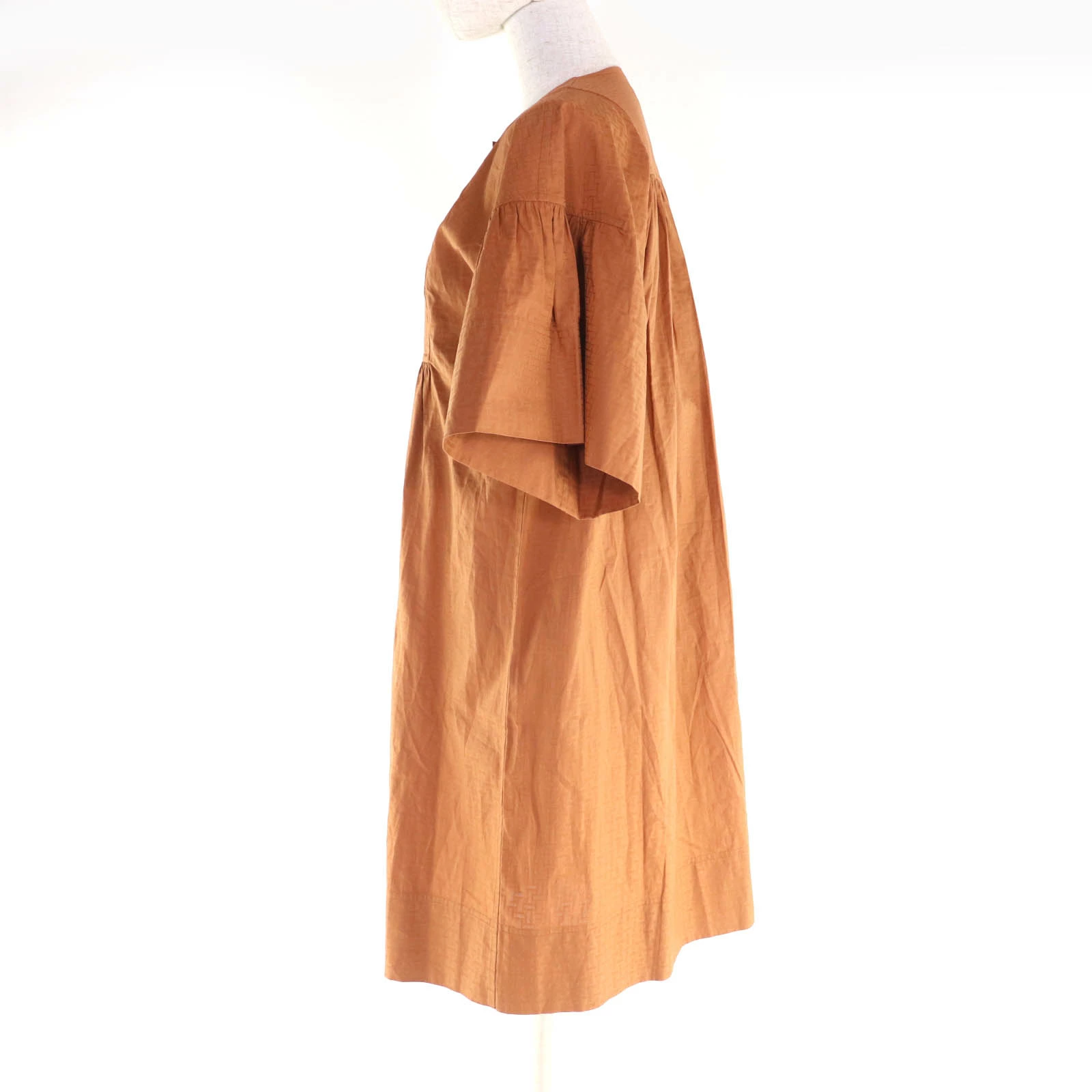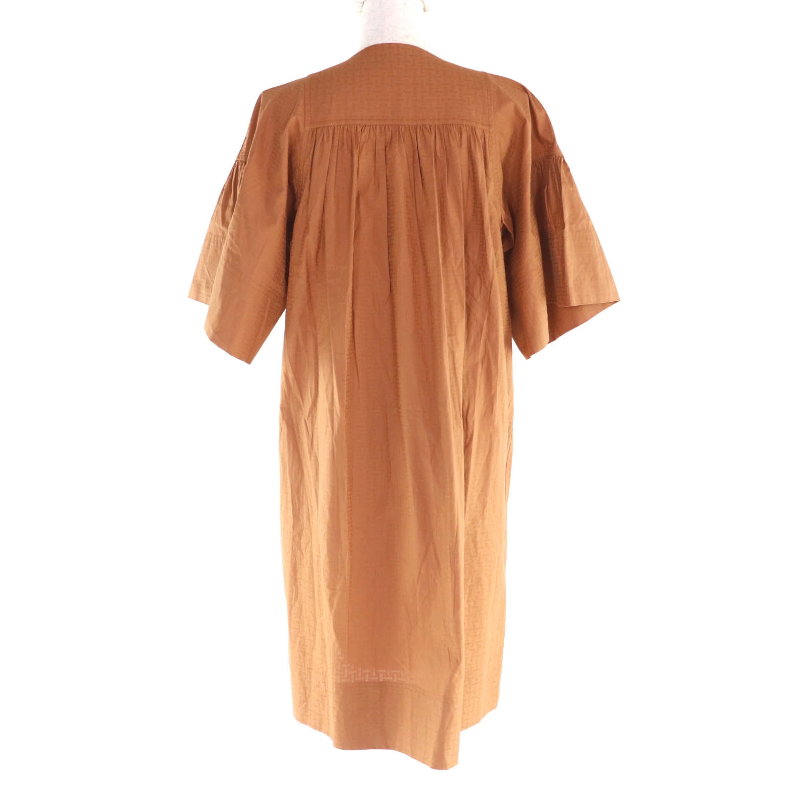 Excellent condition HERMES 5E0570DB Bohemian short dress, gauze mosaic, 100% cotton, crew neck, short sleeves, knee-length, brown, size 36, made in Italy, authentic, women's [pre-owned]