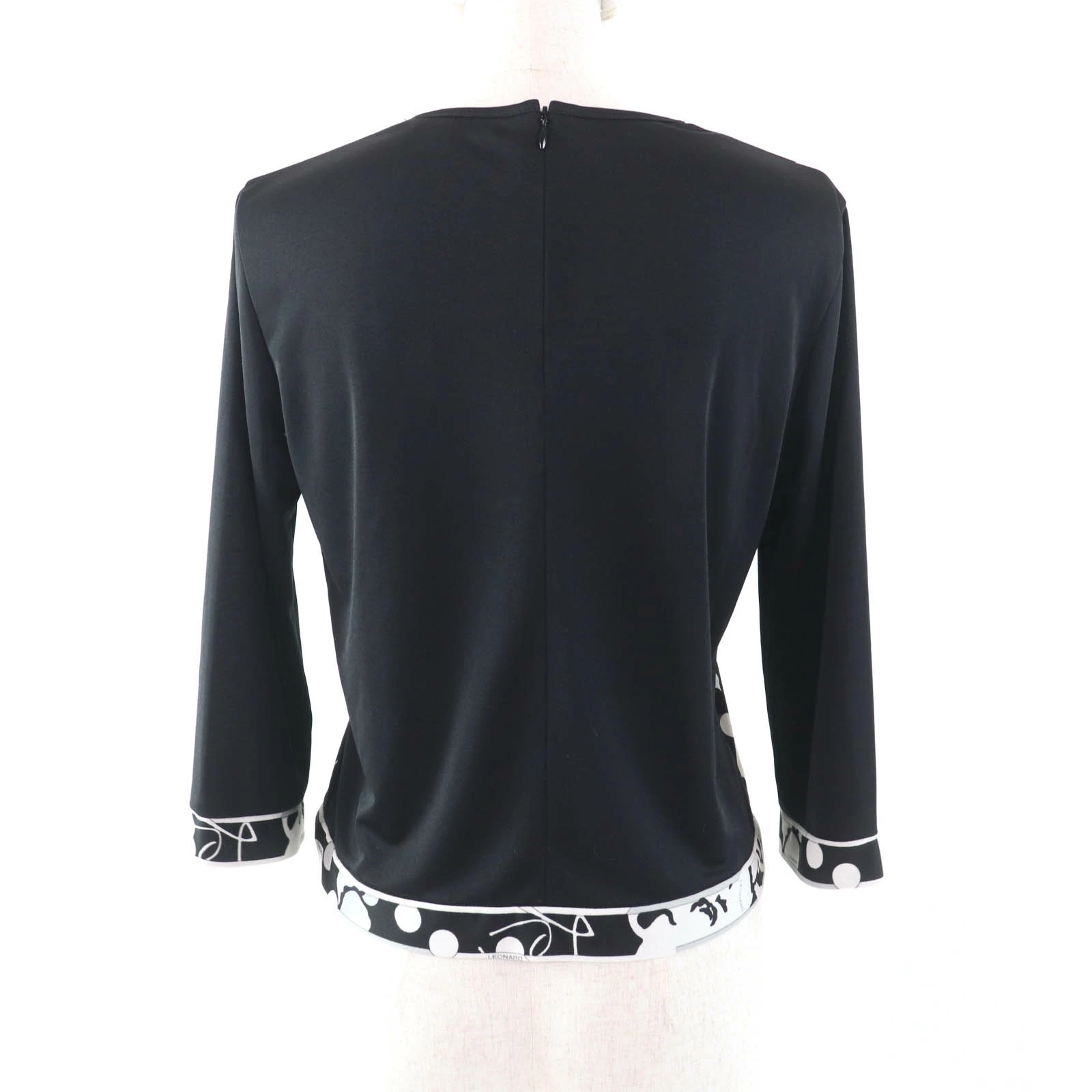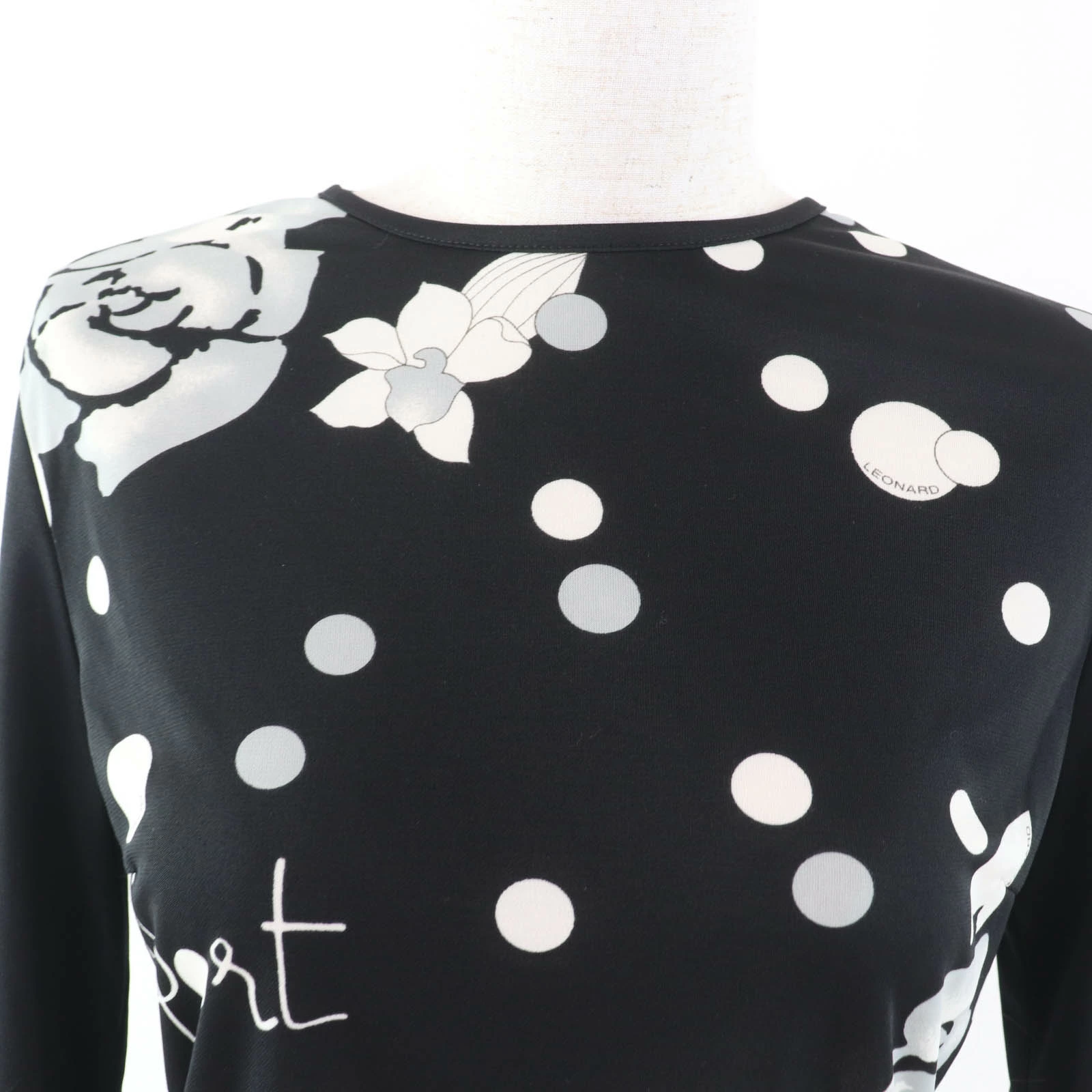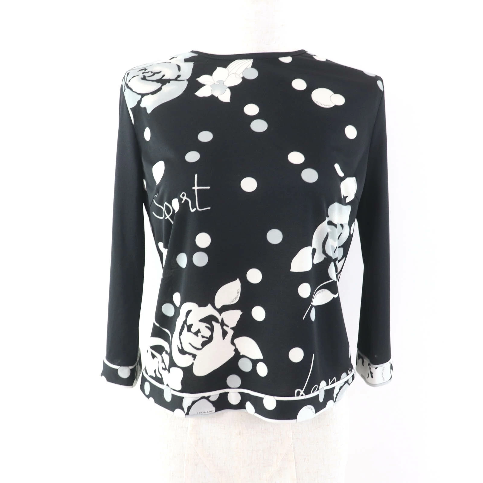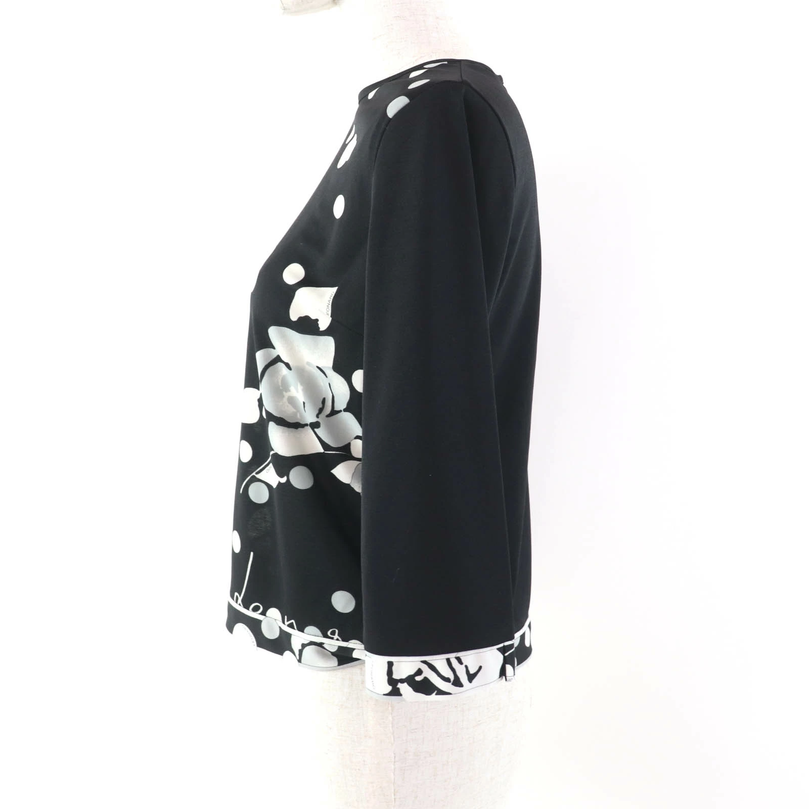 Excellent condition LEONARD SPORT 0568302 floral print crew neck long sleeve top, black, size 38, made in Japan, authentic, women's [pre-owned]