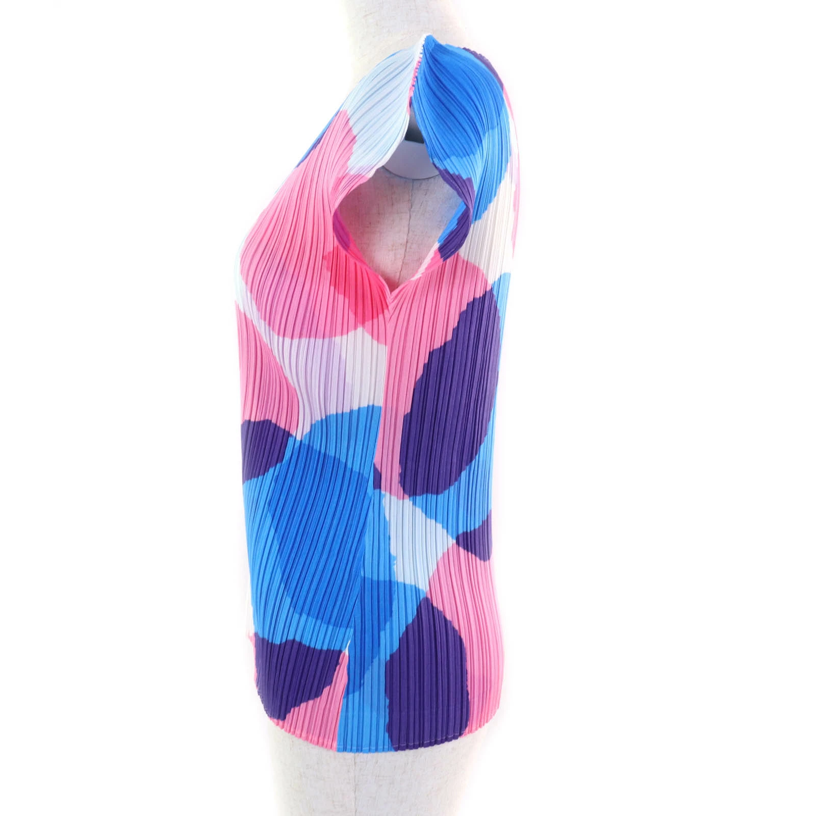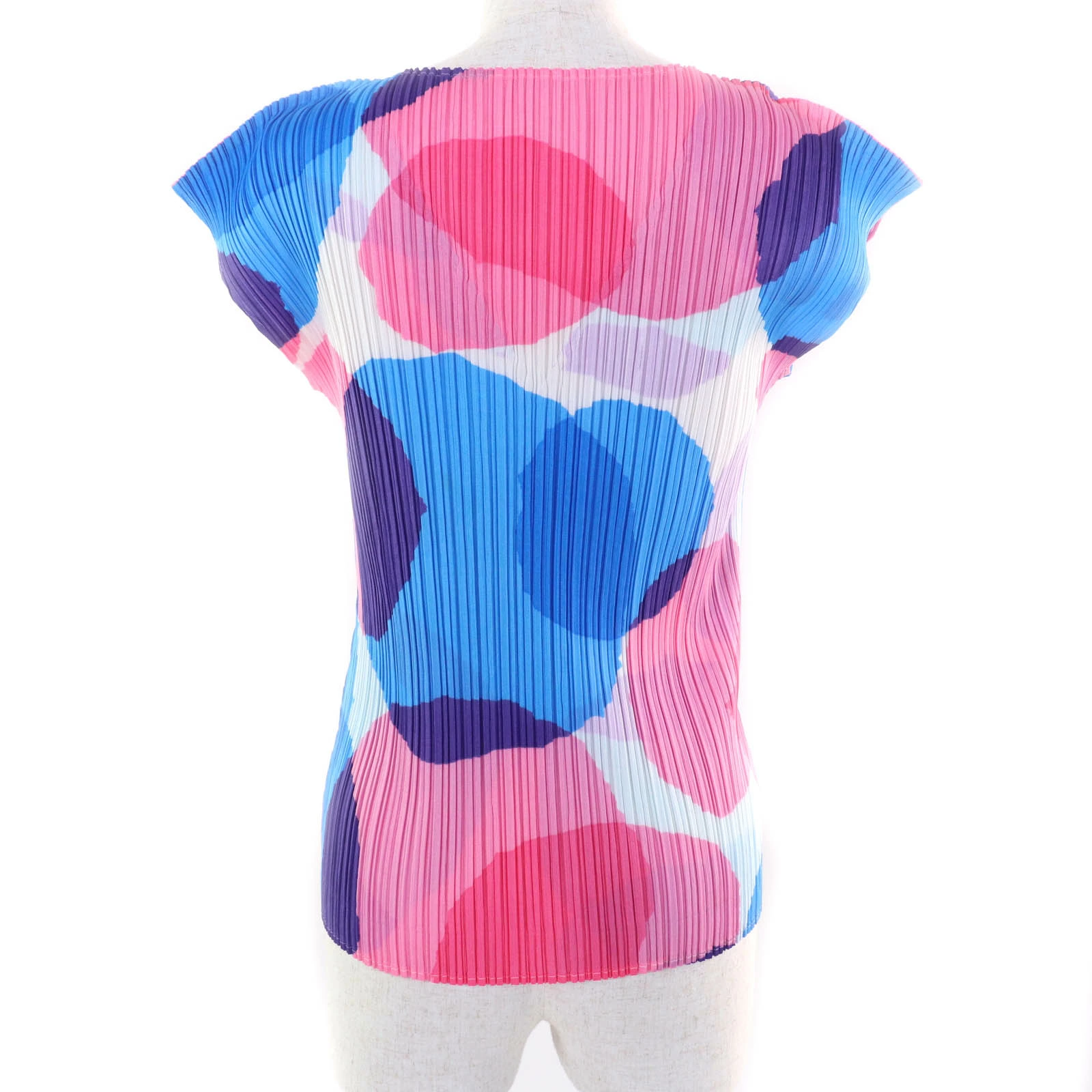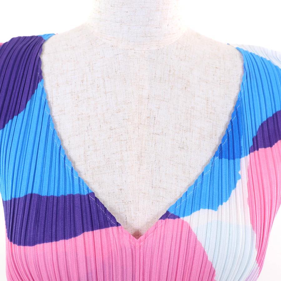 Excellent condition PLEATS PLEASE Issey Miyake PP81-JK712 all-over print V-neck short-sleeve top, multicolor, size 3, made in Japan, authentic, women's [pre-owned]