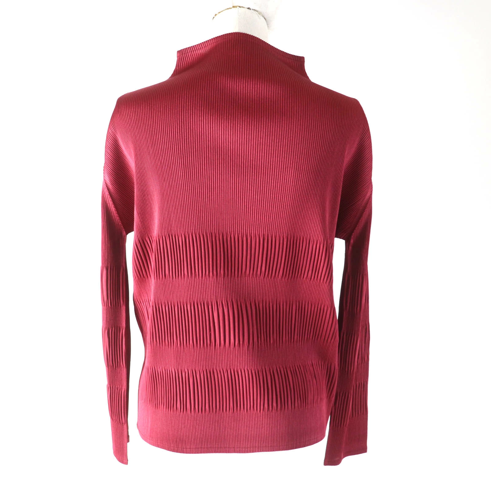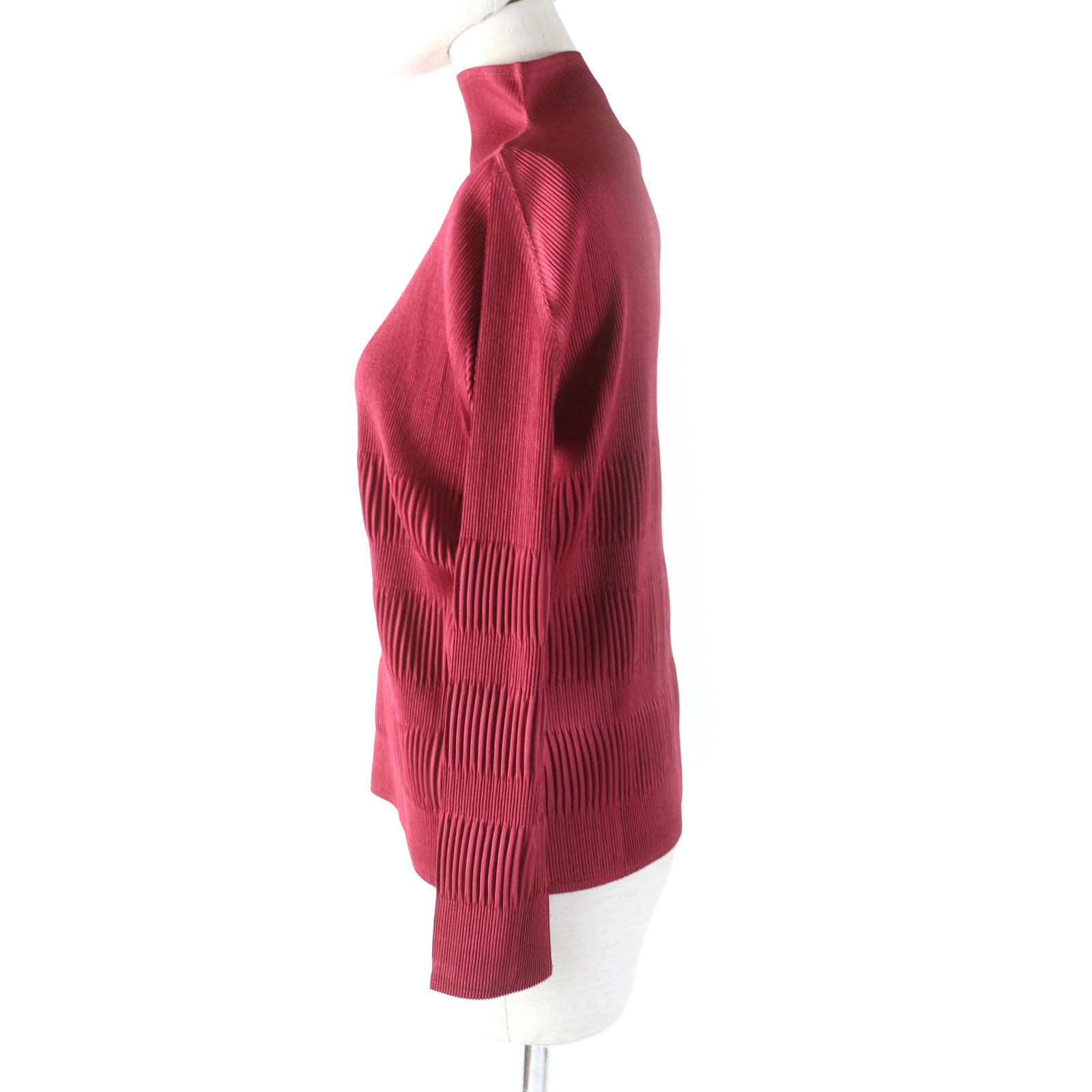 Excellent condition PLEATS PLEASE Issey Miyake PP93-FK884 mock neck long sleeve top, Bordeaux, size 3, made in Japan, authentic, women's [pre-owned]