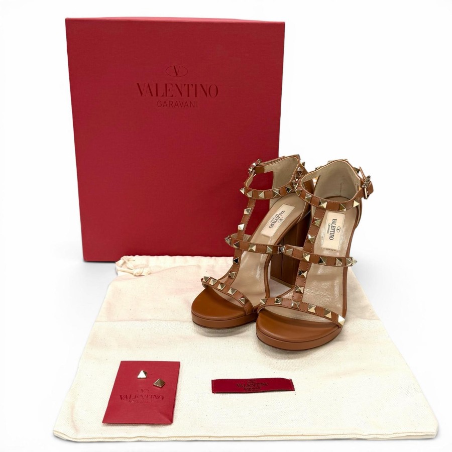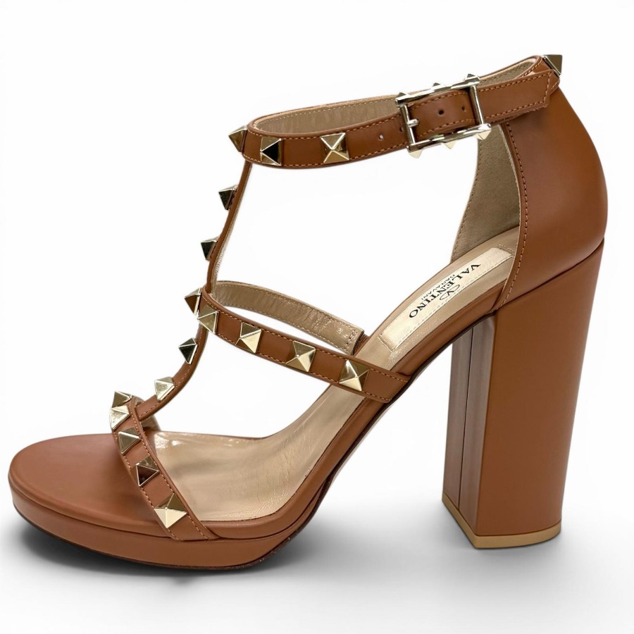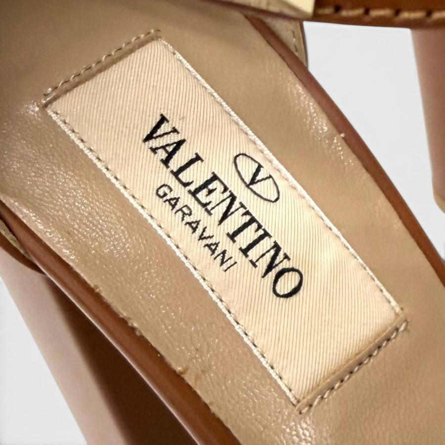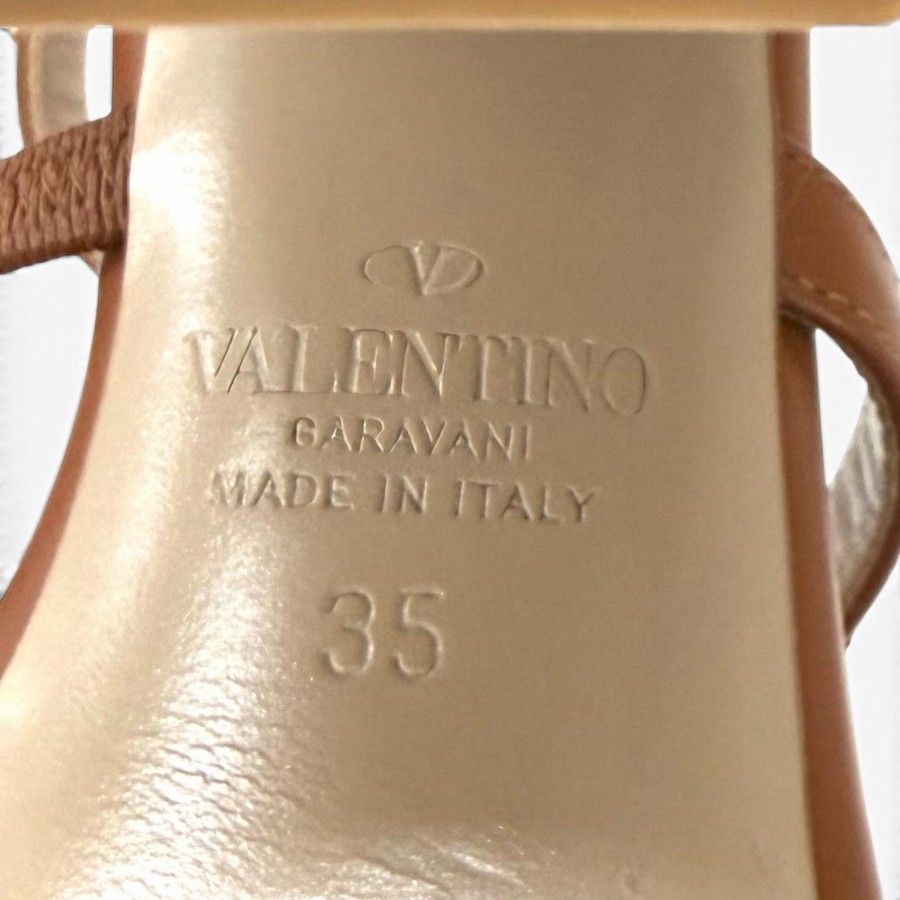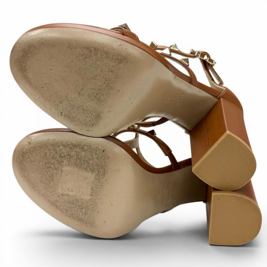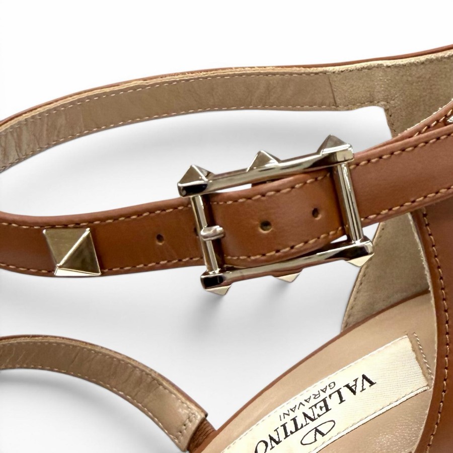 Excellent condition ★ Valentino Garavani TW2S0T65 Rockstud strap leather sandals, brown with gold hardware, size 35, made in Italy, women's, with box and dust bag. [Pre-owned]