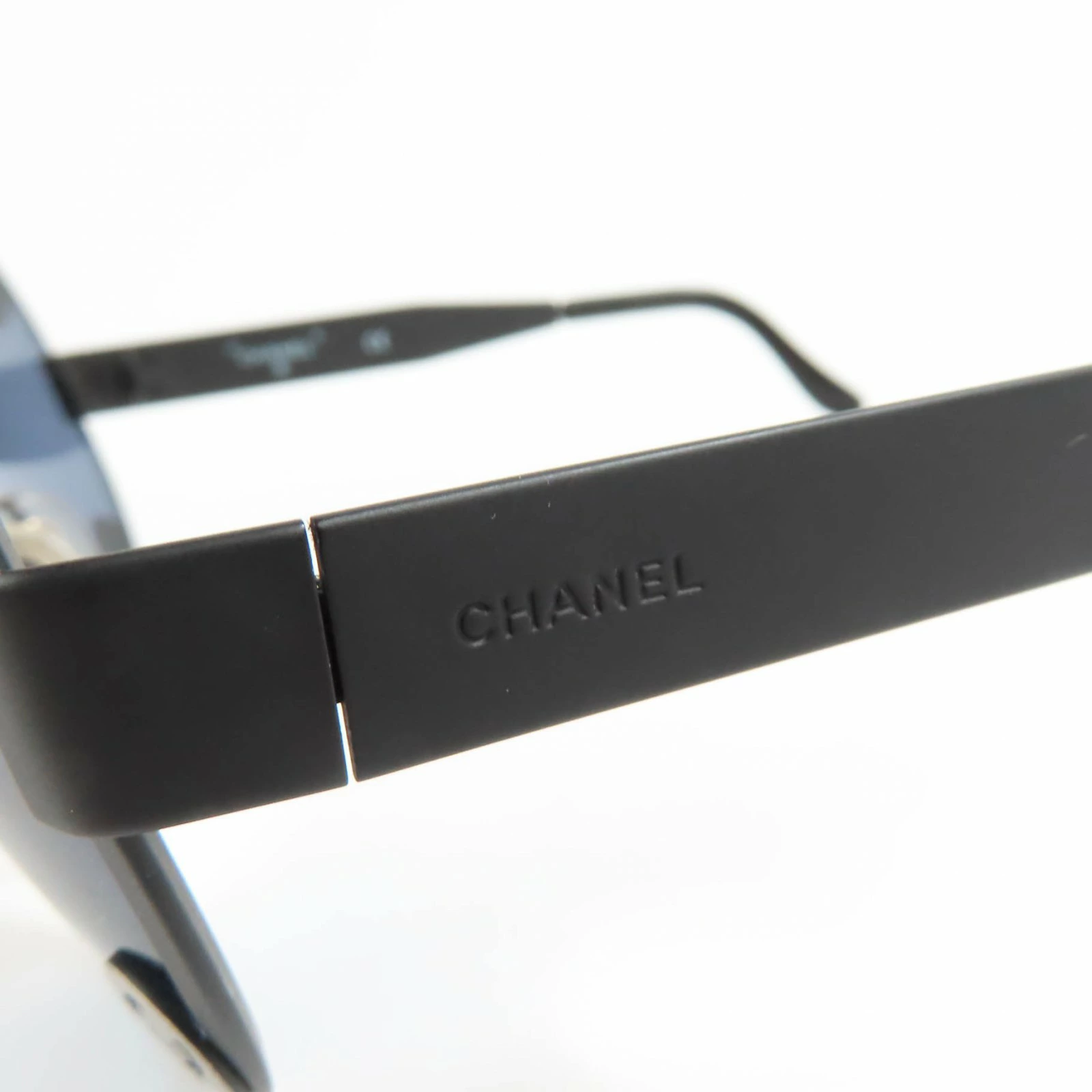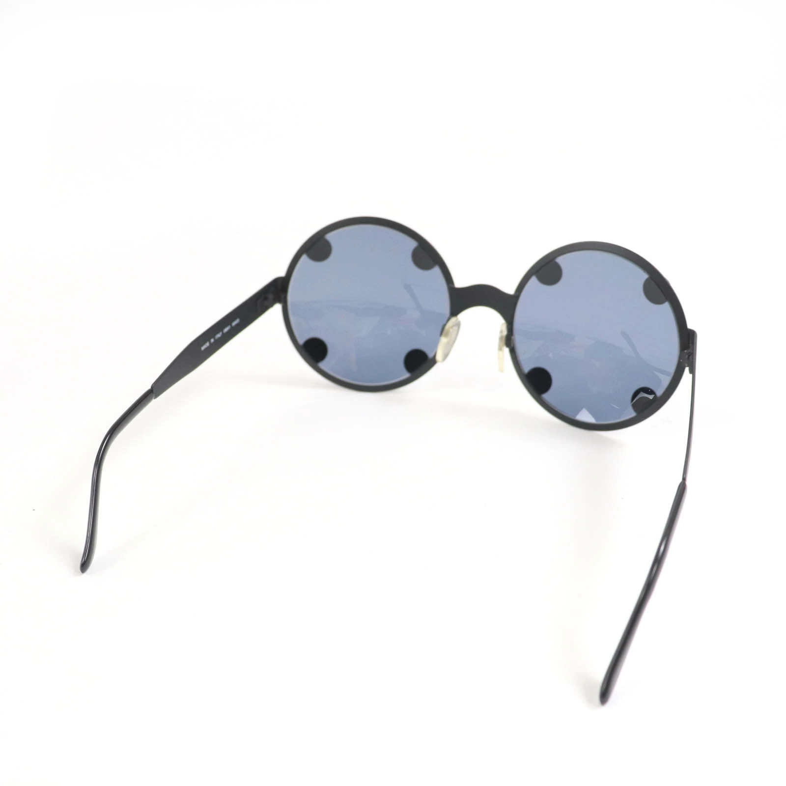 Excellent condition CHANEL Vintage 08841 Coco Mark Round Sunglasses, Matte Black, with Case, Made in Italy, Women's [Pre-owned]