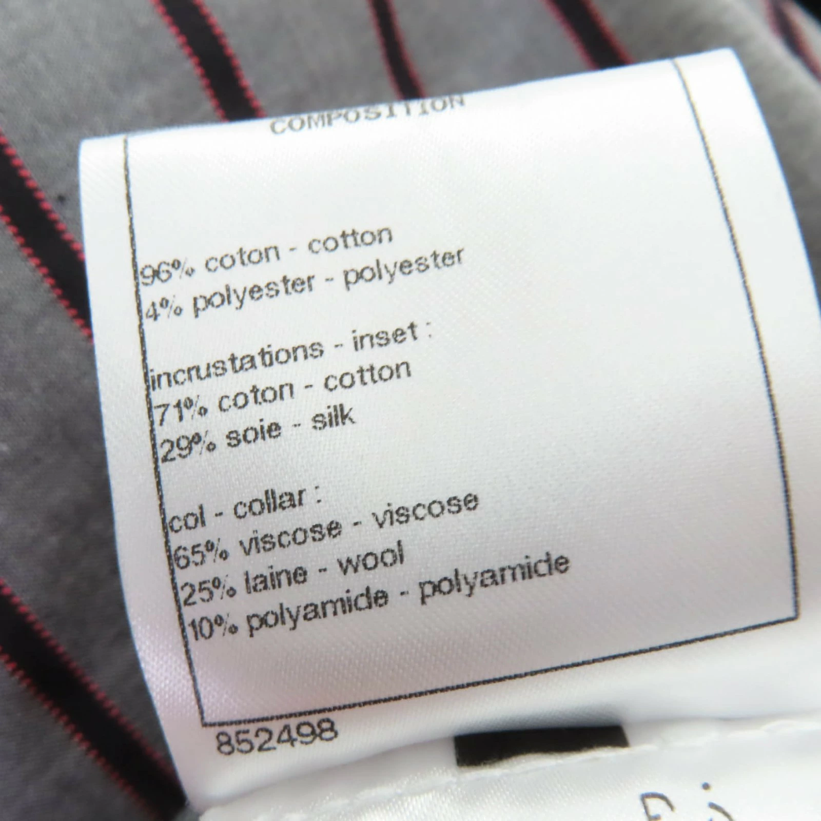 | 素材 (material) | 本体:コットン96% :ポリエステル4% 一部:コットン71% :シルク29% :ビスコース65% :レーヨン25% :ポリアミド10% | ||||||||||||||||