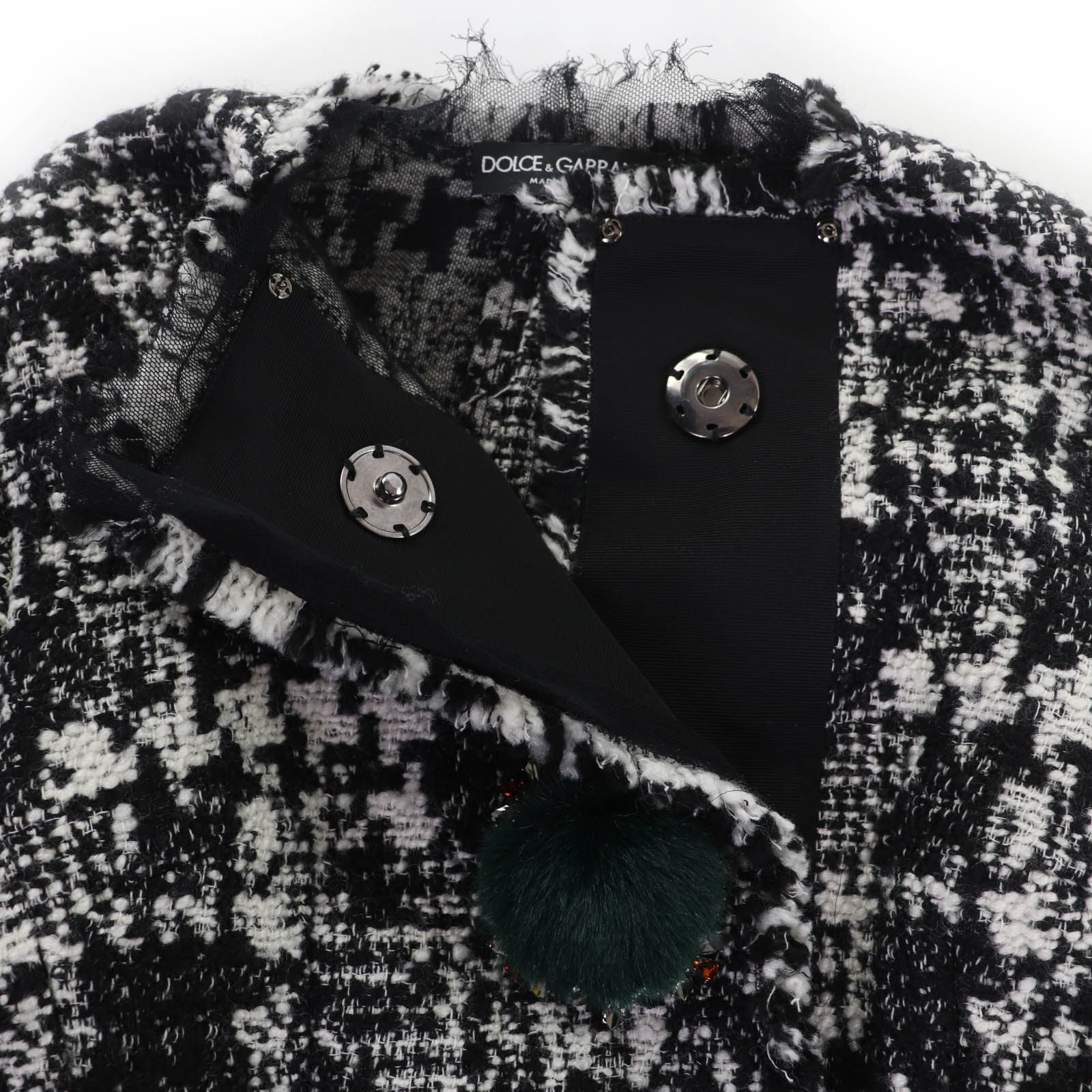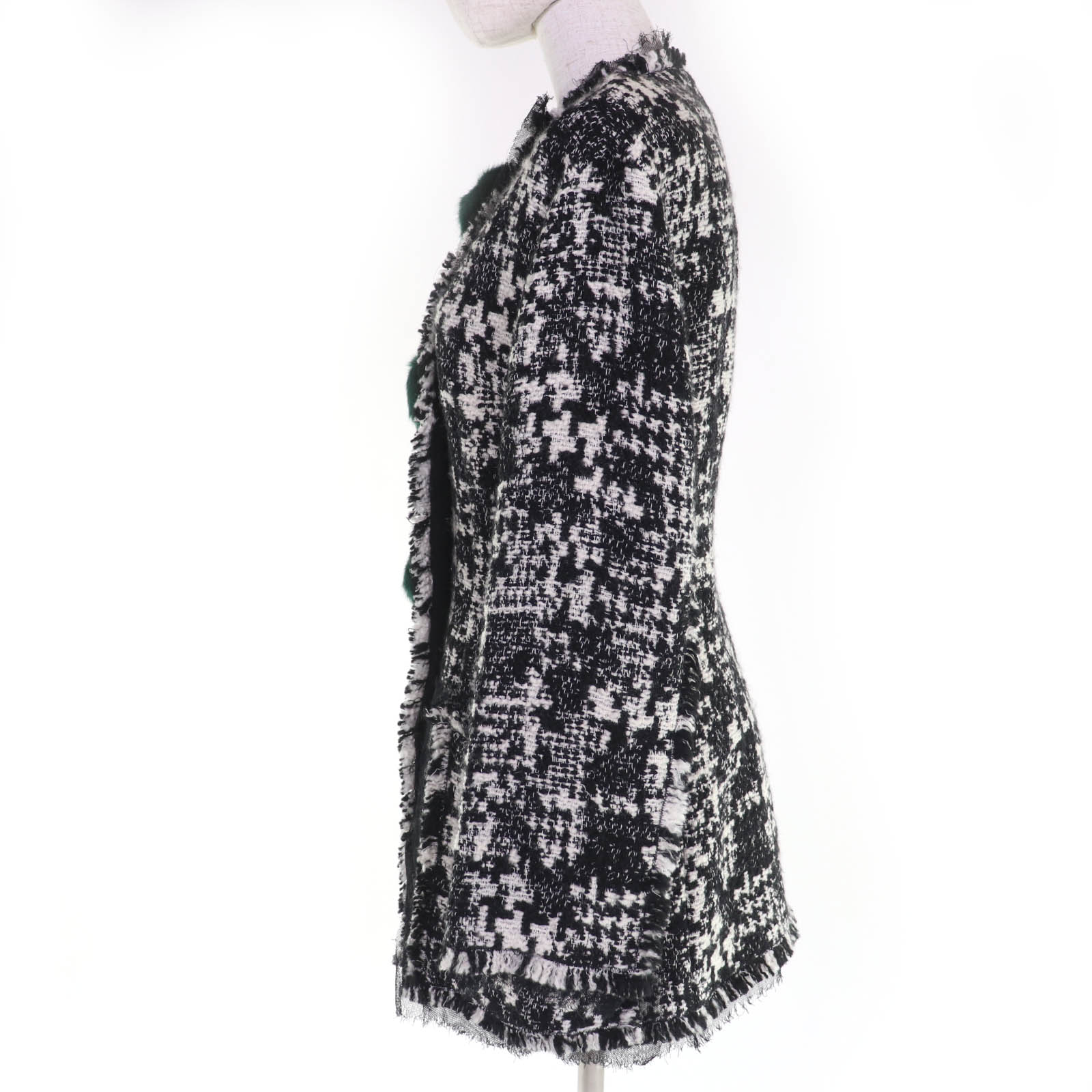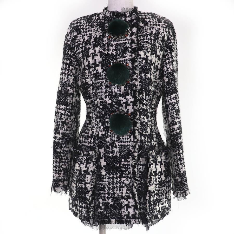 Excellent condition DOLCE & GABBANA F28JNZ bejeweled collarless tweed coat, black, size 38, made in Italy, authentic, women's [pre-owned]