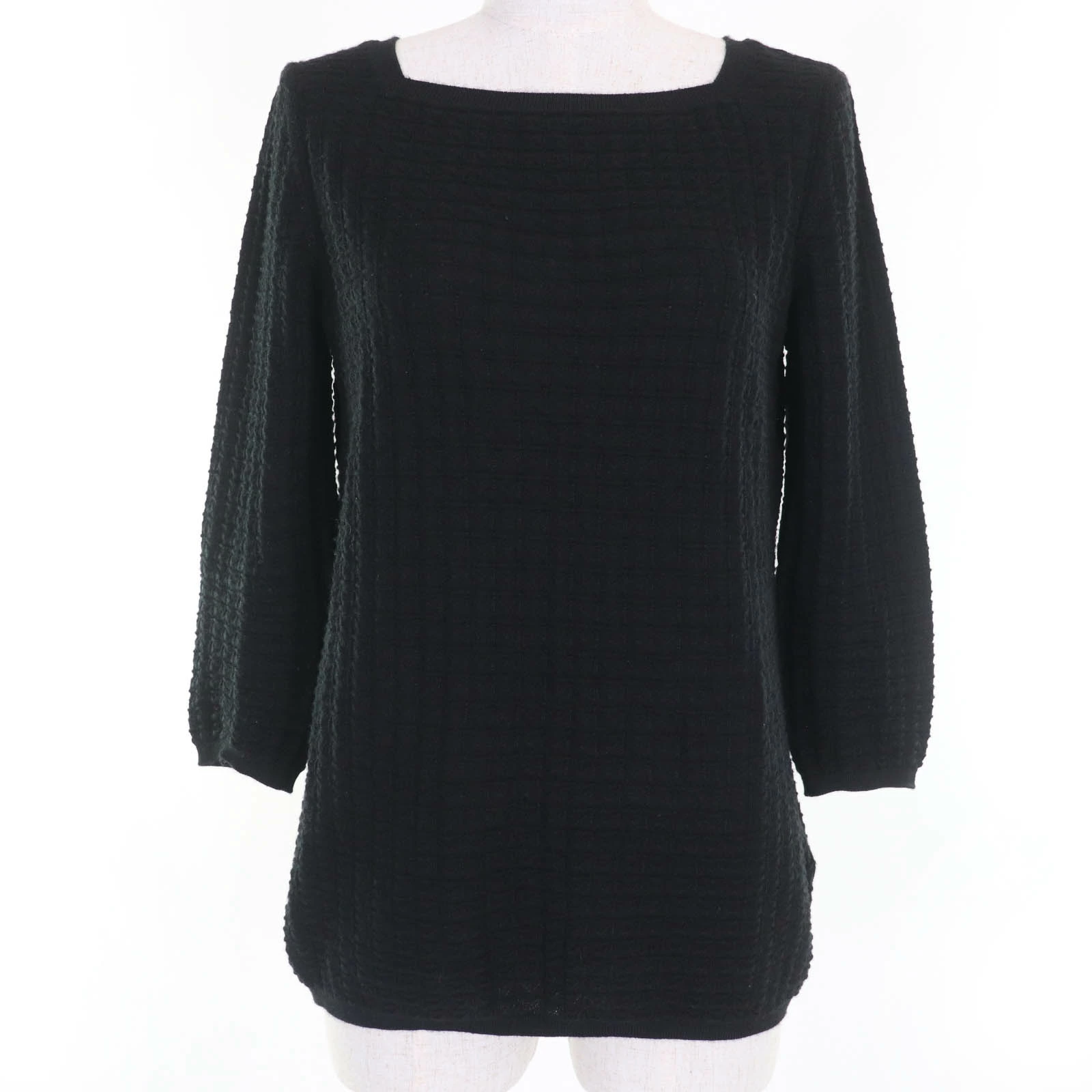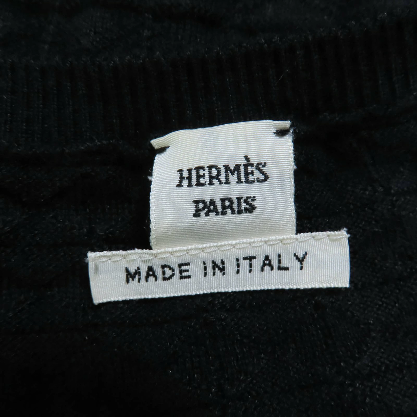 Excellent condition HERMES cashmere and silk 3/4-sleeve knit sweater, black, size 38, made in Italy, authentic, women's [pre-owned]