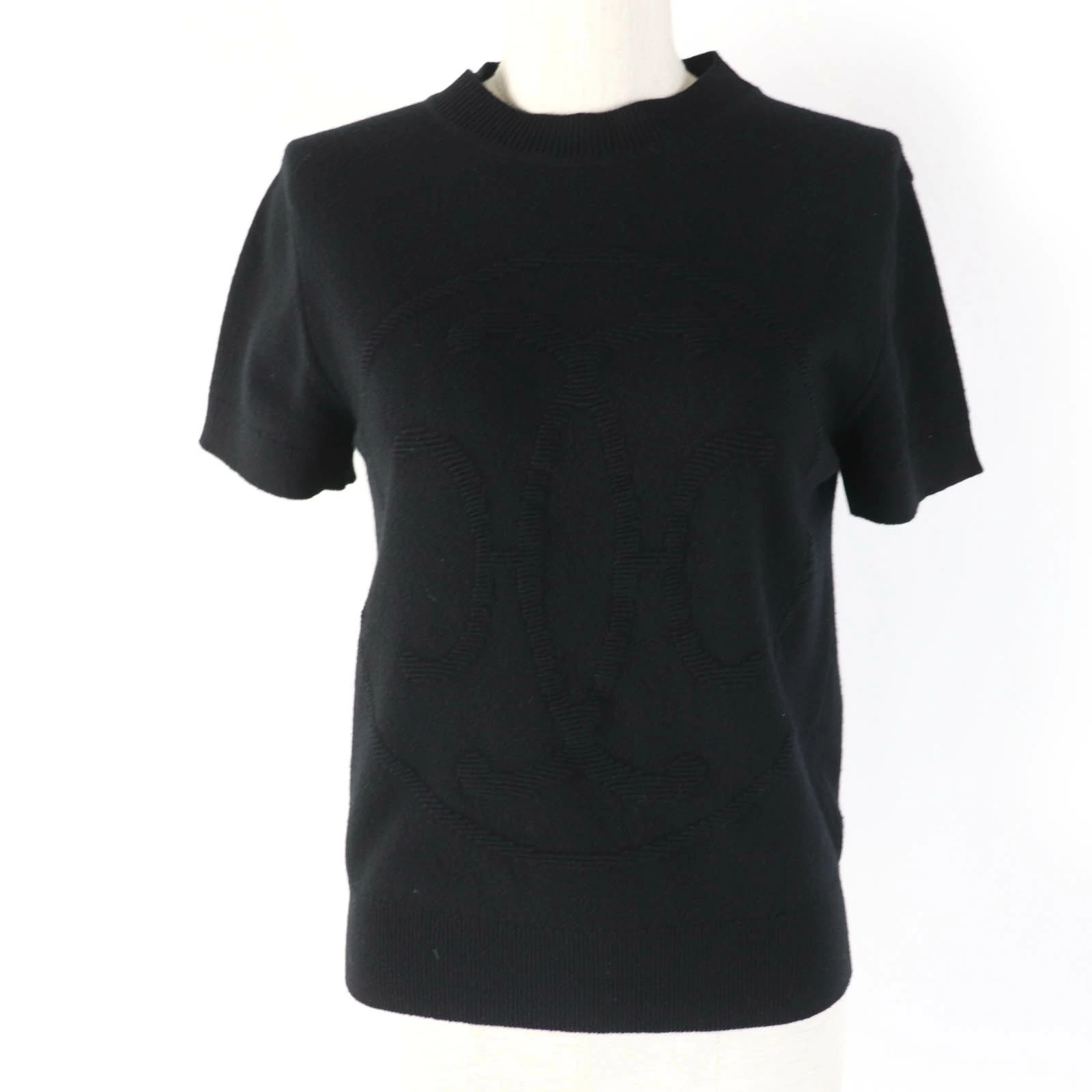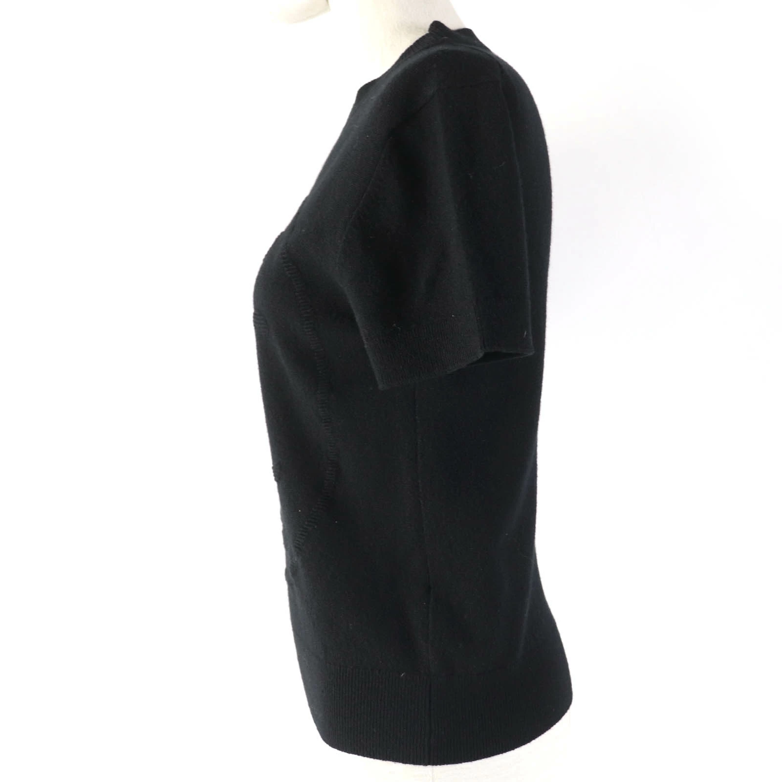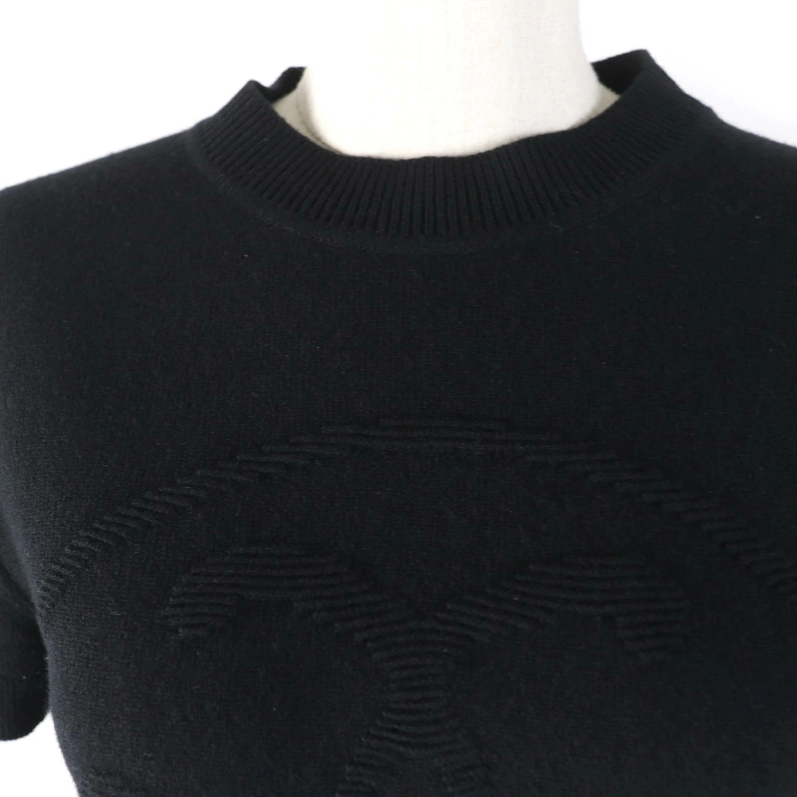 Excellent condition HERMES 2022AW 2H2663D1 100% Cashmere H-Lift Short Sleeve Knit, Black, Size 36, Made in England, Authentic, Women's [Pre-owned]