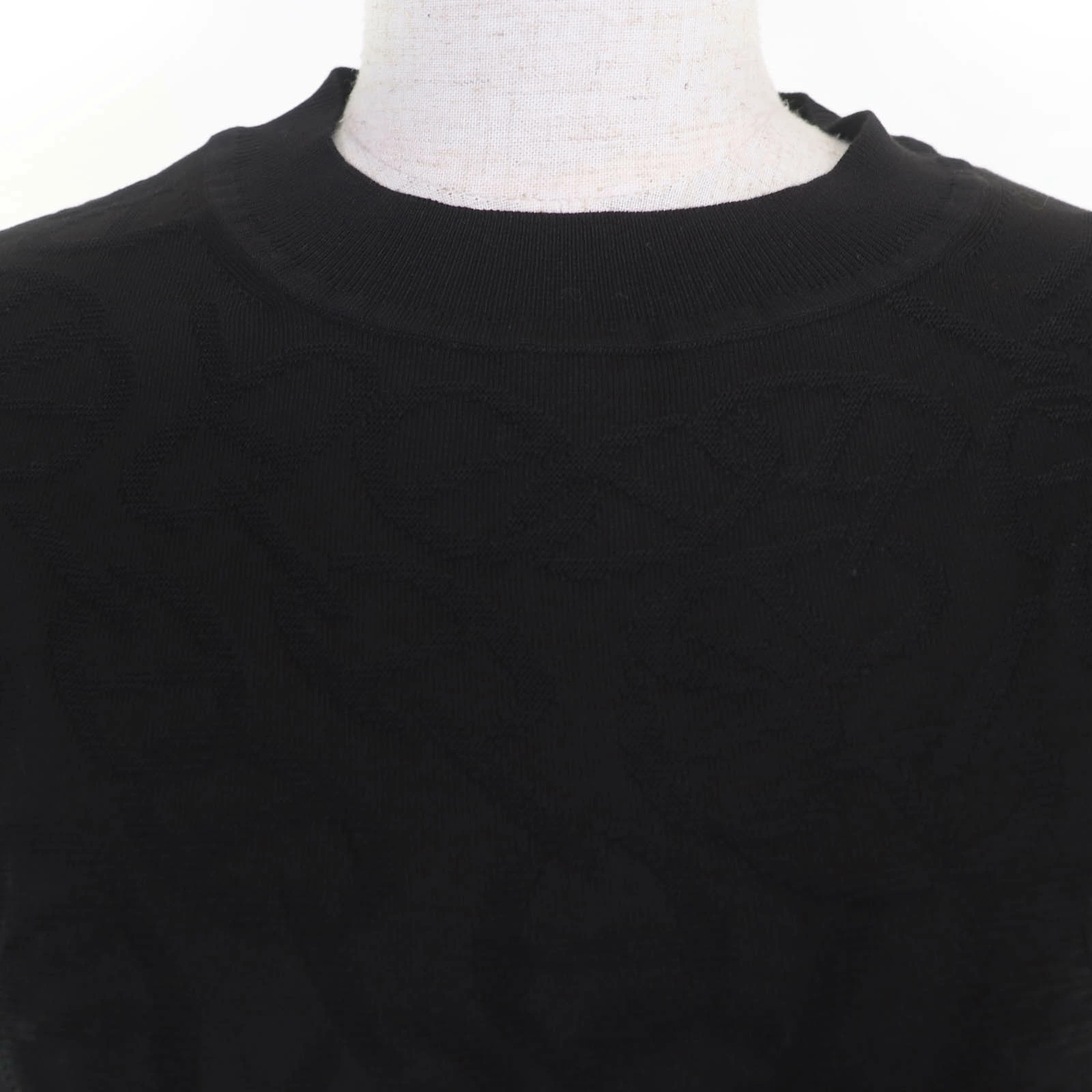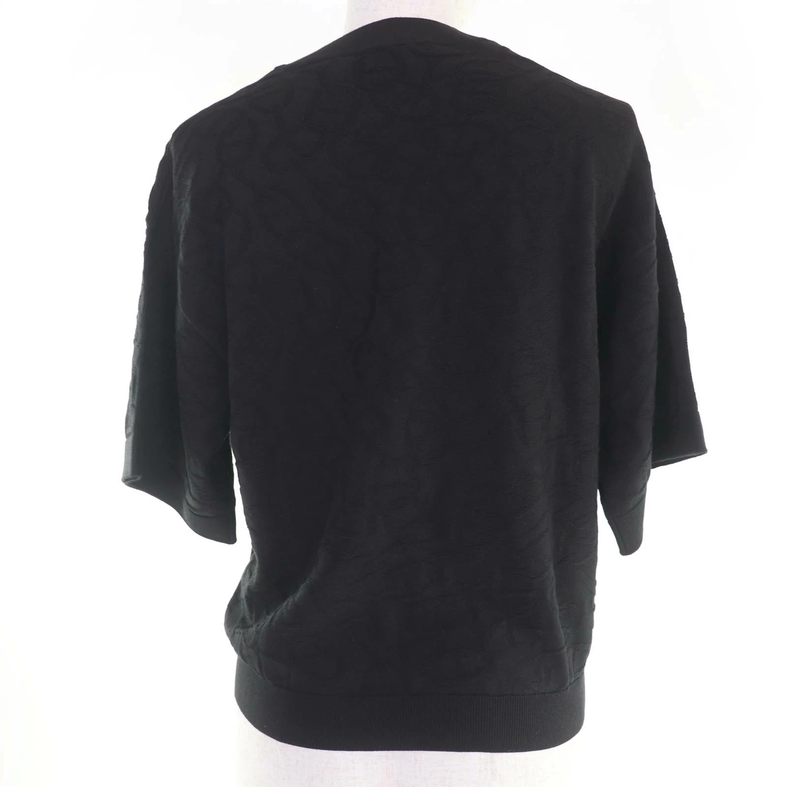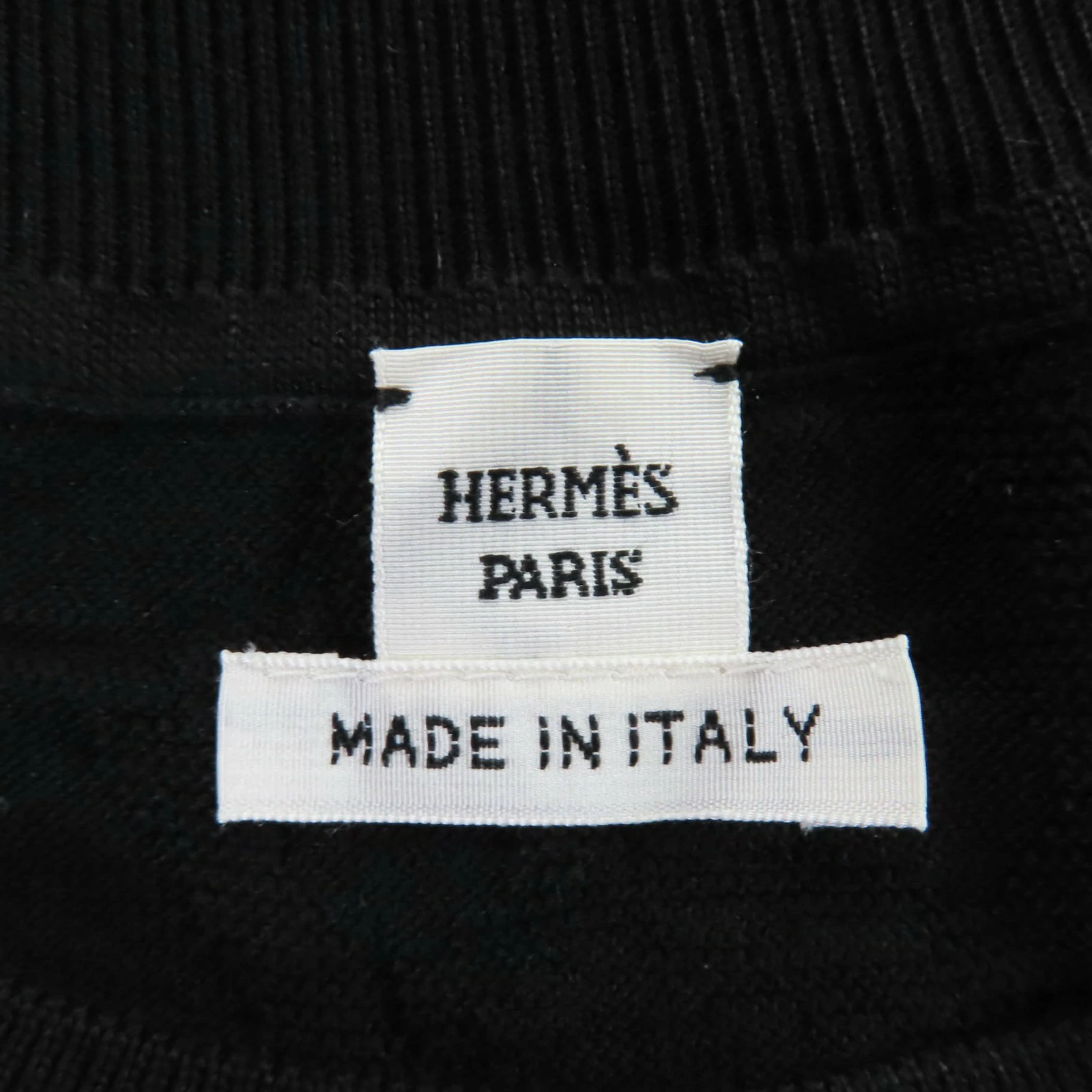 Excellent condition HERMES 24SS 4E2649DC Silk and Cotton Naoussa Chaine Short Sleeve Knit, Black, Size 36, Made in Italy, Women's [Pre-owned]