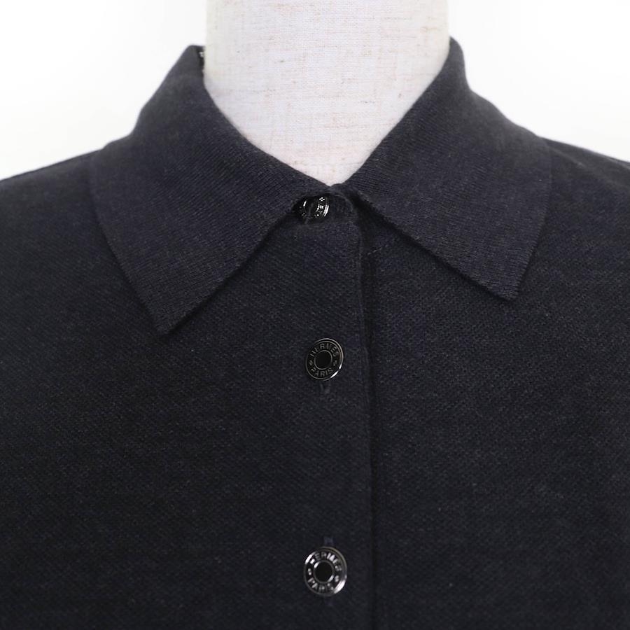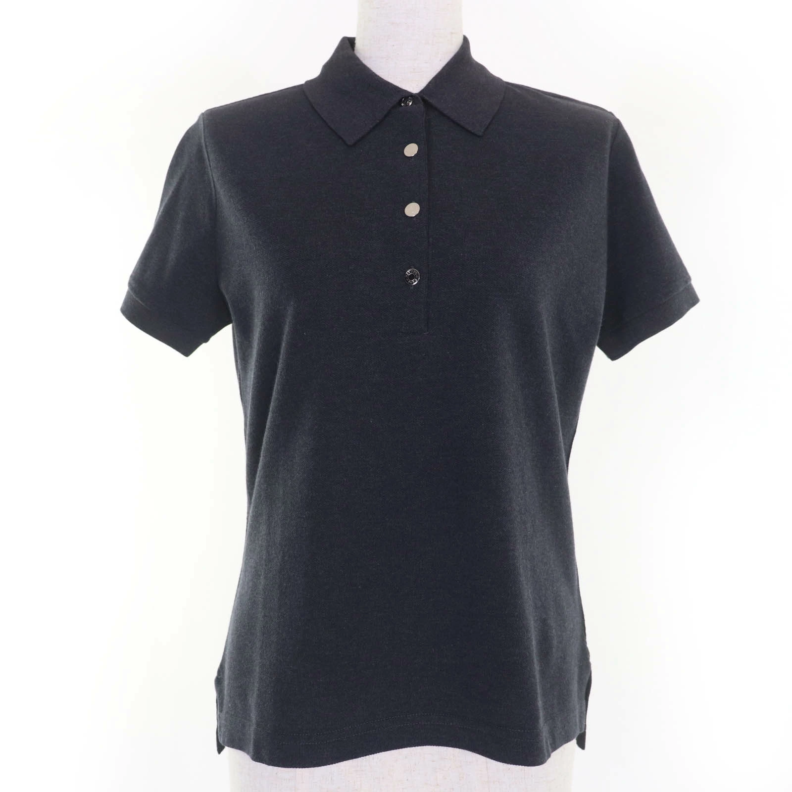 Excellent condition HERMES SELLIER 100% cotton short-sleeved polo shirt with Sellier buttons, charcoal gray, size M, made in Italy, authentic, women's [pre-owned]