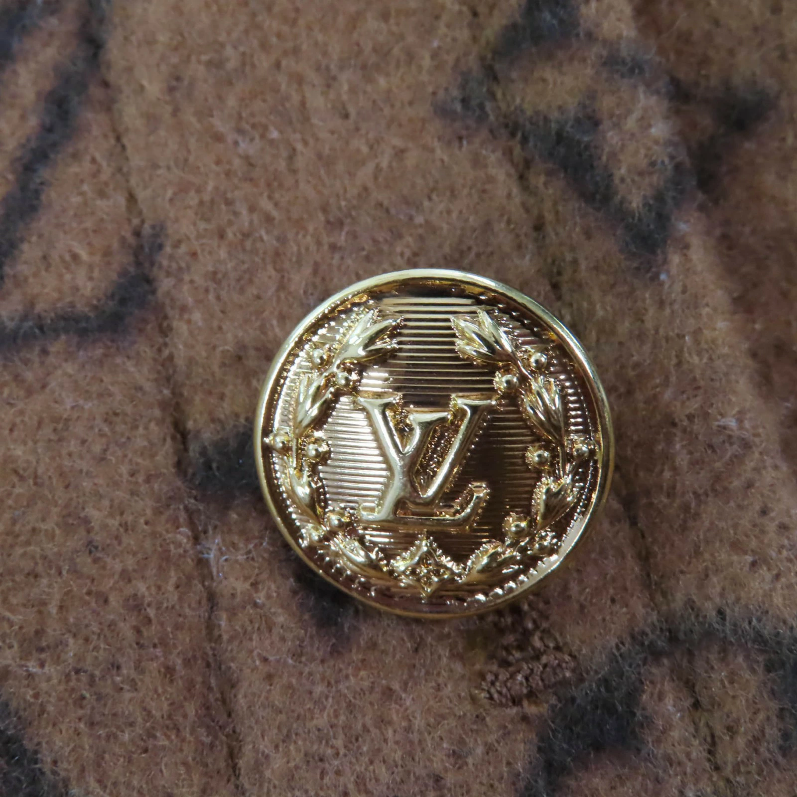 Excellent condition LOUIS VUITTON 2022 Spring/Summer wool and silk Monogram LV gold button trapezoid mini skirt, brown, size 40, with box, made in Italy, authentic, women's [pre-owned]