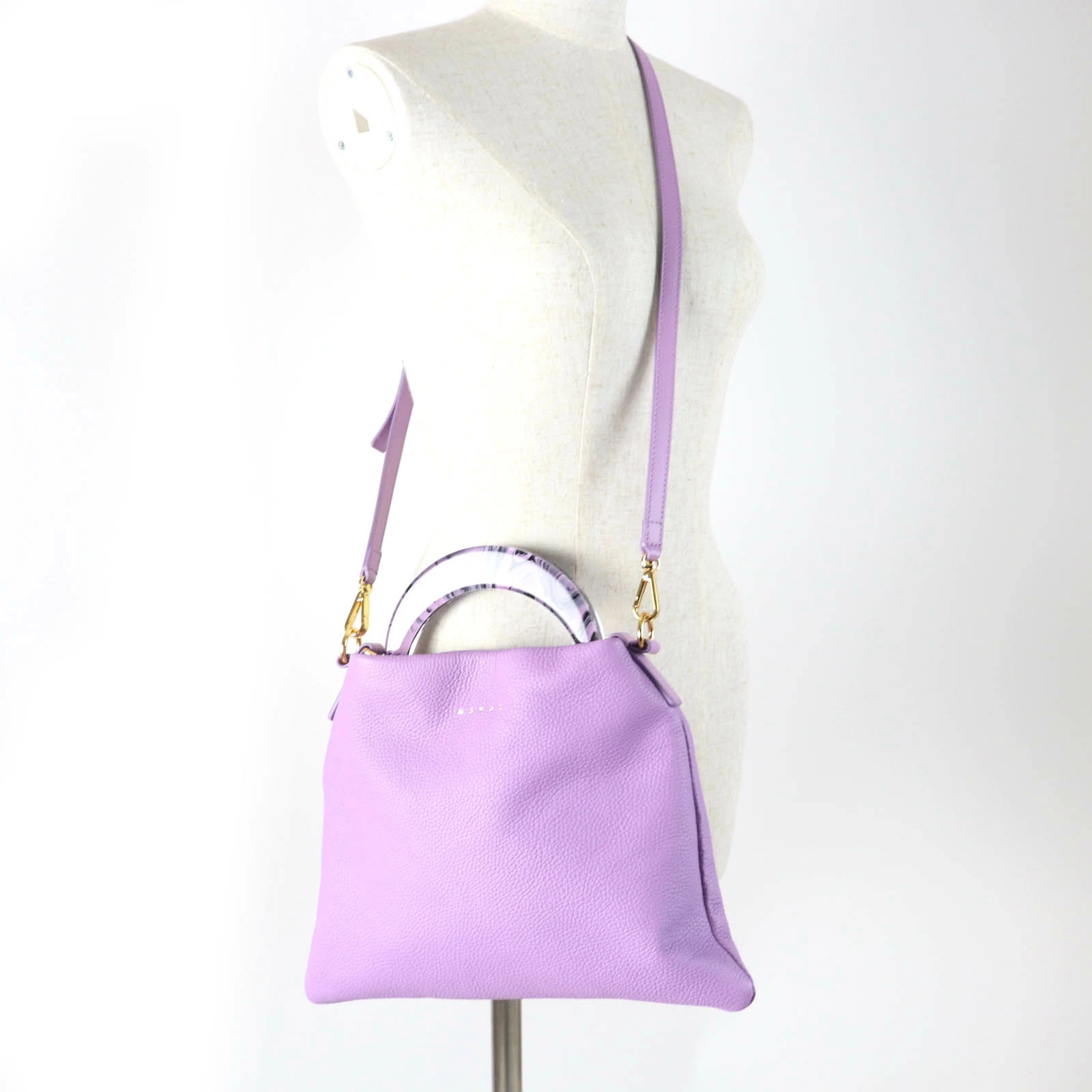 Excellent condition MARNI Venice small bag, 2024, top handle, leather, 2-way handbag/shoulder bag, purple, dust bag included, made in Italy, women's [pre-owned]