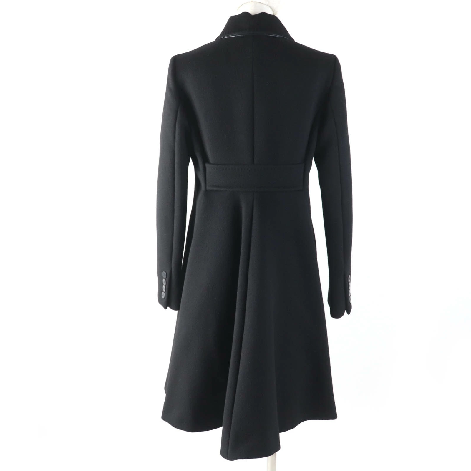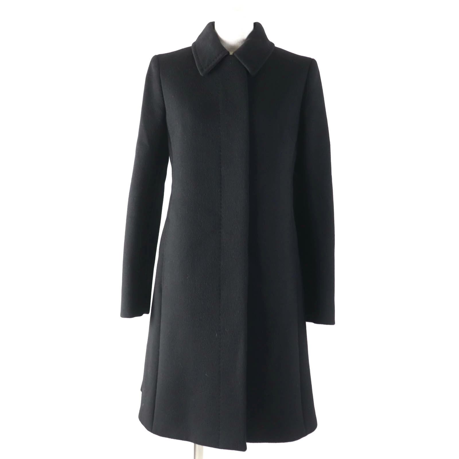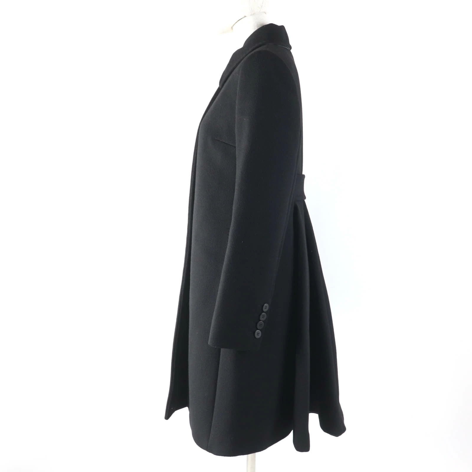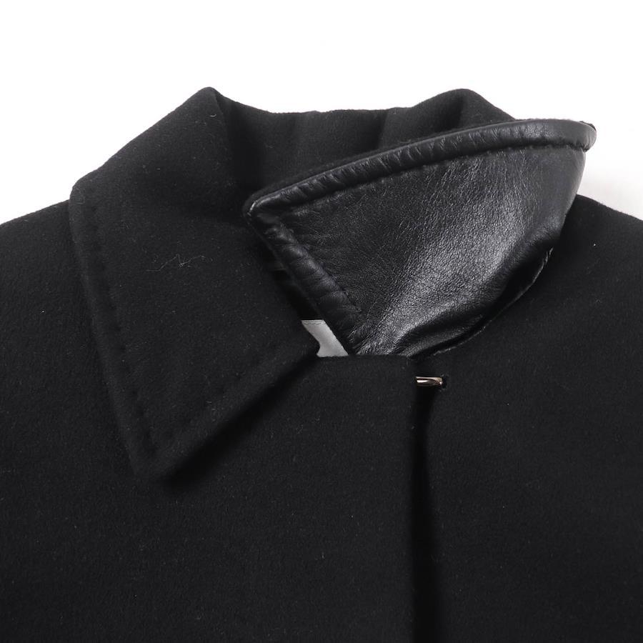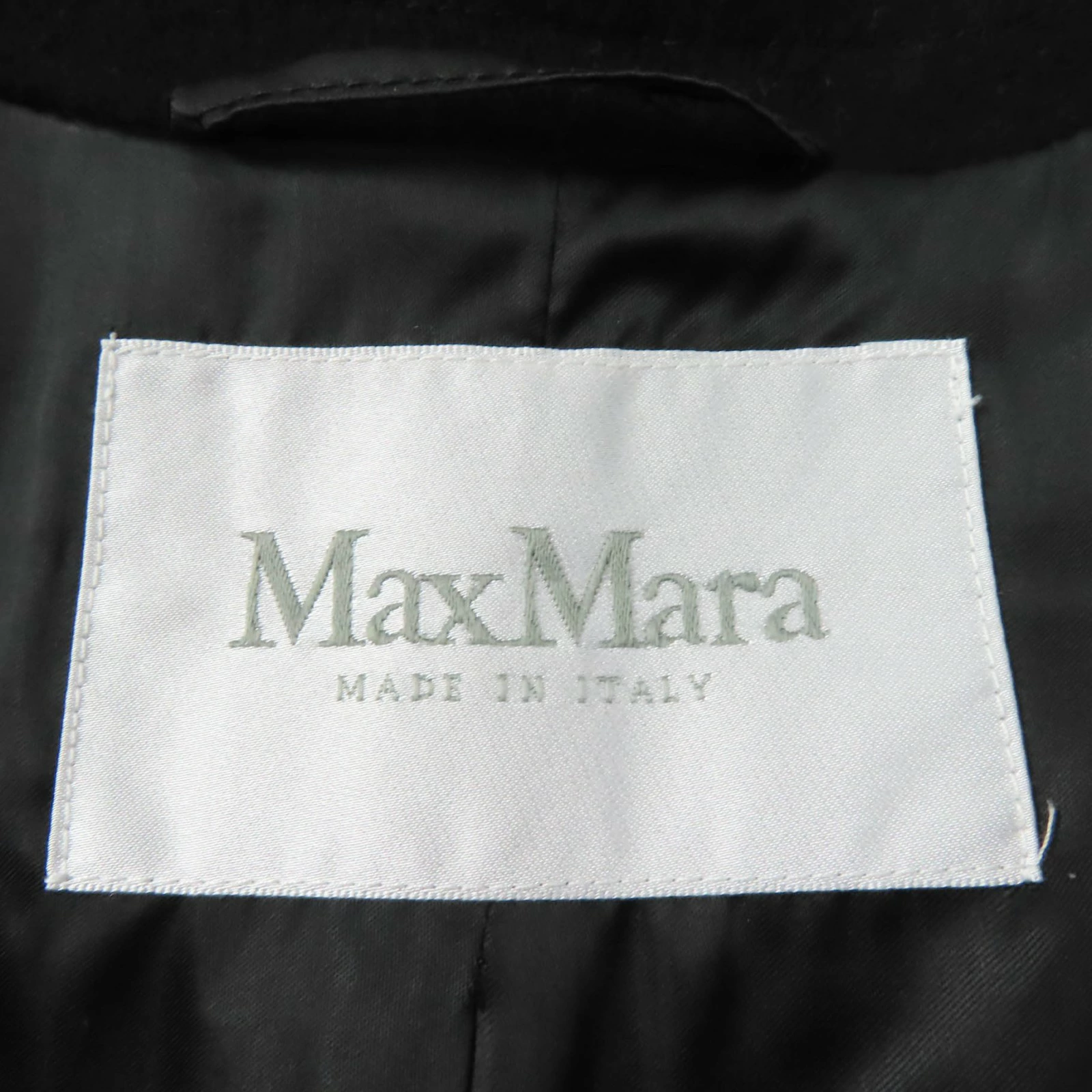 Excellent condition Max Mara virgin wool and cashmere coat with white tag and leather accents, black, size 40, made in Italy, authentic Japanese product, pre-owned.