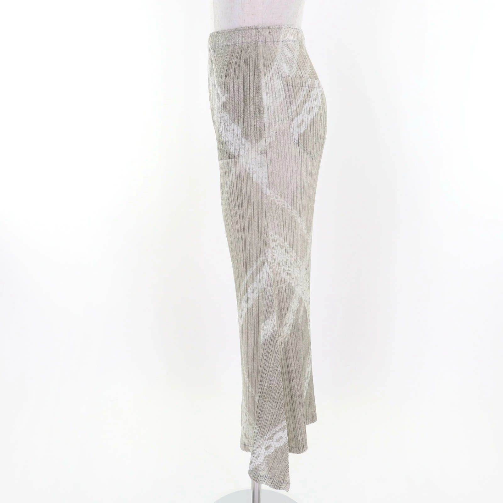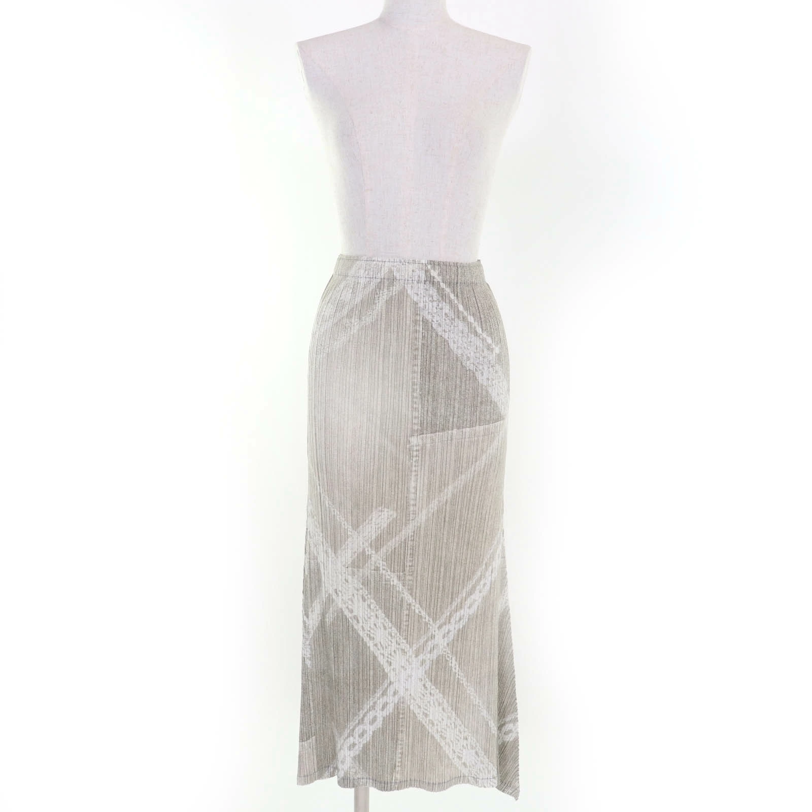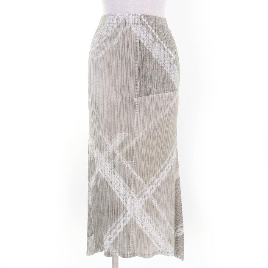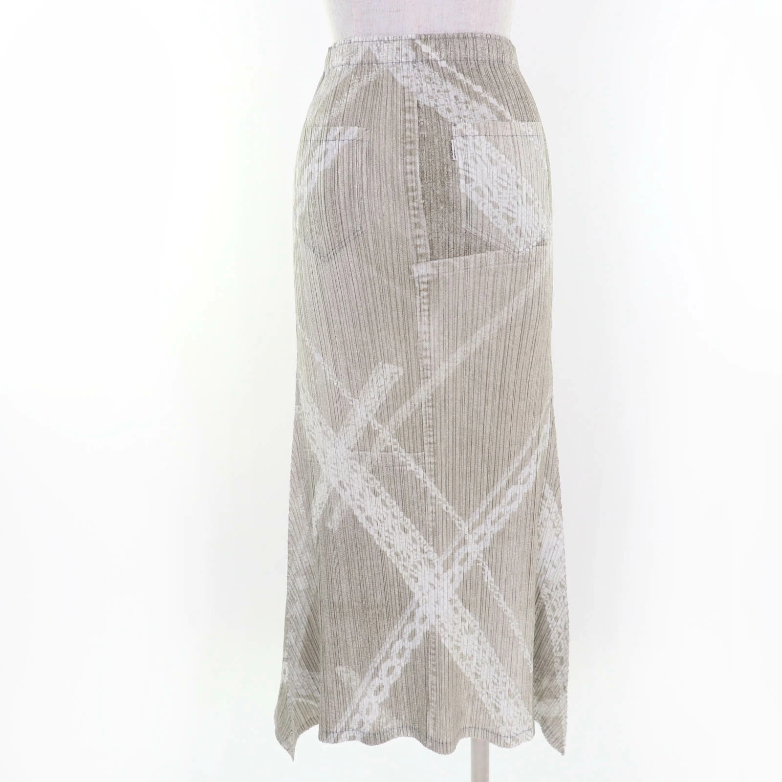 Excellent condition PLEATS PLEASE Issey Miyake PP61-JG605 Transfer Print Long Skirt, Beige, Size 3, Made in Japan, Authentic, Women's [Pre-owned]