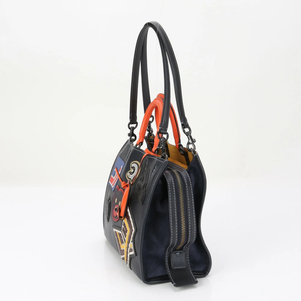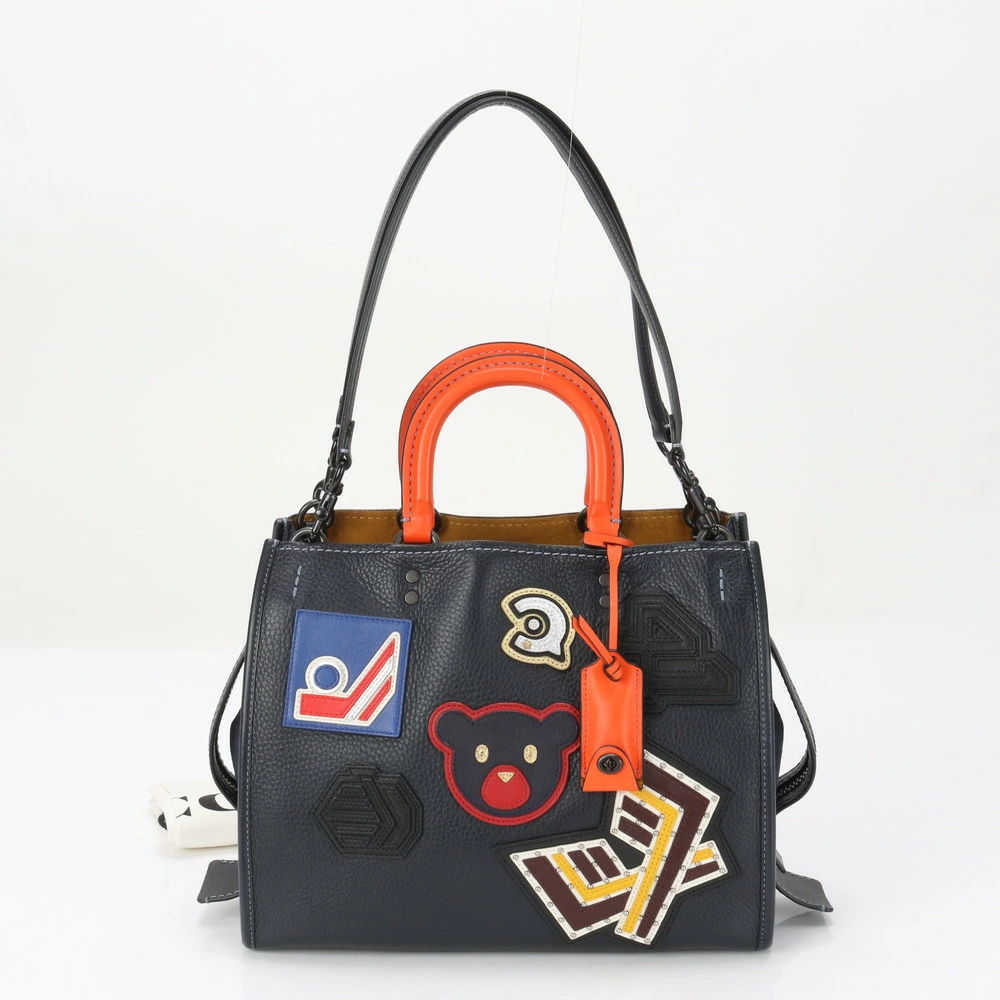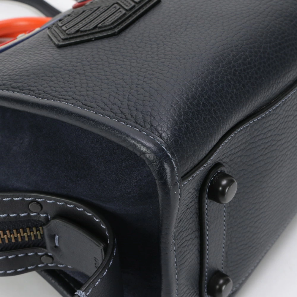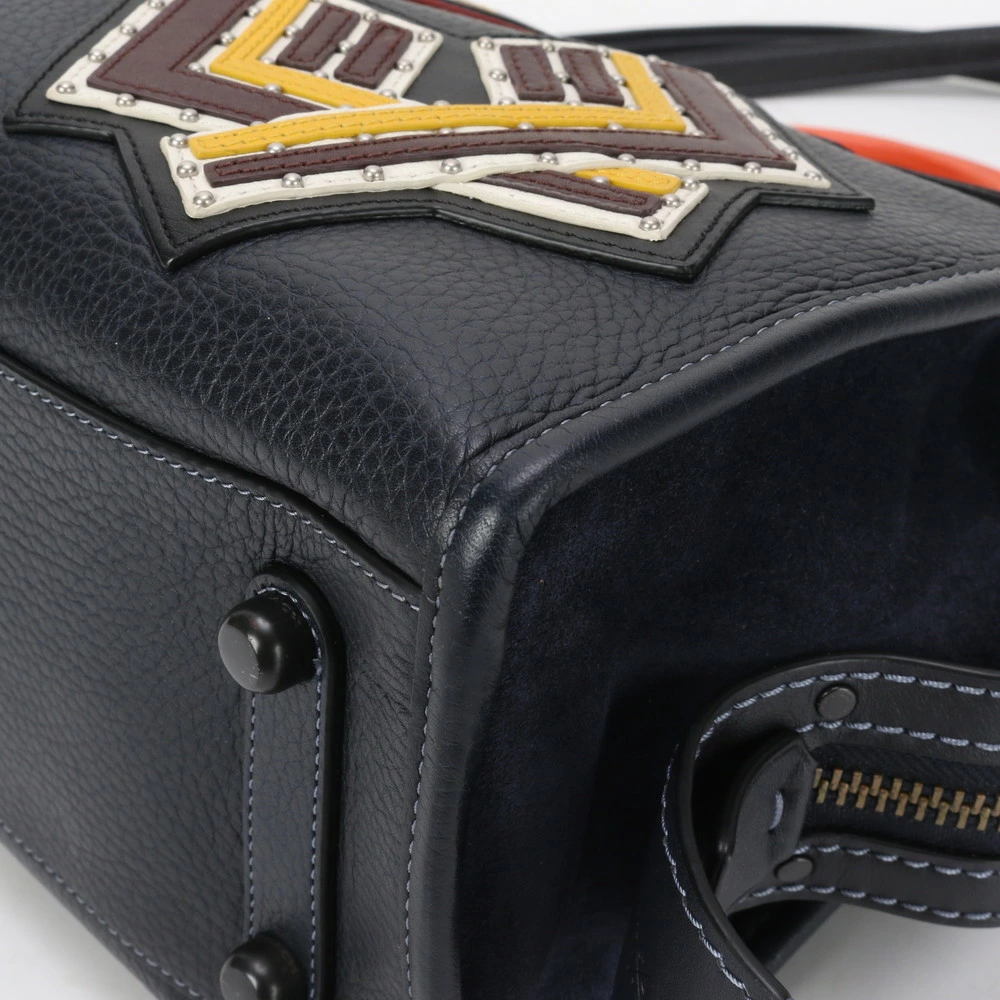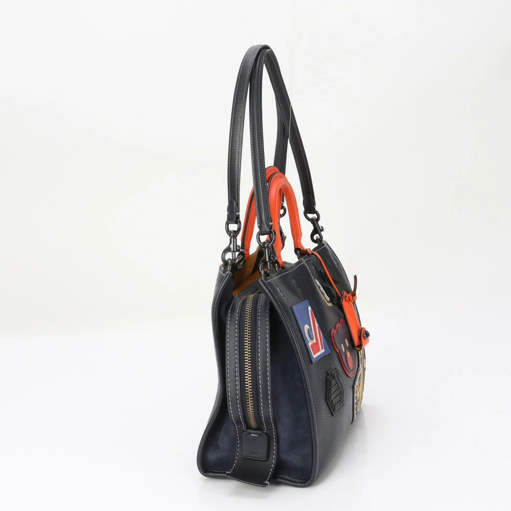 Excellent condition Coach Rogue 20315 leather 2-way handbag, tote bag, and shoulder bag in navy blue with bear emblem. Women's MMM BD8-4.