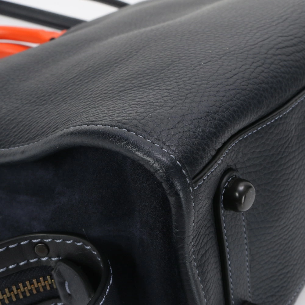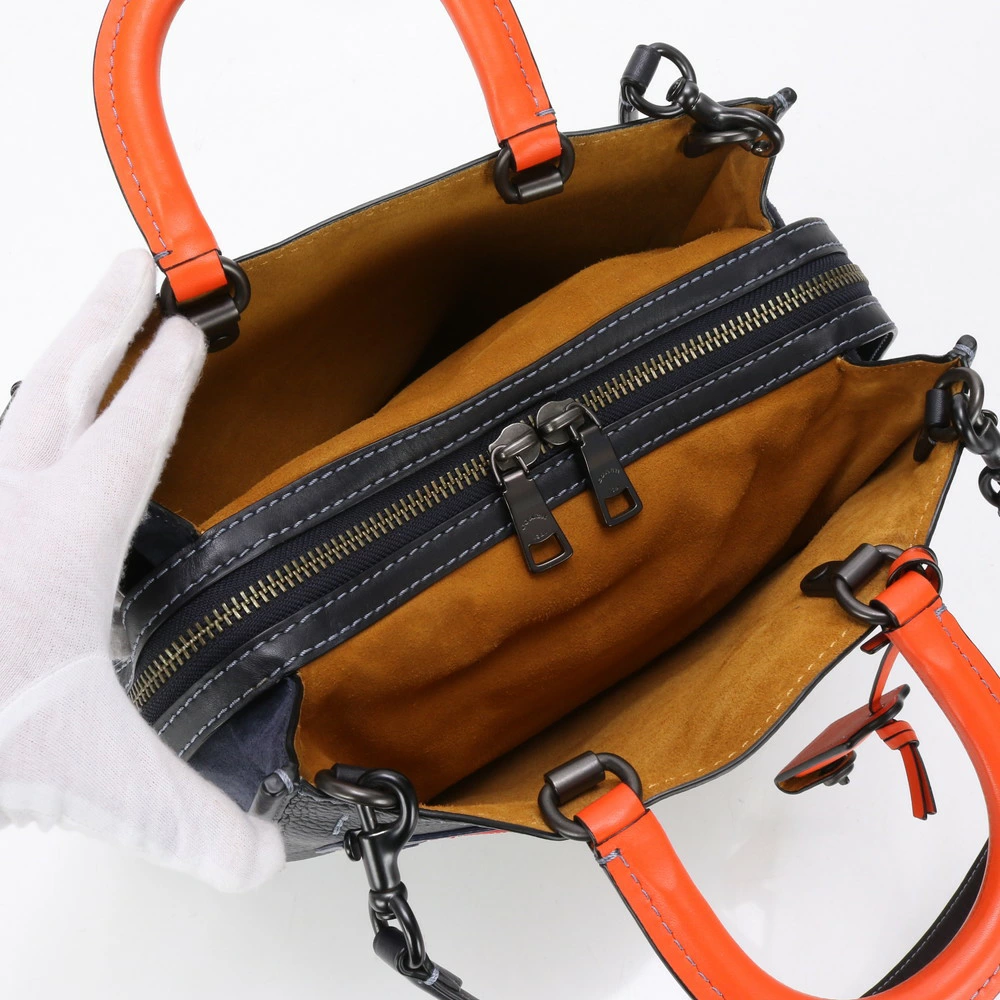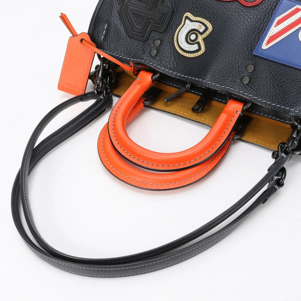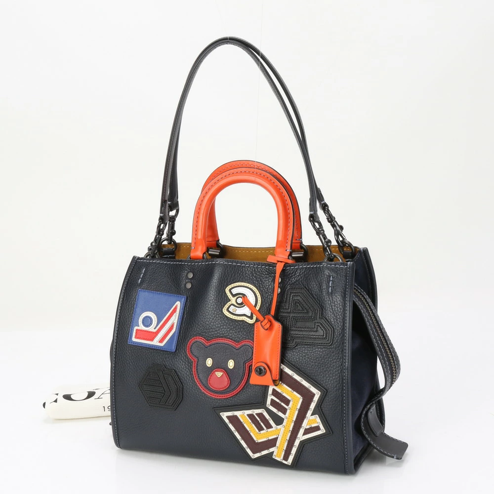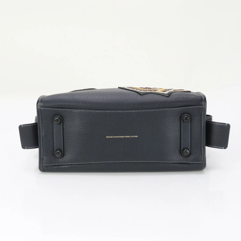 Excellent condition Coach Rogue 20315 leather 2-way handbag, tote bag, and shoulder bag in navy blue with bear emblem. Women's MMM BD8-4.