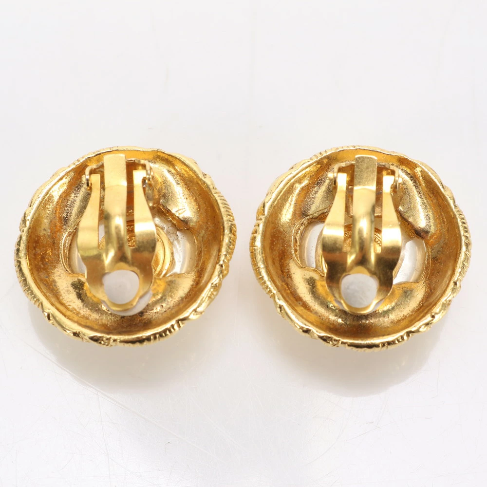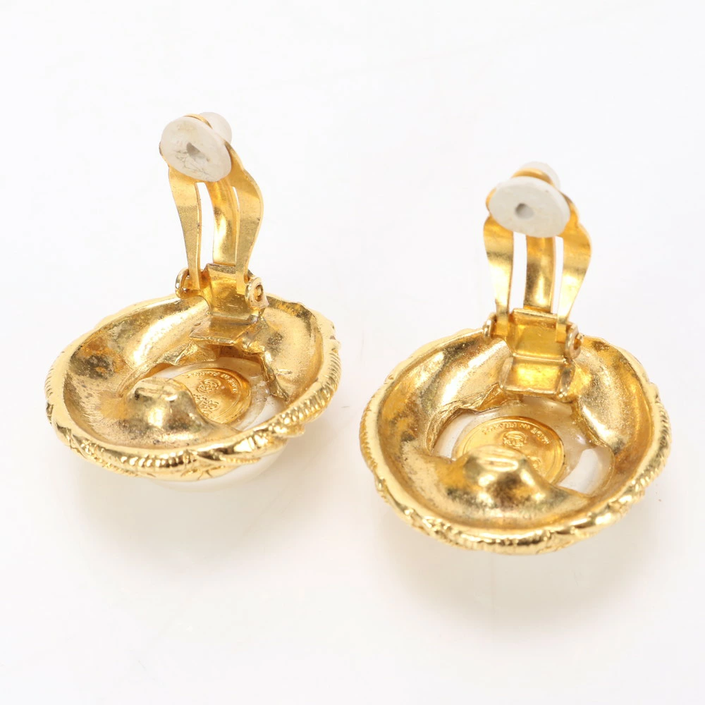 Excellent condition Chanel Coco Mark pearl and gold earrings. Luxury, popular, trendy, and stylish for women in their 30s and 40s. EEY AY6-8.