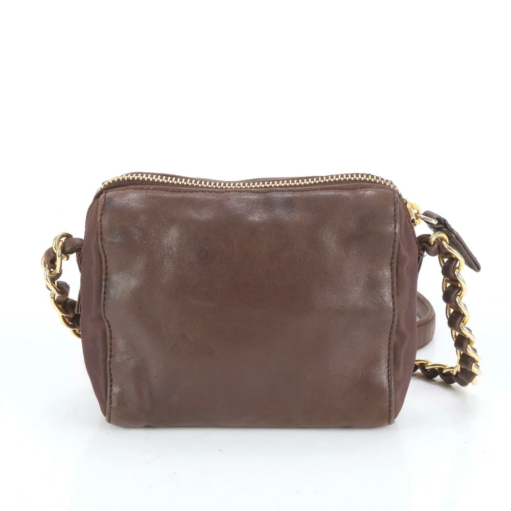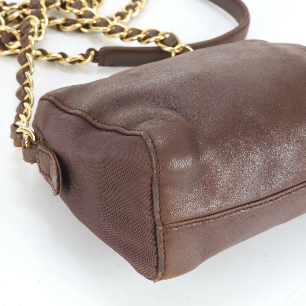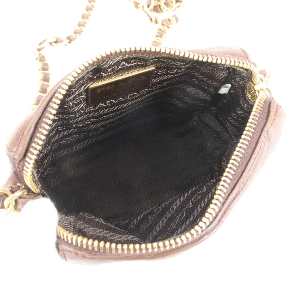 Excellent condition Prada gold chain leather shoulder bag, crossbody bag, hand tote bag, brown, women's RUE CO12-8