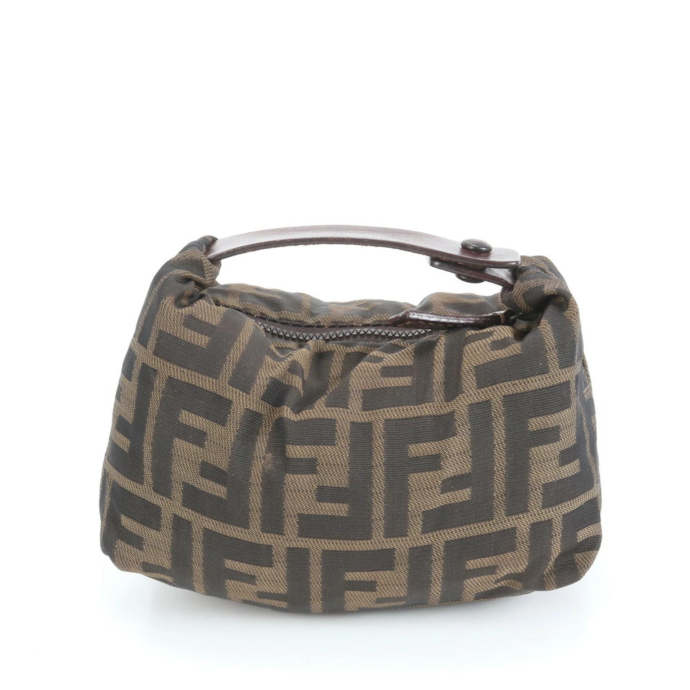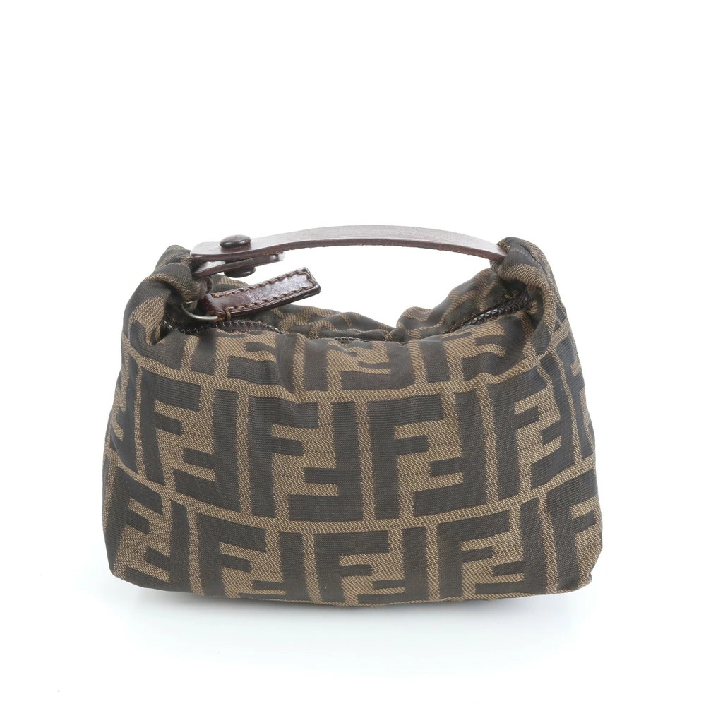Excellent condition vintage Fendi Zucca 26540 leather mini cosmetic pouch, brown, women's, ERE CV9-8