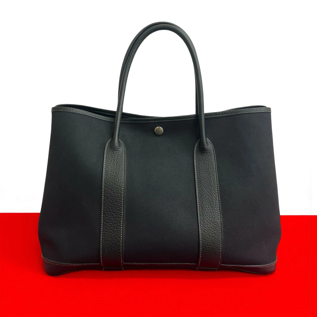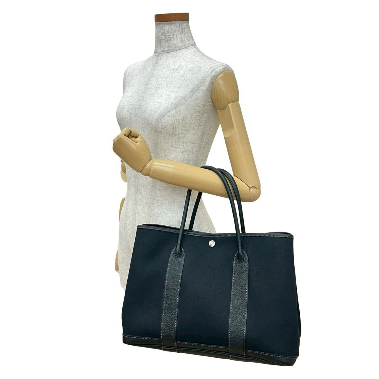 Excellent condition, M stamped, HERMES Garden Party PM Toile Officier Negonda tote bag, black, 60654 [pre-owned]