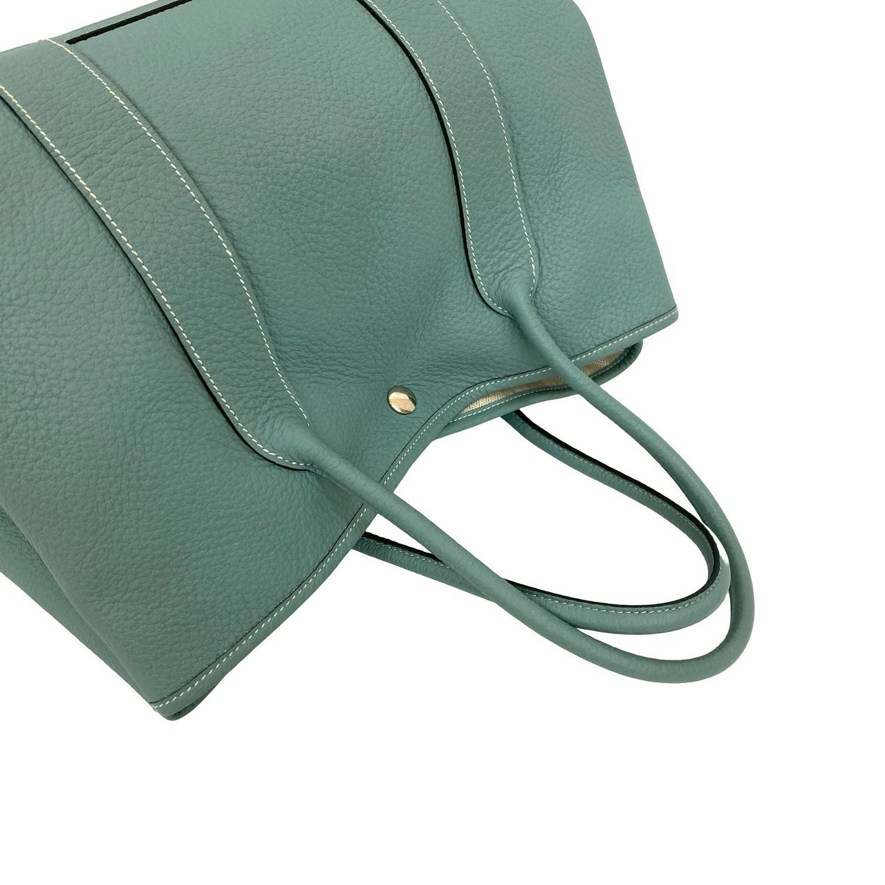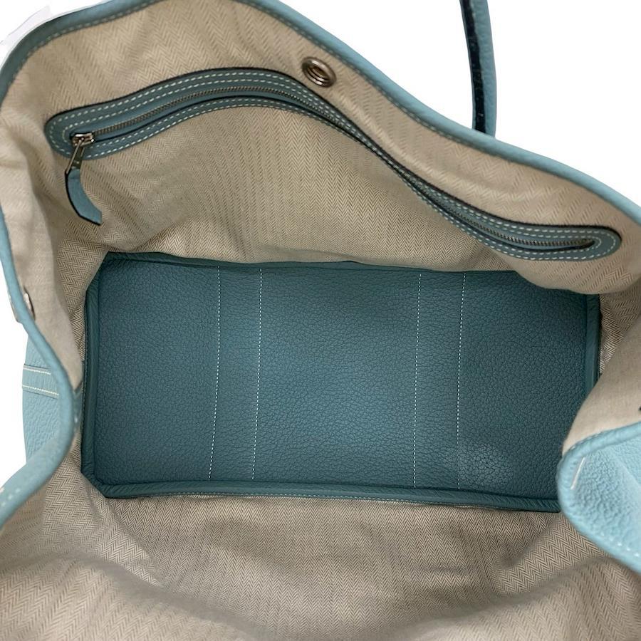 Earn double points! Excellent condition, P stamped, HERMES Garden Party PM Negonda genuine leather tote bag/handbag, light blue, 41155 (pre-owned).