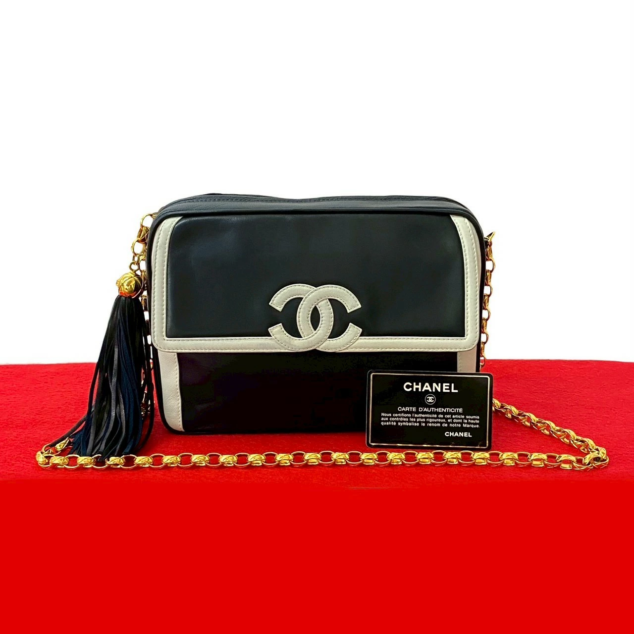 Earn double points! Excellent condition, card and sticker included, #2 CHANEL Vintage Coco Lambskin Leather Tassel Chain Shoulder Bag, Navy Blue, 33935 (Pre-owned)