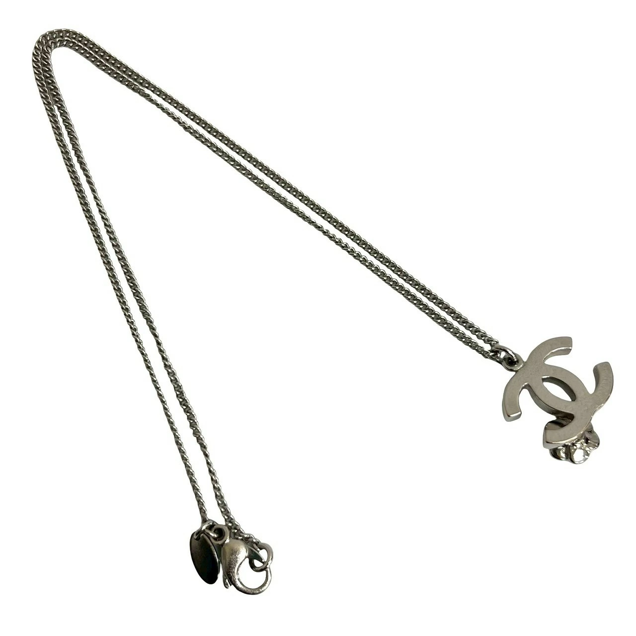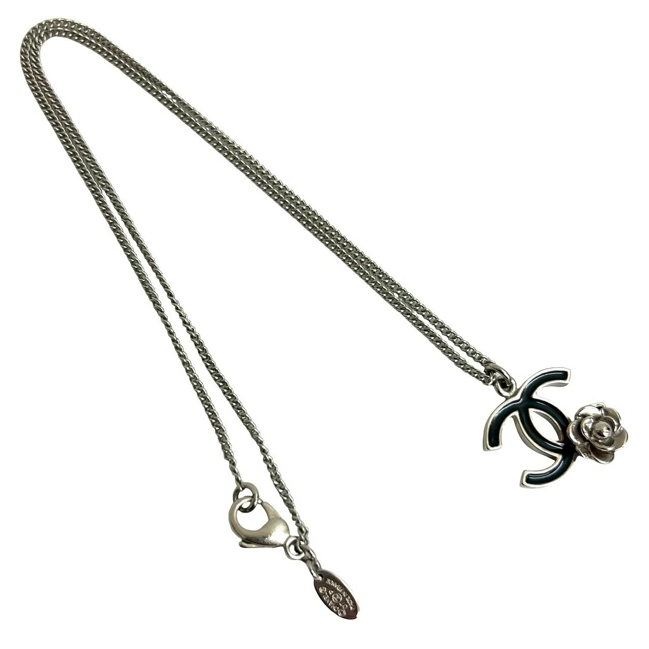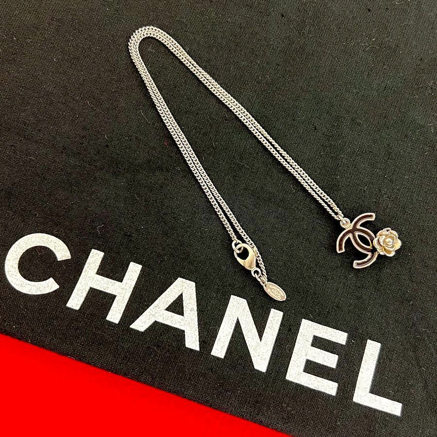 Excellent condition, with comments. 07P CHANEL Coco Camellia motif plated chain necklace pendant accessory, silver, 10157 [Pre-owned]
